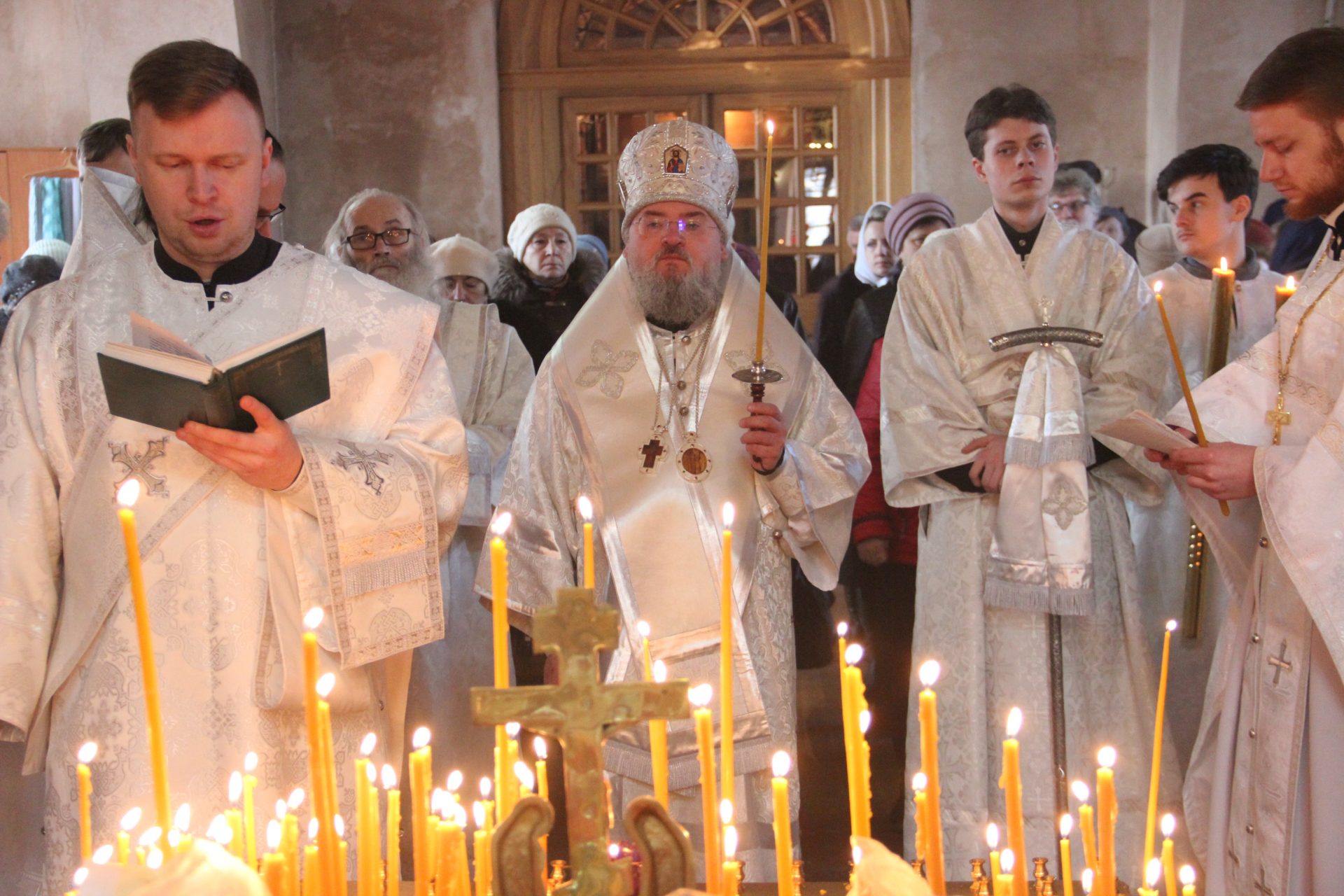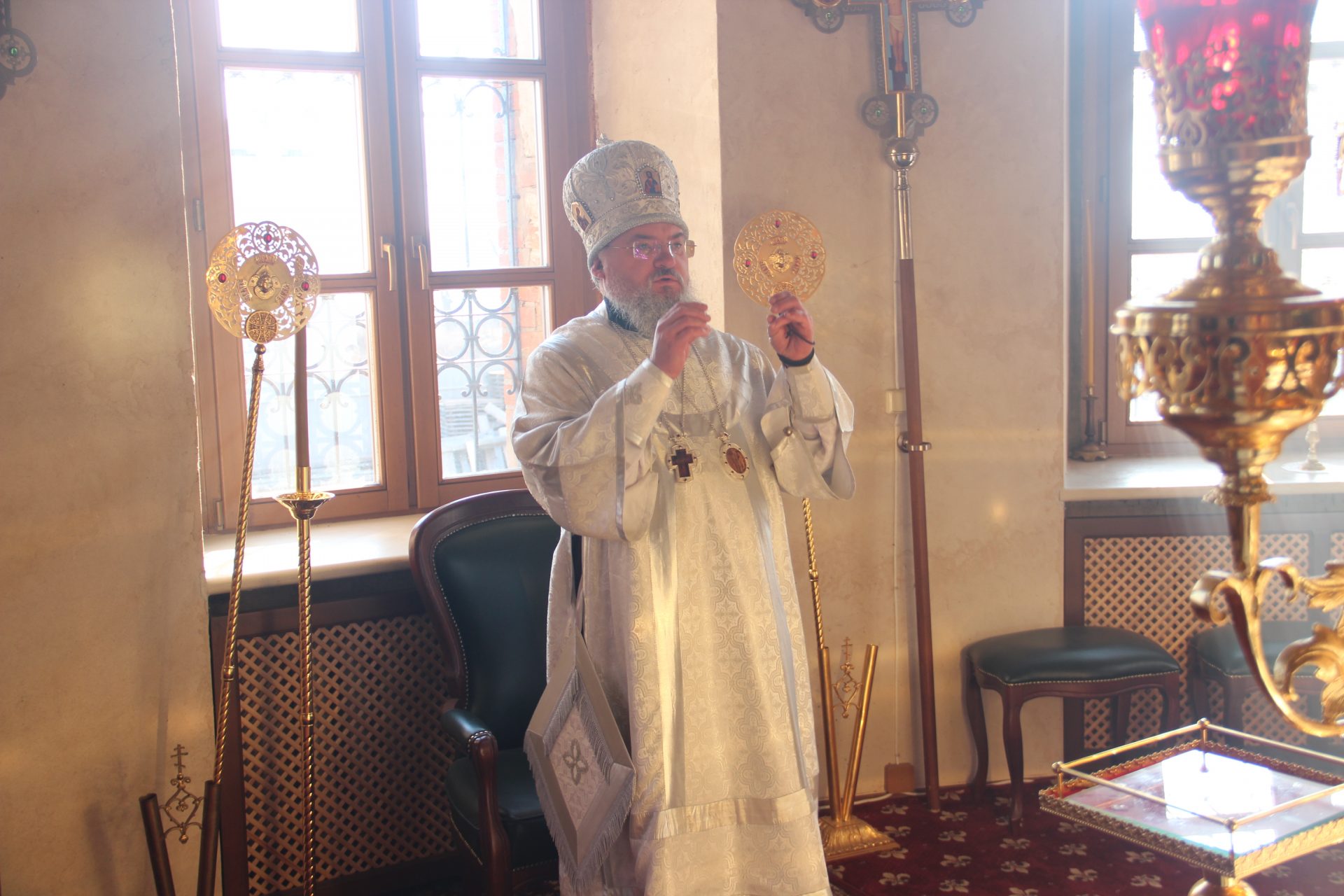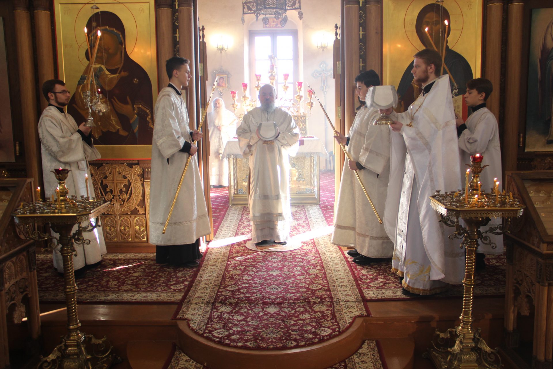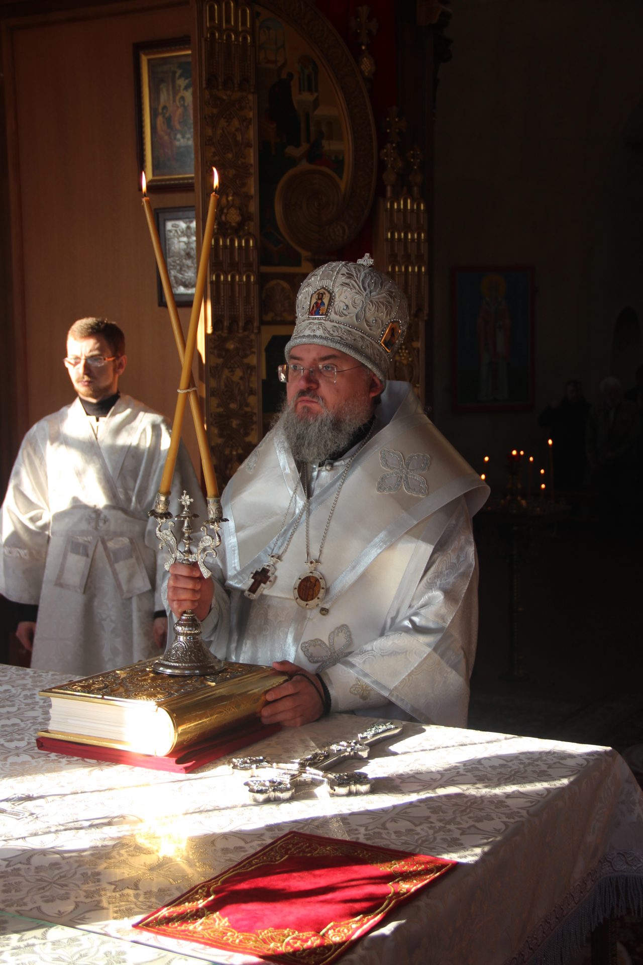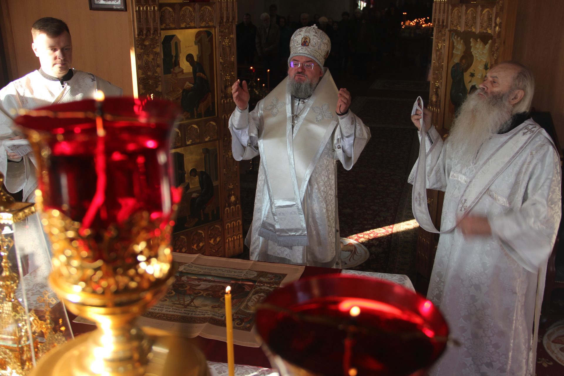 Архипастырю сослужили: иерей Елисей Тимофеев, диакон Евгений Ковригин и иеродиакон Виталий (Павленко).