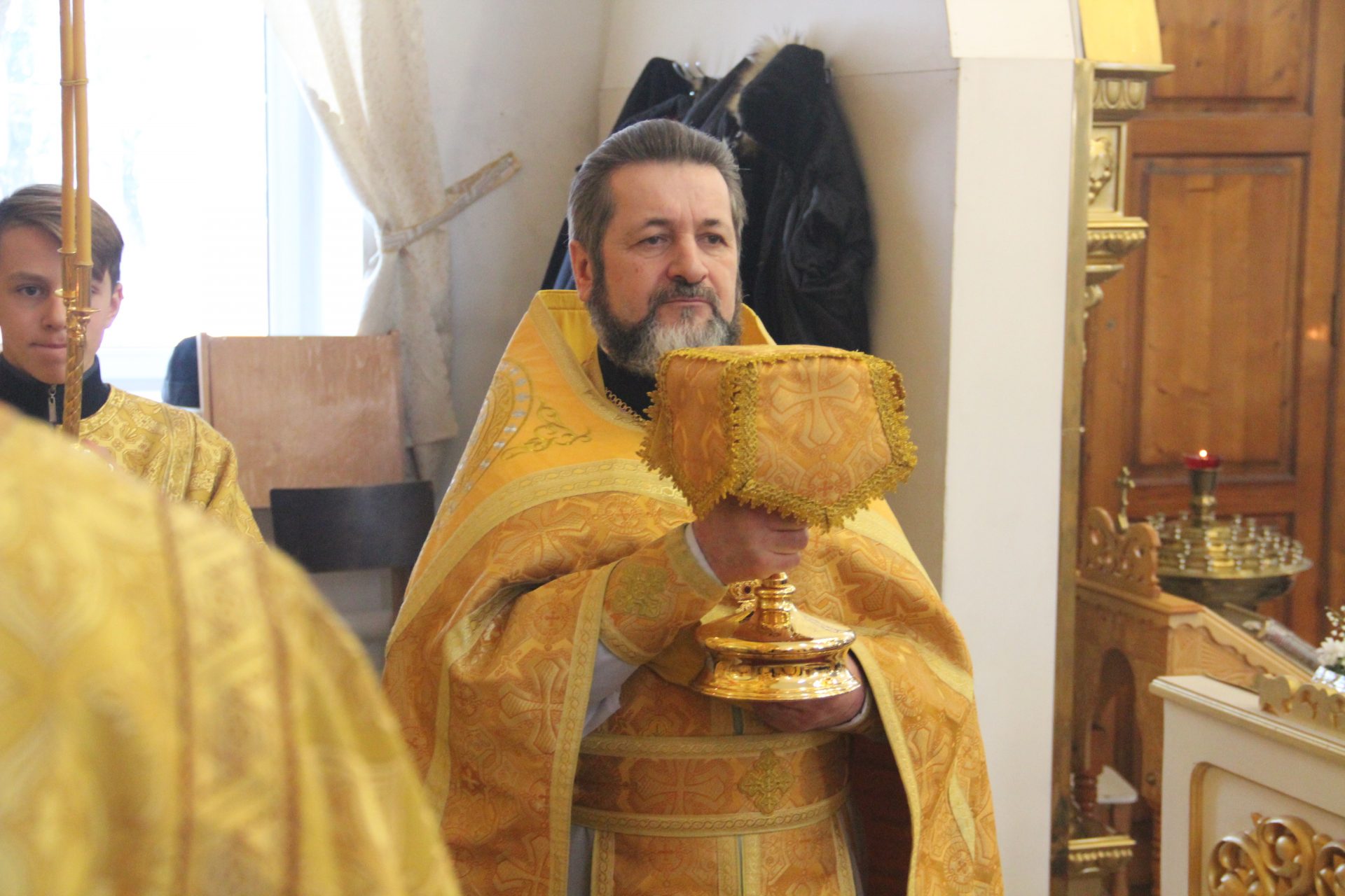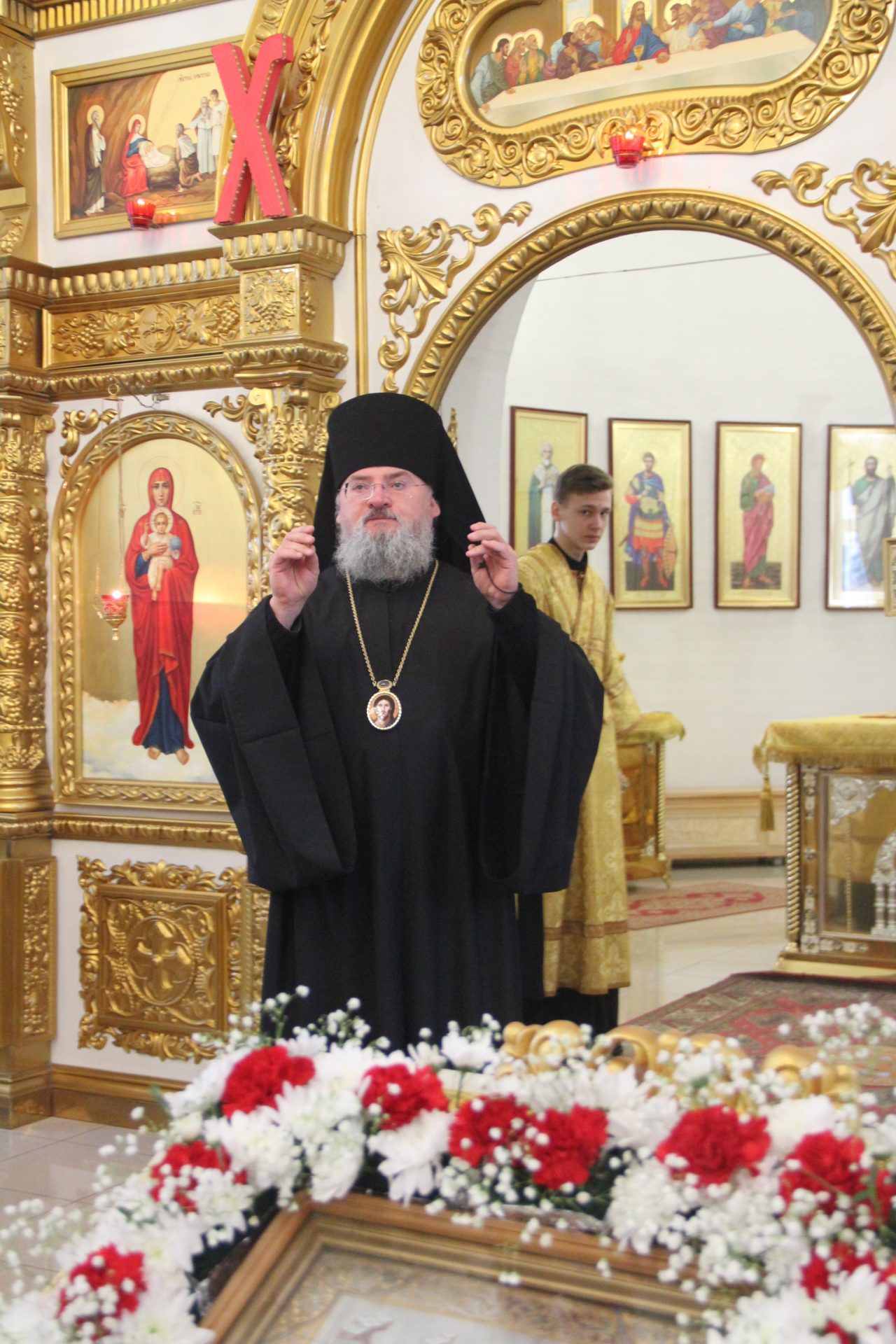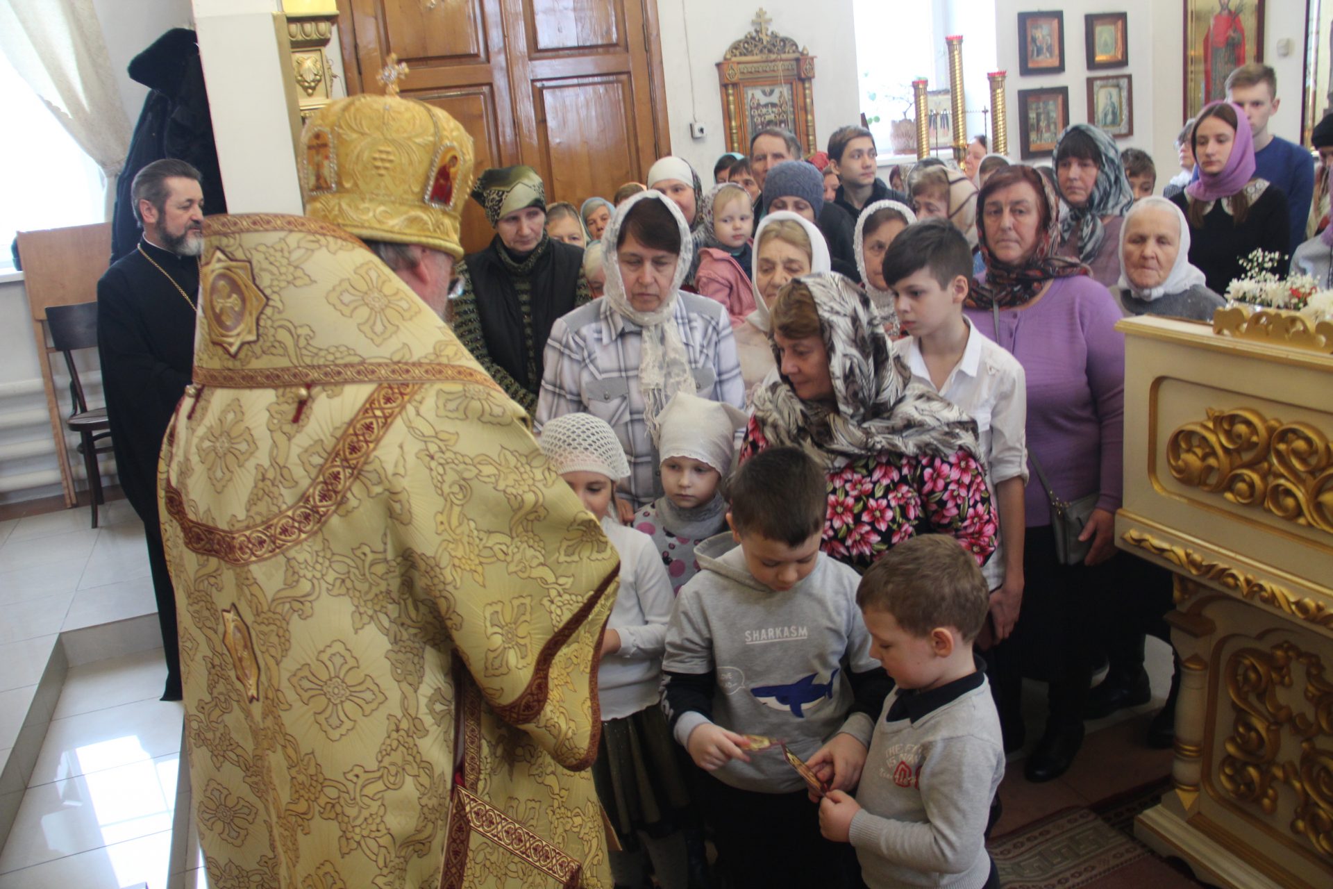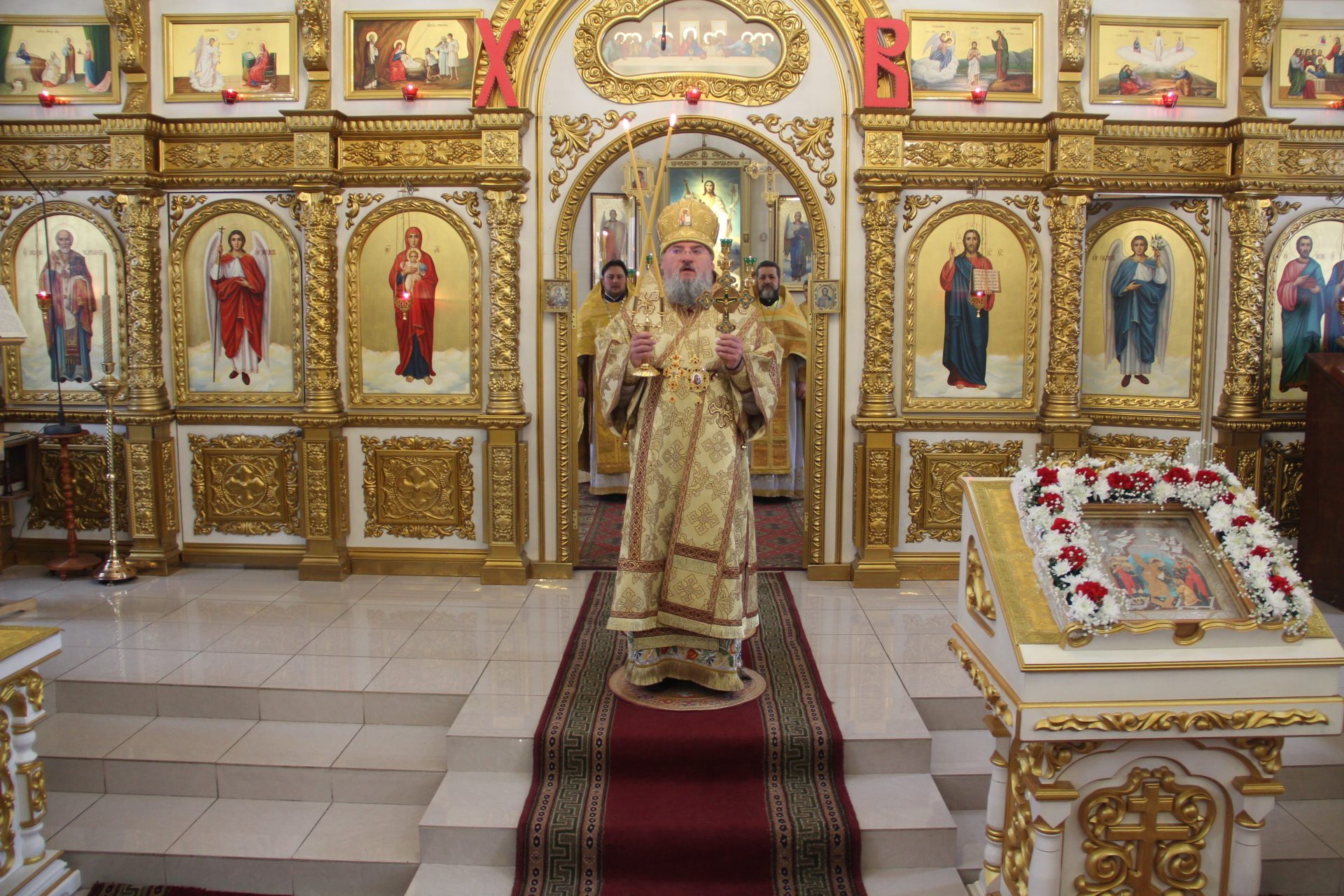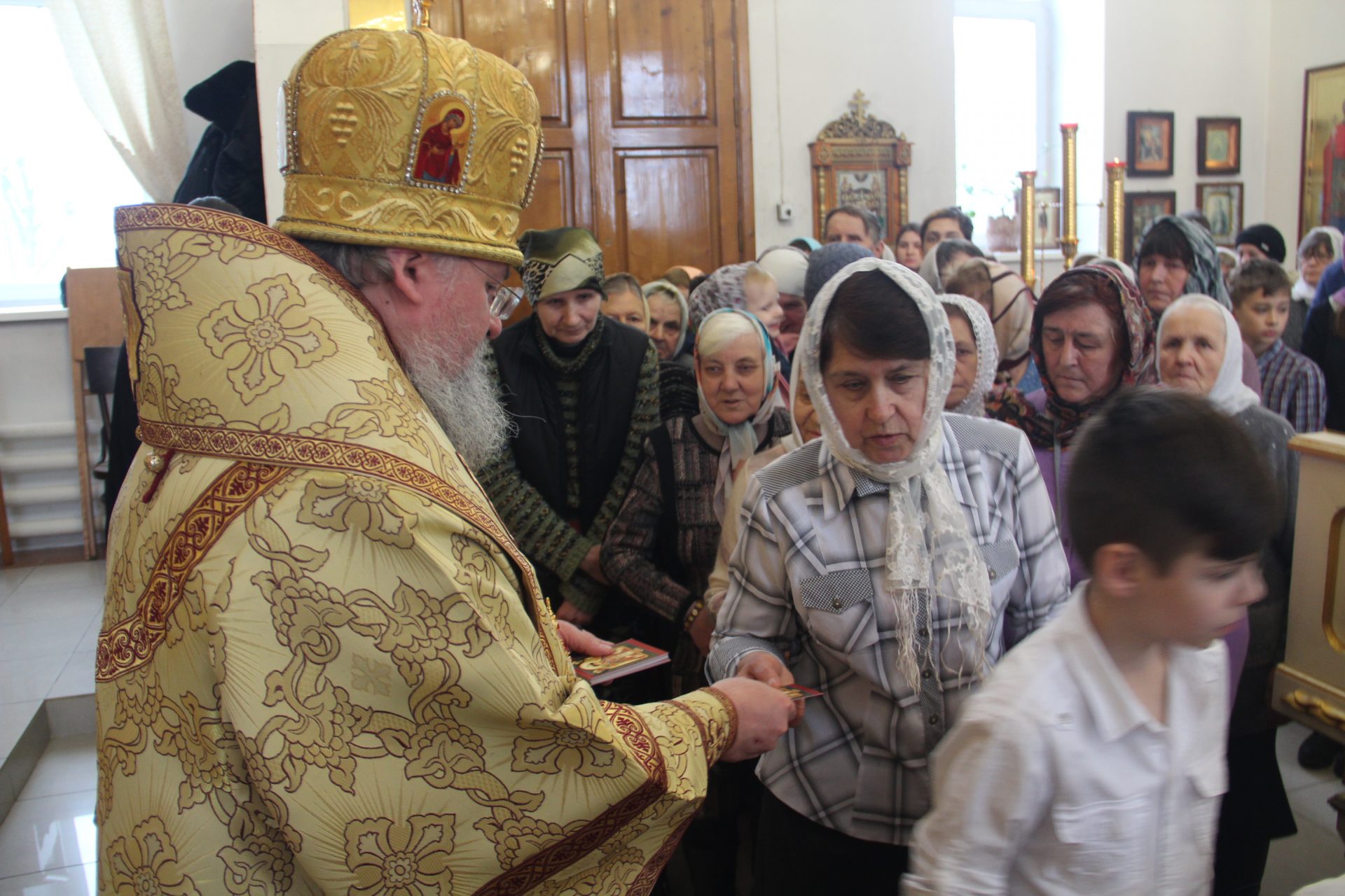 Всем присутствующим епископ Никита вручил небольшие иконки святого царя страстотерпца Николая, освященные на его чудотворном мироточивом образе.