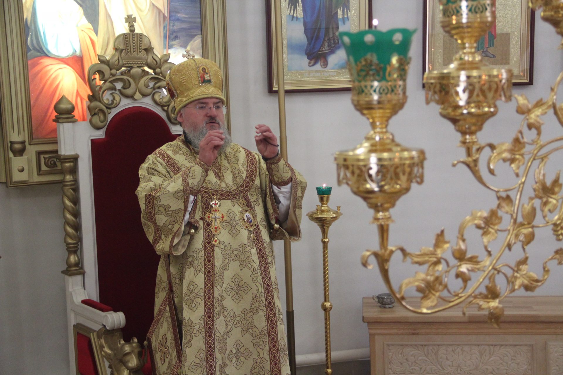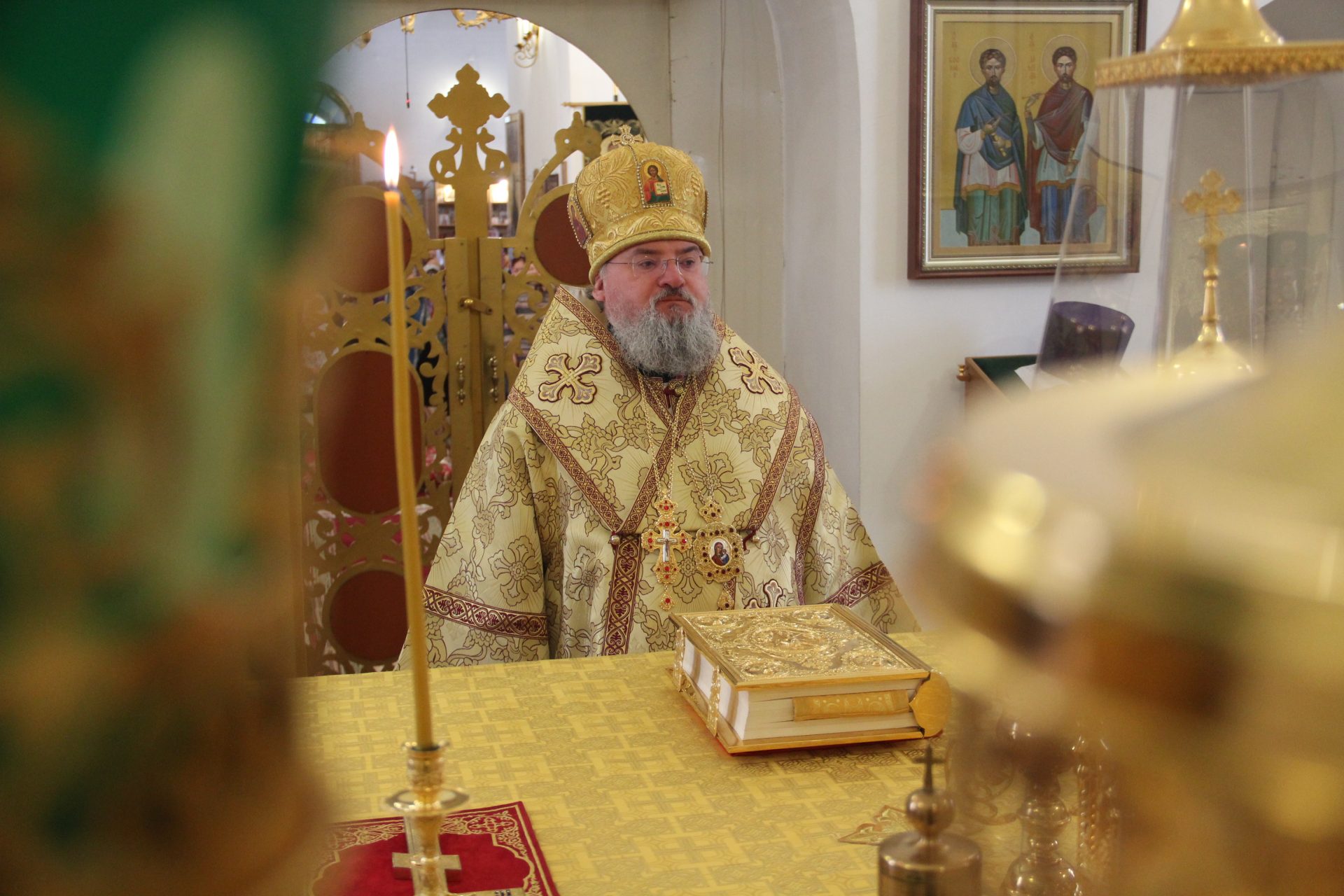 По отпусте литургии владыка обратился к богомольцам с проповедью.