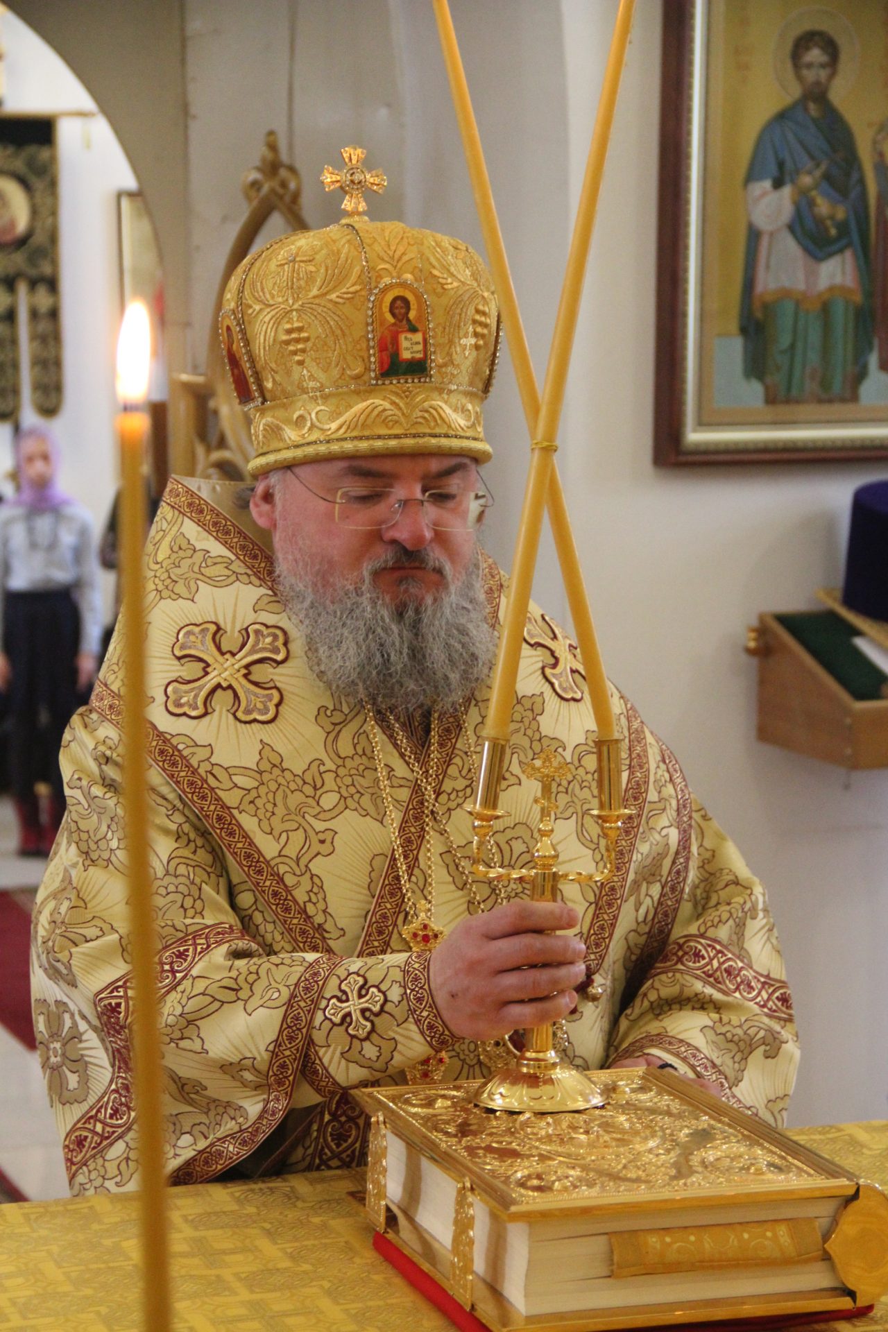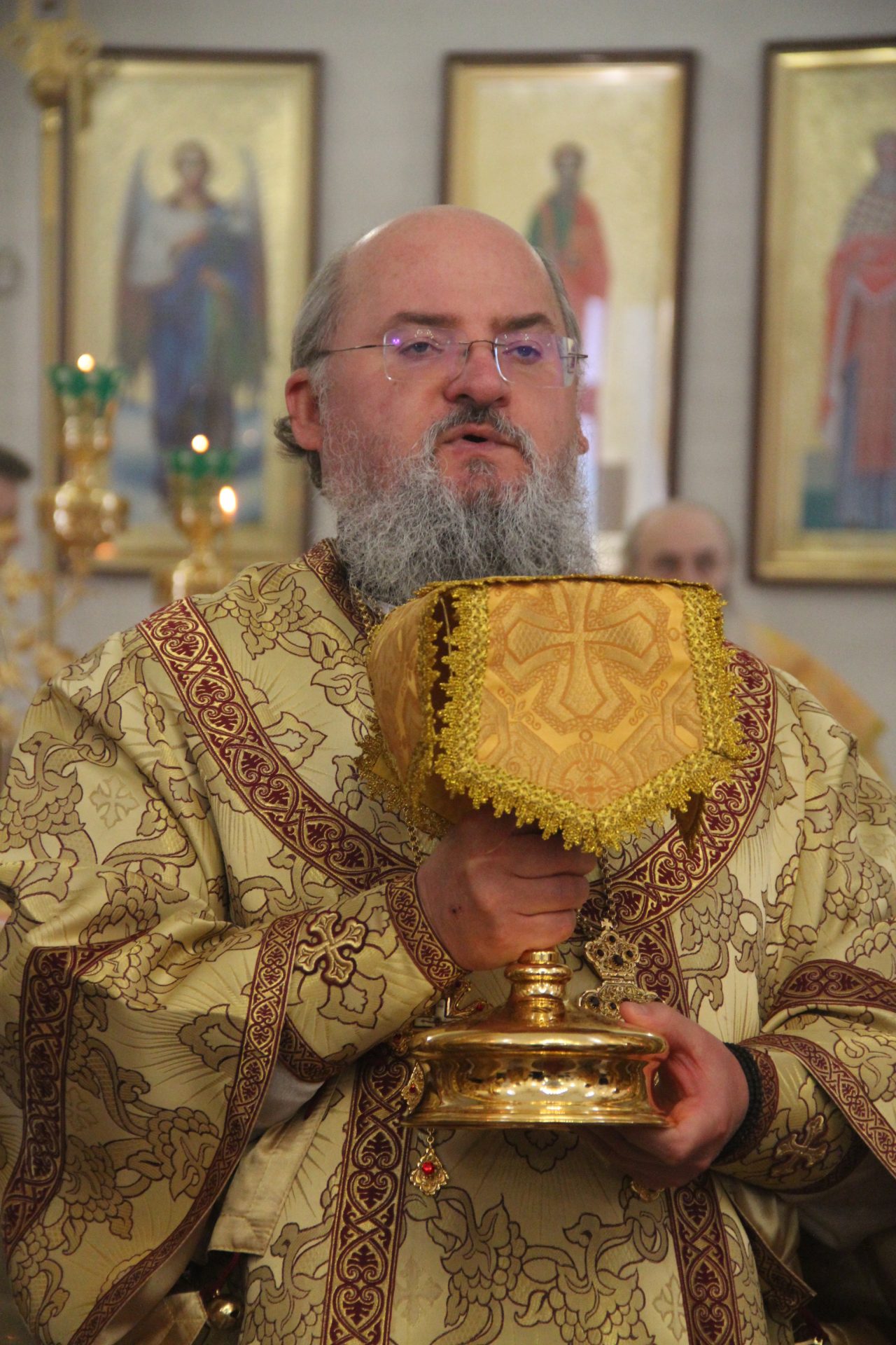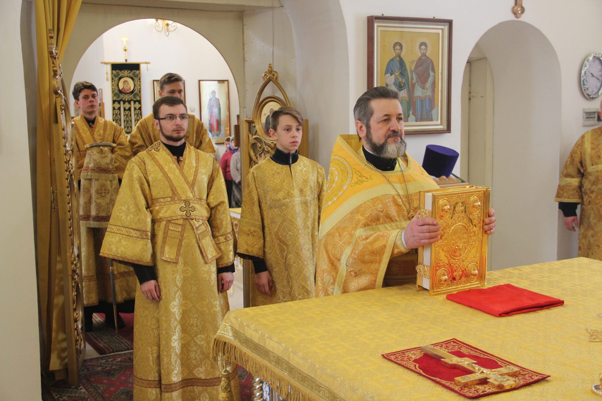 Архипастырю сослужили: благочинный округа, настоятель храма протоиерей Иоанн Староста, протоиерей Антоний Хатунцев, диакон Евгений Ковригин и иеродиакон Виталий (Павленко).