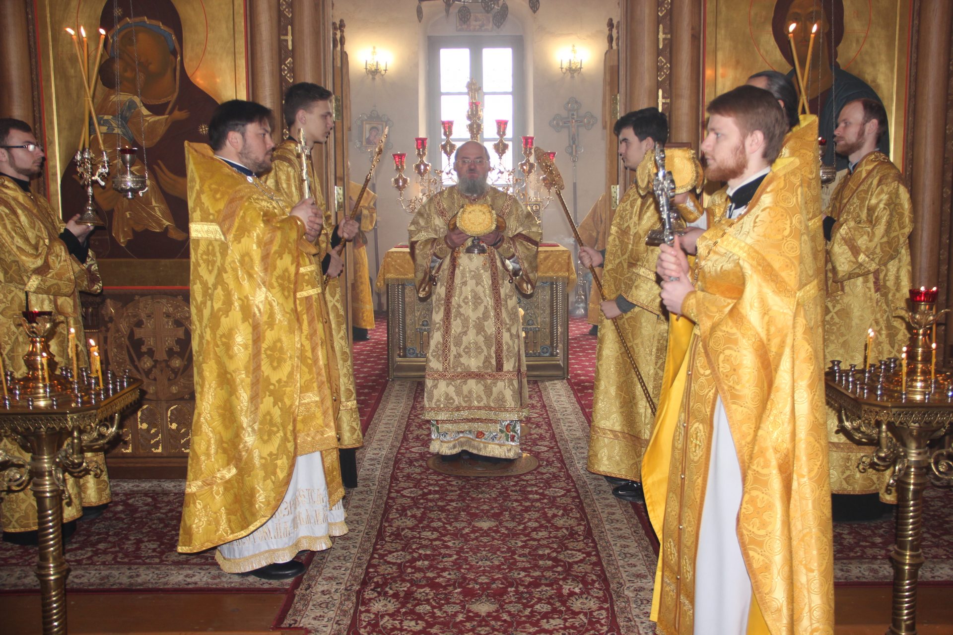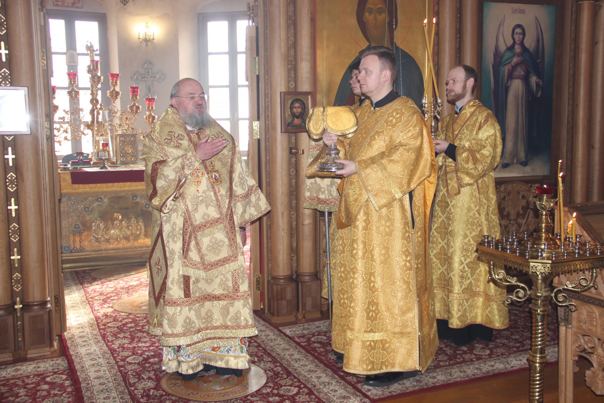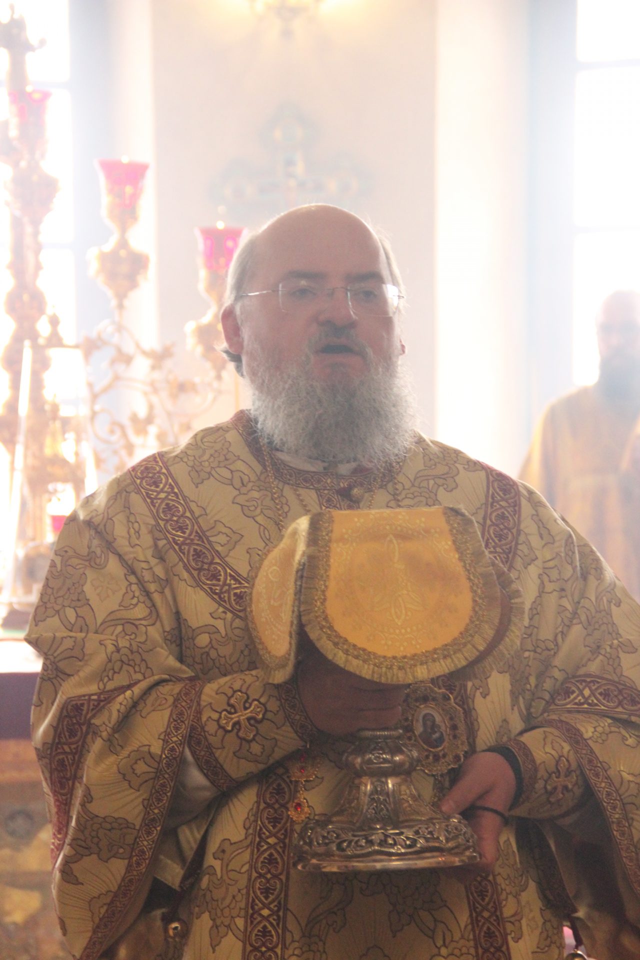 Преосвященному архипастырю сослужили: протоиерей Антоний Хатунцев, иеромонах Паисий (Курмаз) – настоятель храма, иерей Елисей Тимофеев, диакон Евгений Ковригин, диакон Дмитрий Лутков и иеродиакон Виталий (Павленко).