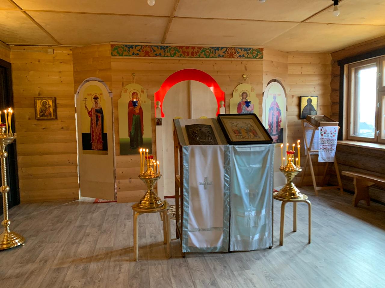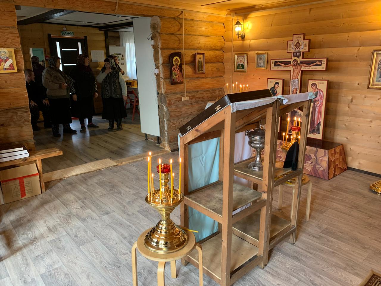 За неделю, усердными трудами настоятеля прихода иерея Дмитрия Торшина и неравнодушных прихожан и доброхотов, в приходском доме был оборудован небольшой временный храм в честь иконы Божией Матери «Всех скорбящих радость».