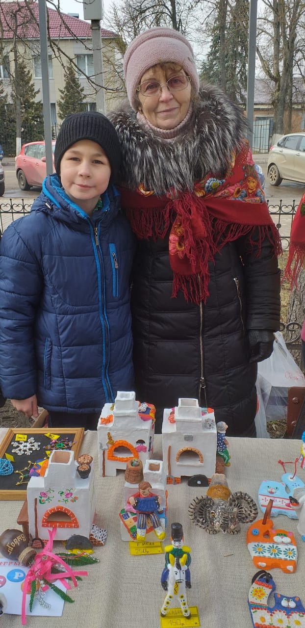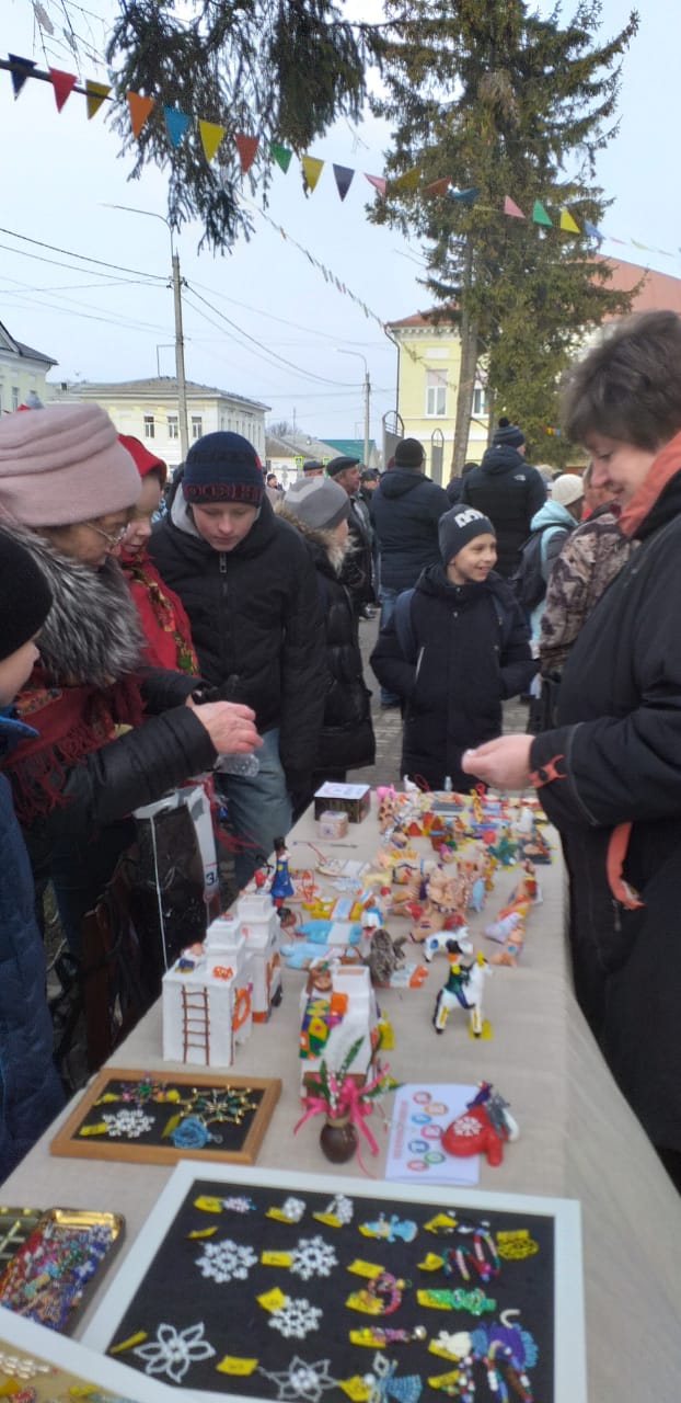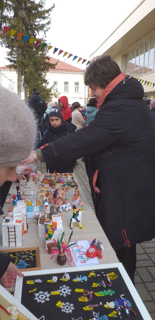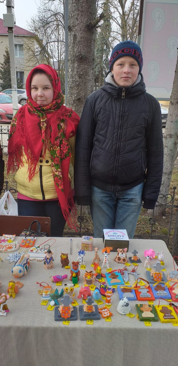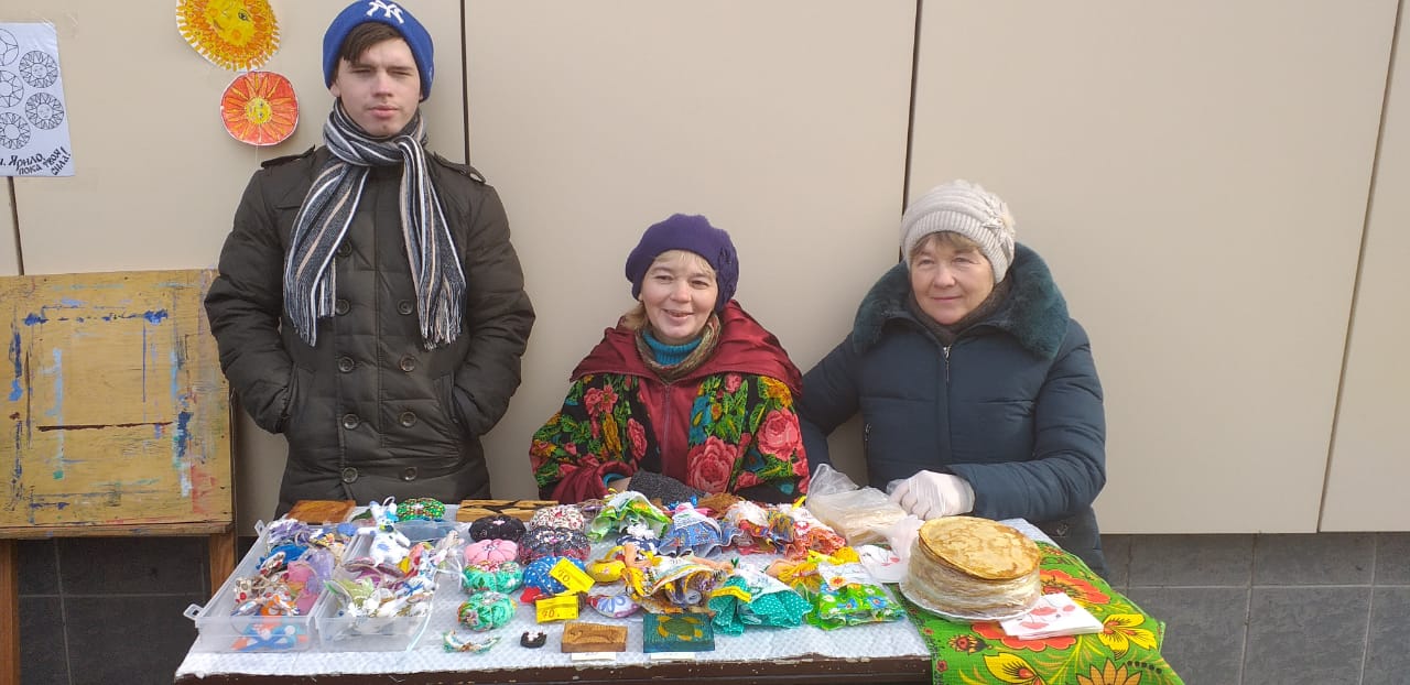 Воспитанники и педагоги детского Центра «Возрождение» приняли участие в широкой масленице. На ярмарке они торговали своими работами, которые изготовили из бисера, керамики, ткани и других материалов. Также все желающие, могли принять участие в безпроигрышной лотерее и получить подарок от умельцев детского Центра.