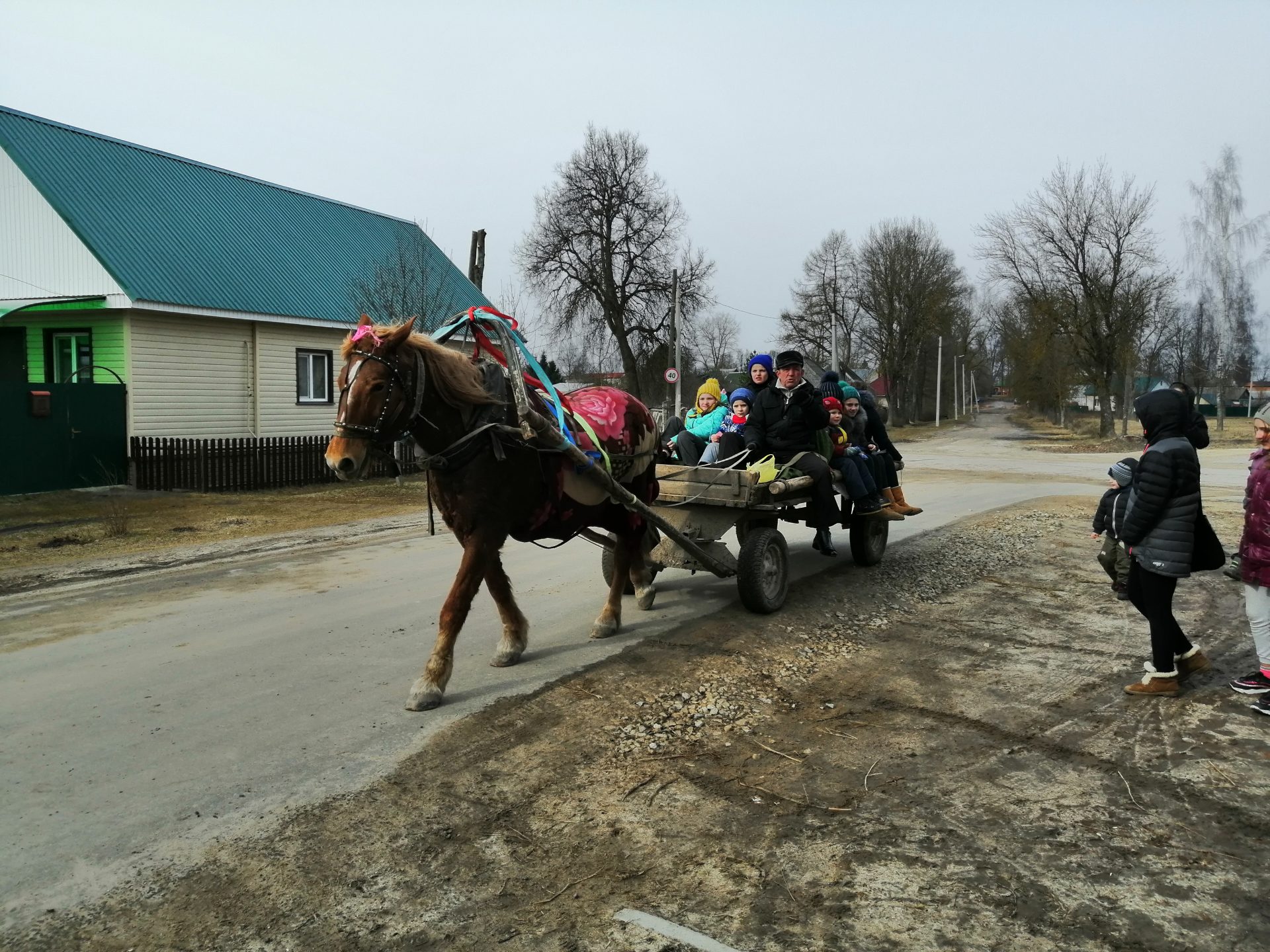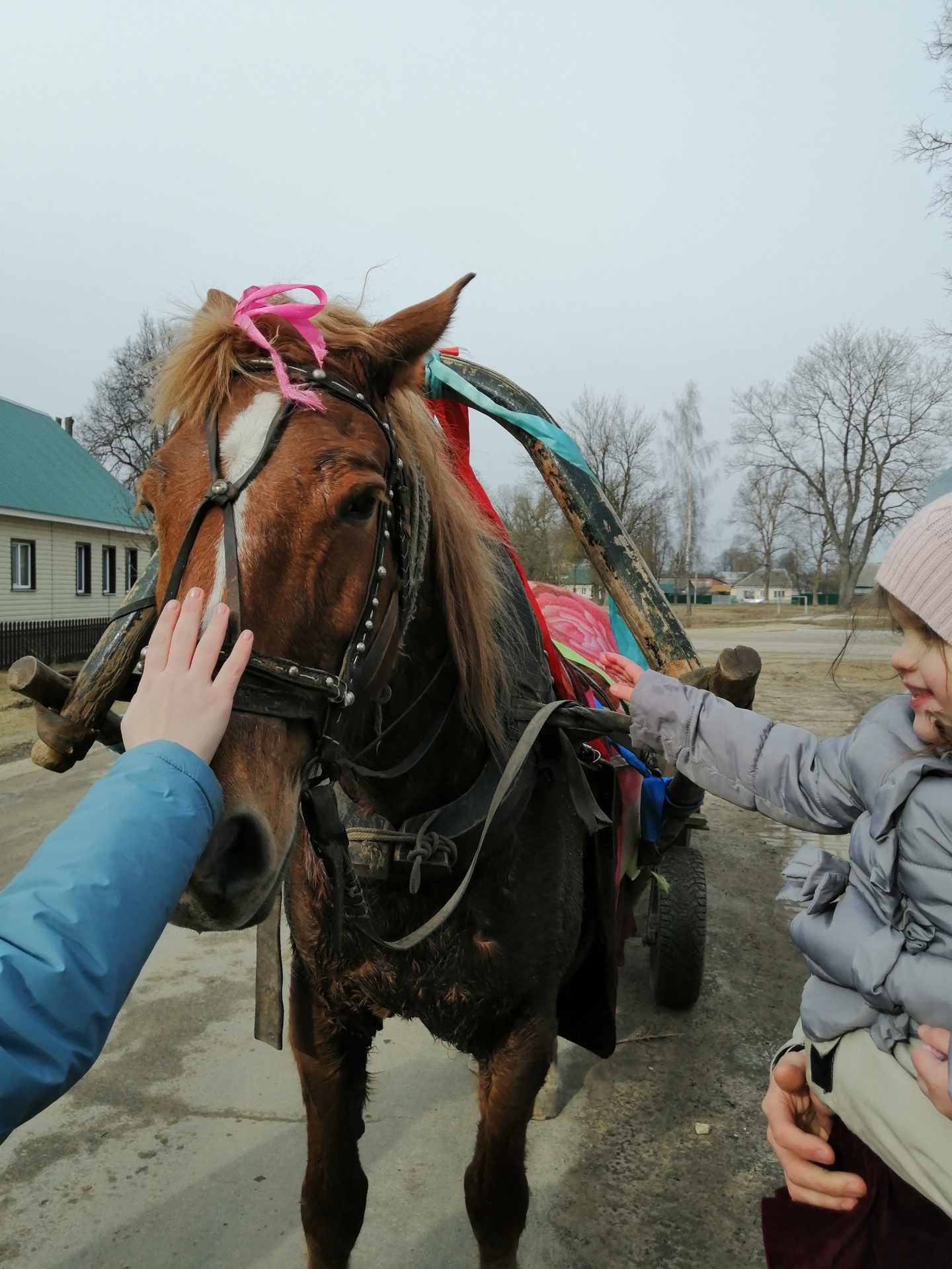 Дети отвечали на вопросы блинной эстафеты, играли, угадывали и доставали подарки из мешочка. А перед традиционным катанием на лошади попили чай. Конфеты, сладости, чай и, конечно же блины! Как же без них, ведь мы провожаем Сырную неделю, отмечаем Масленицу! Блинов было великое множество – спасибо нашим замечательным мамам и бабушкам. Но и аппетит у детей завидный.  А после чаепития дети гурьбой высыпали на улицу – катание на лошадке стало доброй традицией нашей школы. Доброе животное, украшенное цветами и ленточками, послушно тянуло тележку с шумными пассажирами.