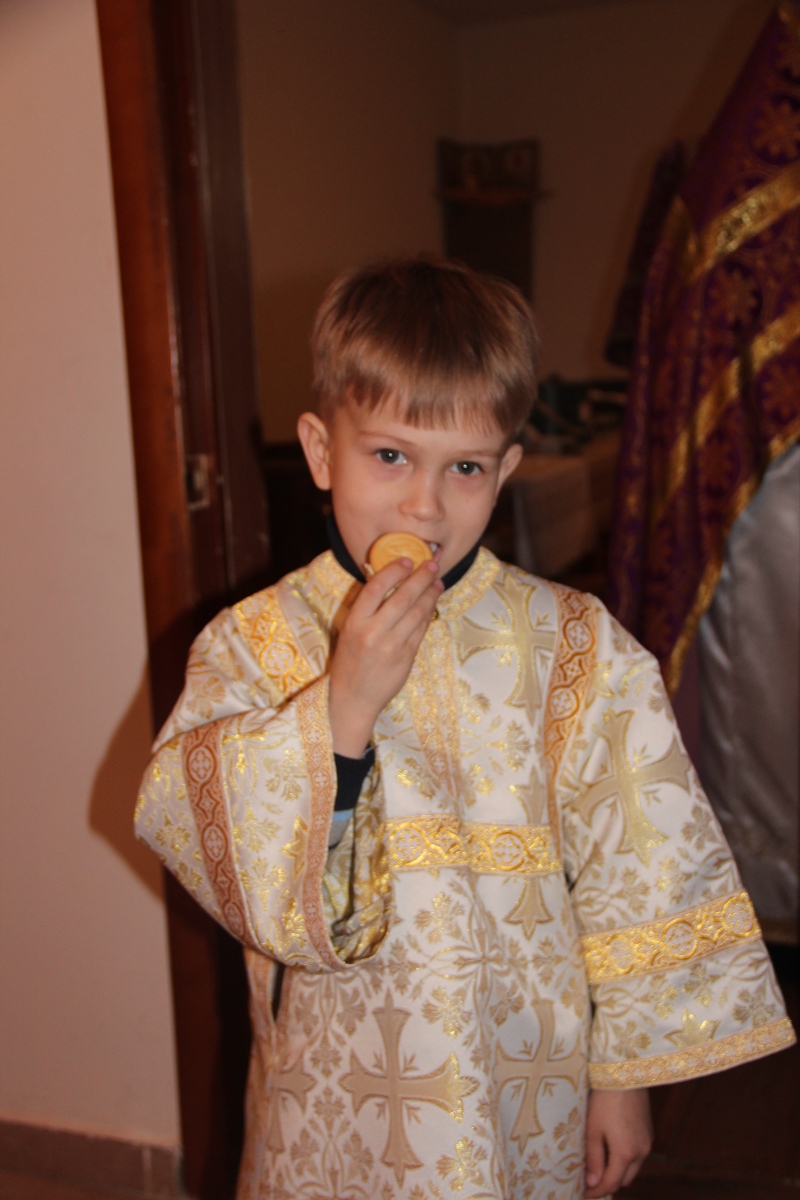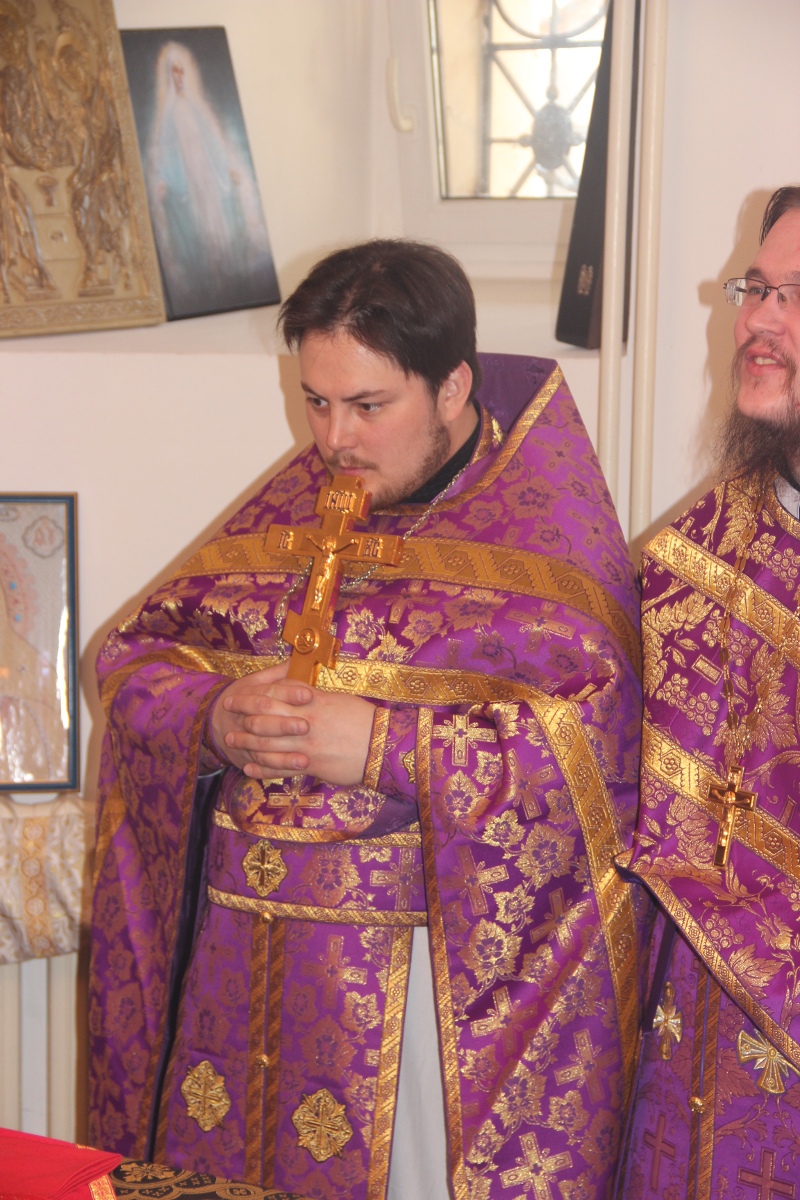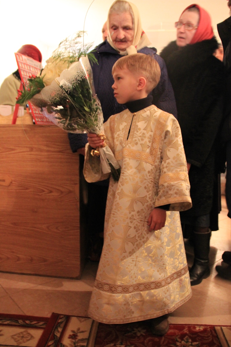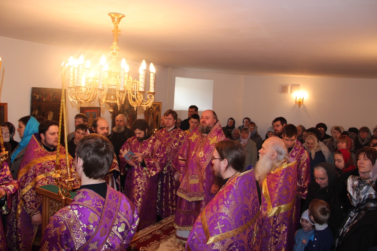Его Преосвященству сослужили: протоиерей Дмитрий Сахаров, иерей Антоний Хатунцев, иерей Дионисий Куваев — настоятель храма, диакон Евгений Ковригин и диакон Алексий Боков. После отпуста литургии духовенство совершило славление праздника, а затем владыка обратился к молящимся с архипастырским словом.