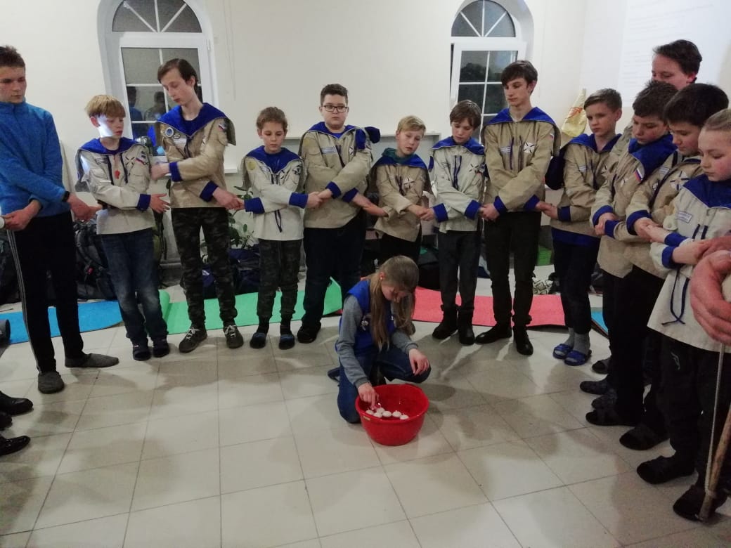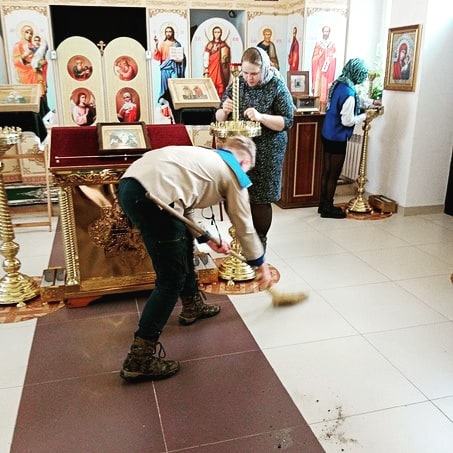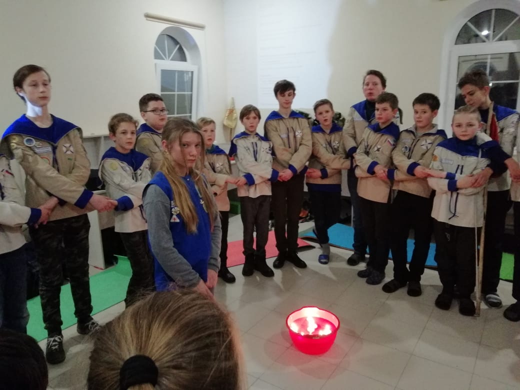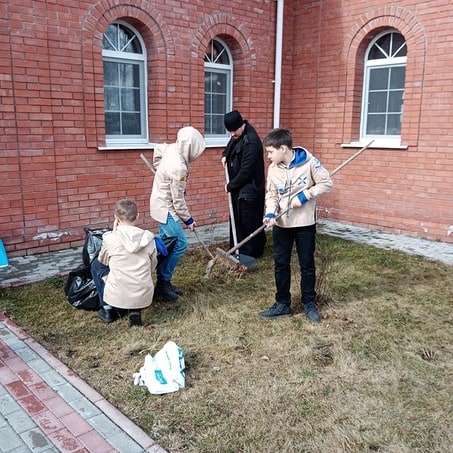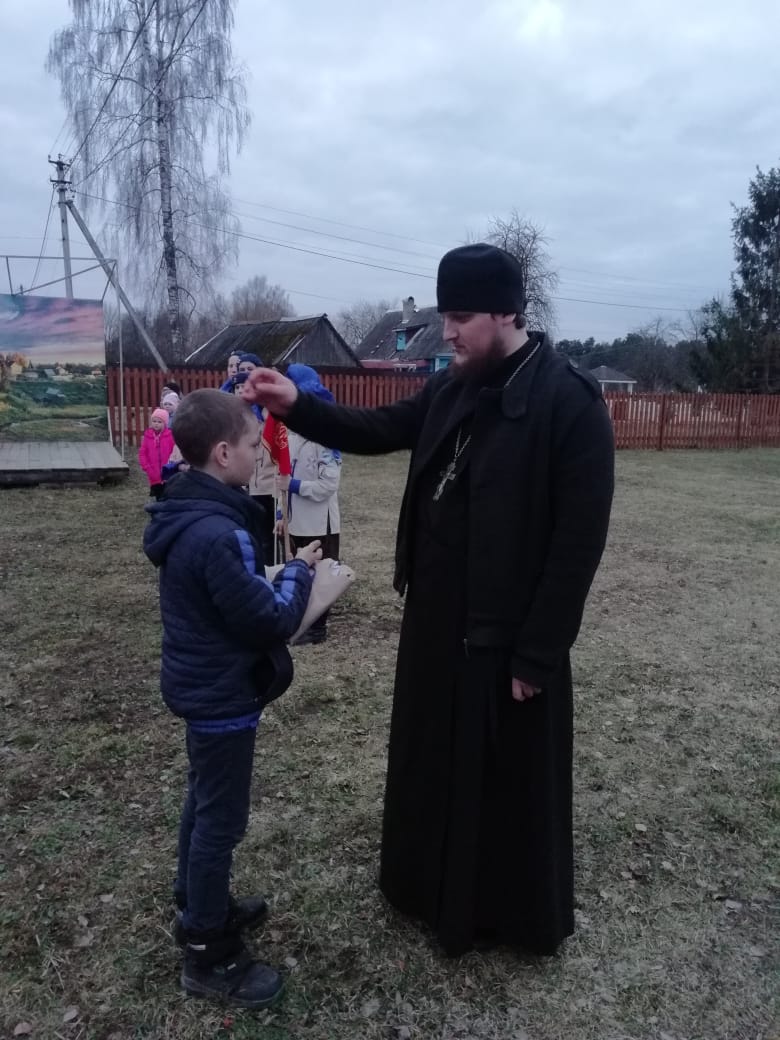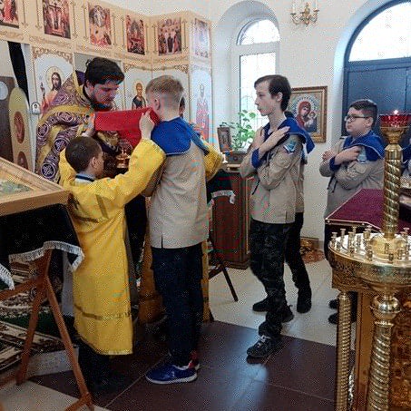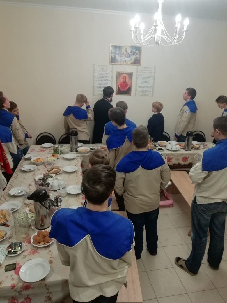 После трапезы мальчики сдавали зачёт на третий разряд разведчика, который все сдали очень успешно. Так же дети помогли с уборкой храма и прилегающей территории.