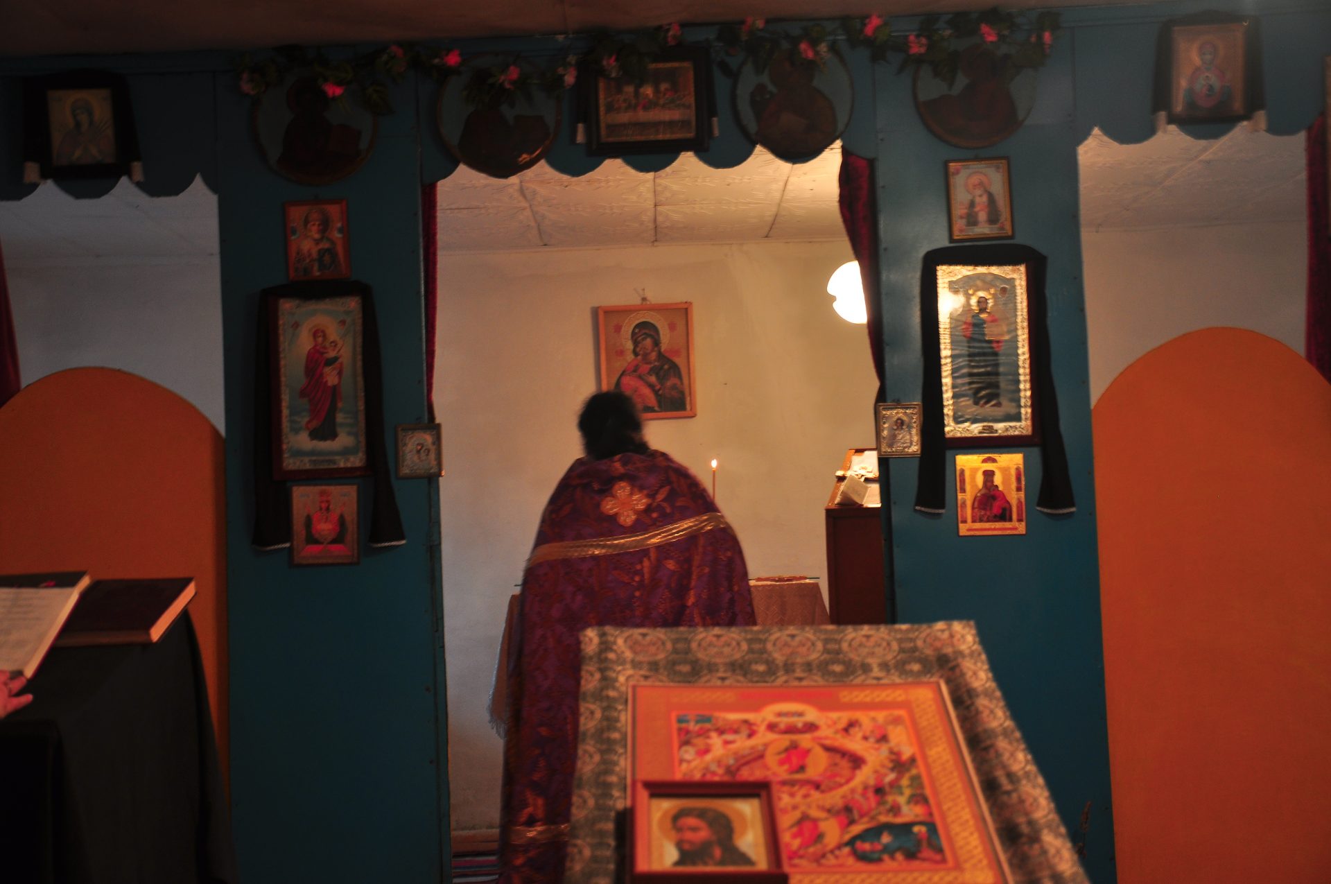 В воскресный день на Торжество православия в молельном доме была совершенна Божественная литургия за которой все причастились Святых Христовых Таин. Литургию совершил настоятель прихода иерей Николая Безручкин. Пребывание на службе молодых людей очень радовало и приободряло малочисленных прихожан, которые очень переживают, что местные жители не хотят ходить в храм.