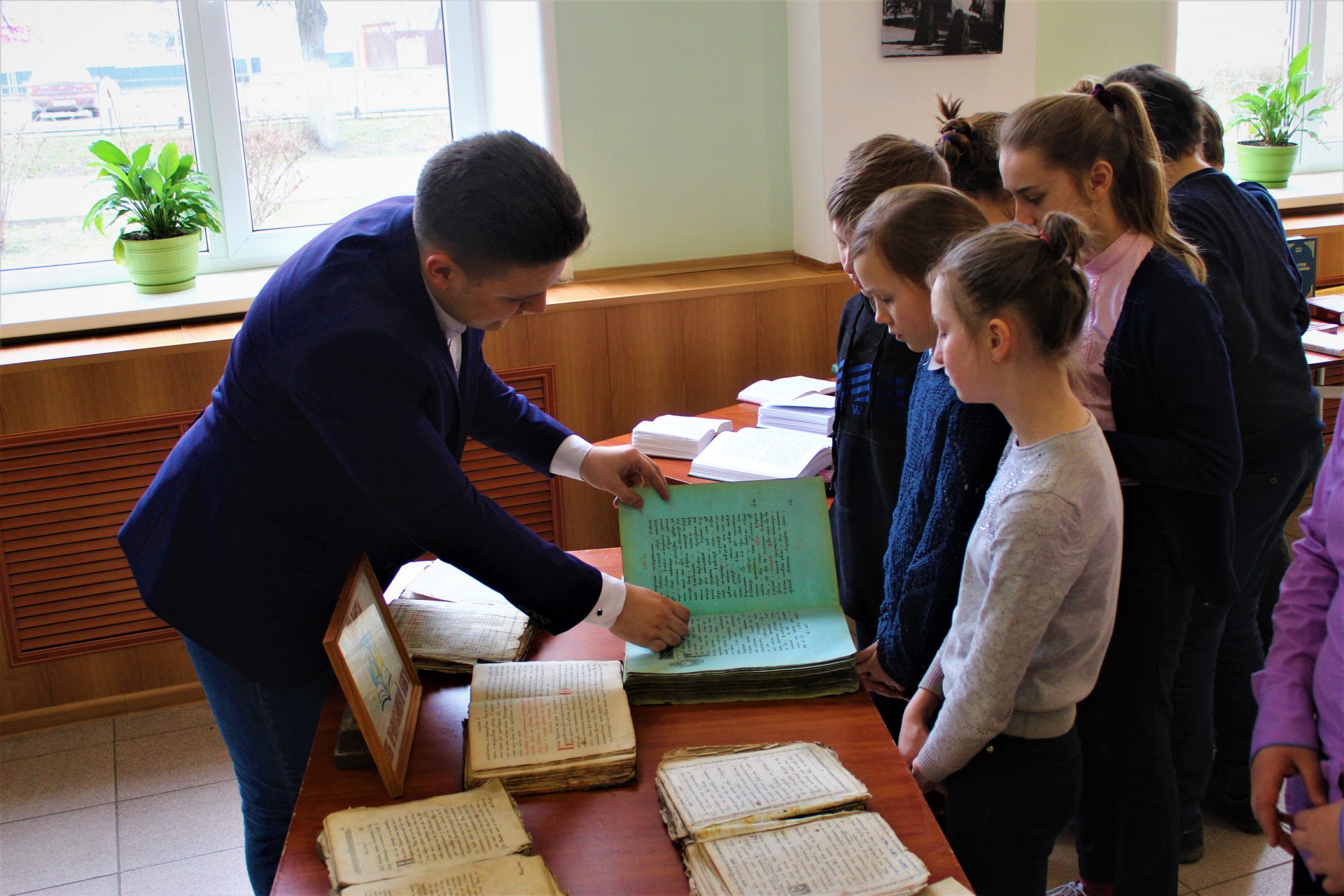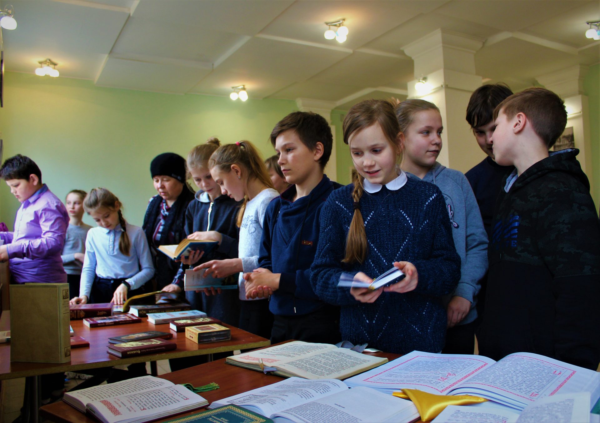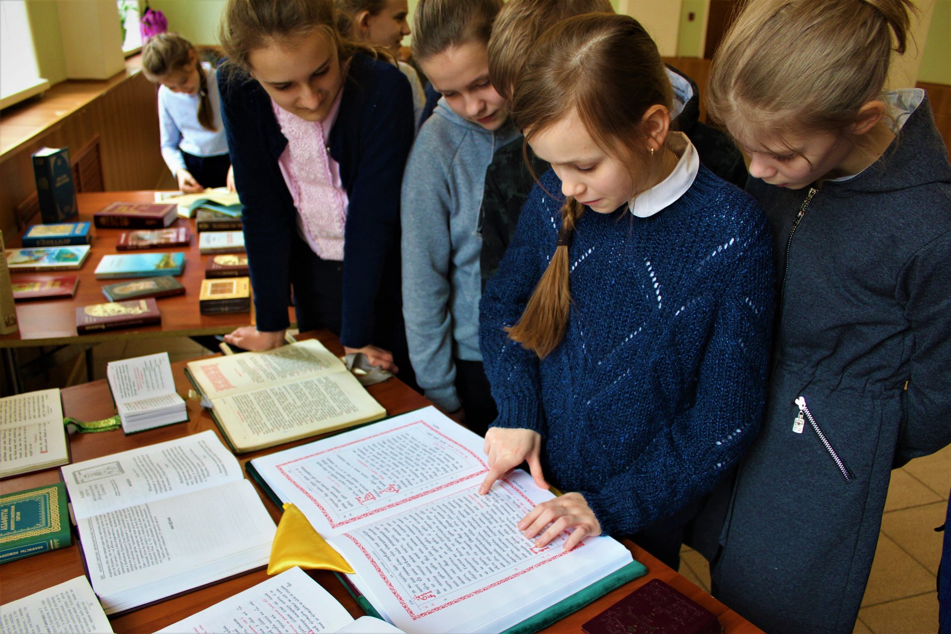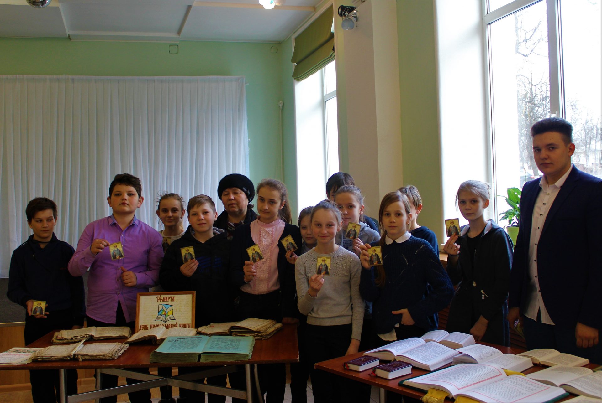 С большим интересом дети рассматривали старинные богослужебные книги: Библию, Апостол, часослов и псалтирь. Пробовали читать и старались понять о прочитанном. Также дети познакомились с современной духовной литературой. По благословению благочинного 6 округа протоиерея Василия Биляк, всем детям были преподнесены образы иконы преподобного Сергия Радонежского.