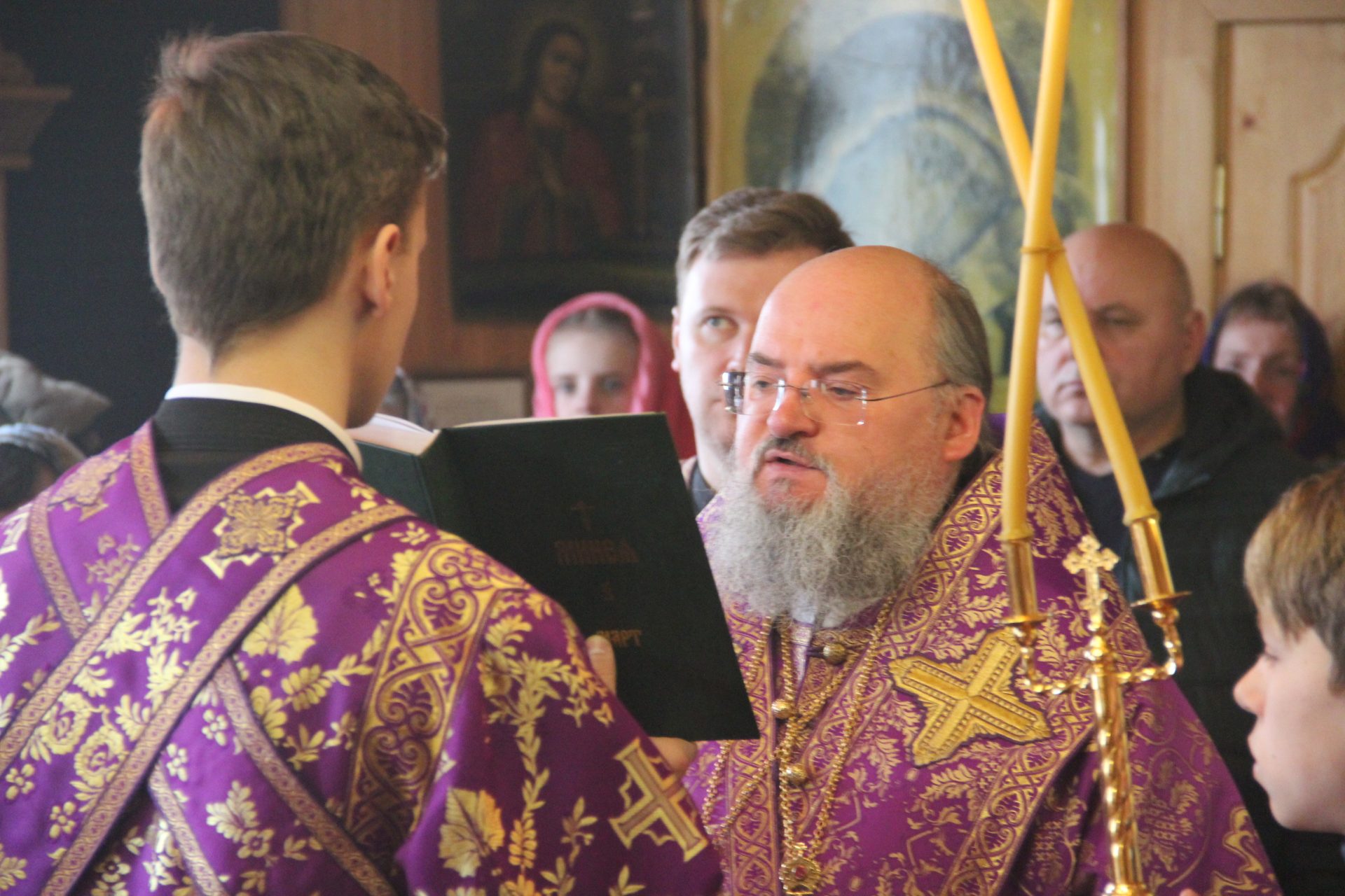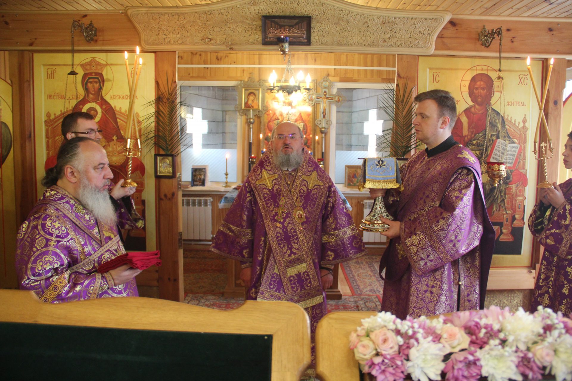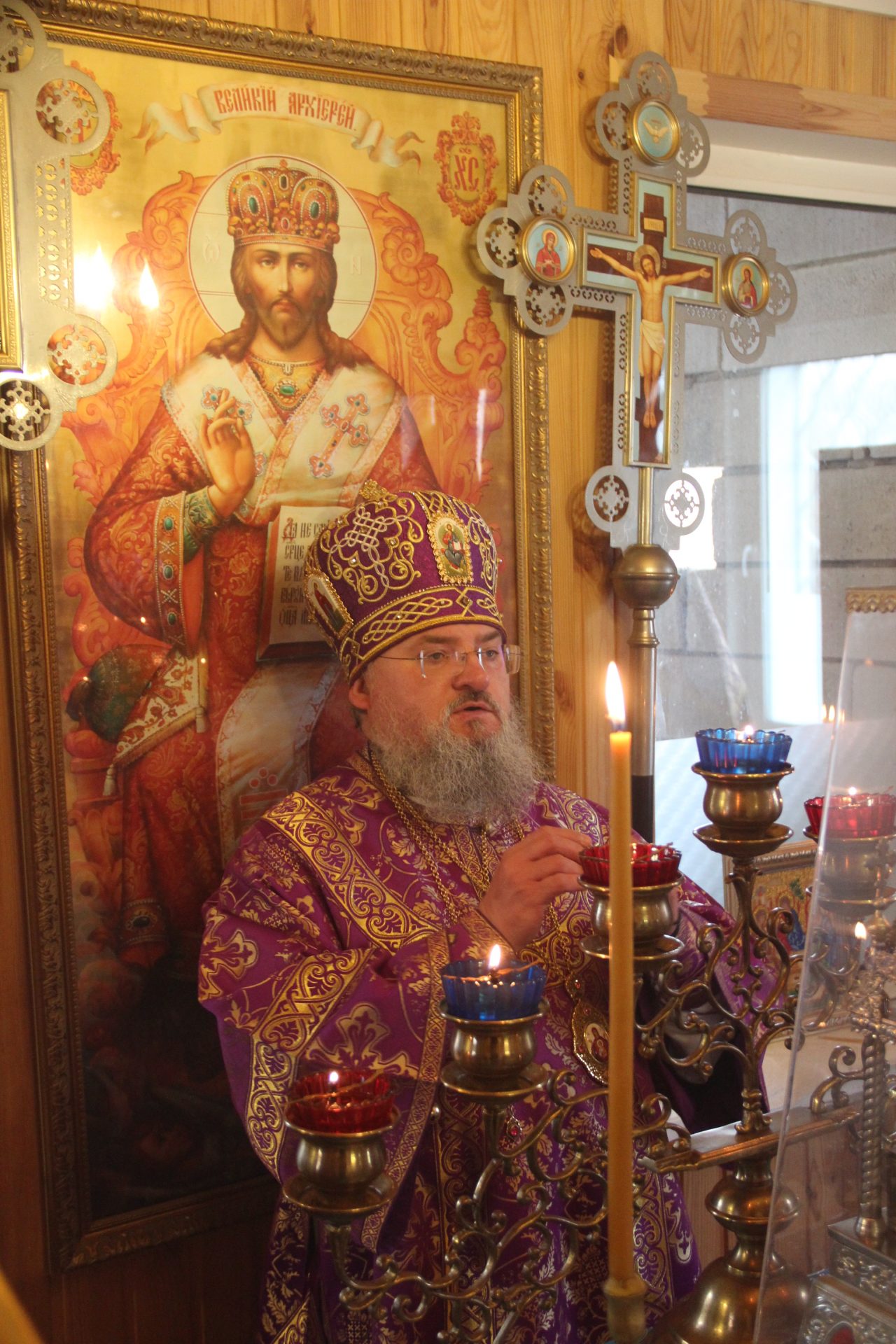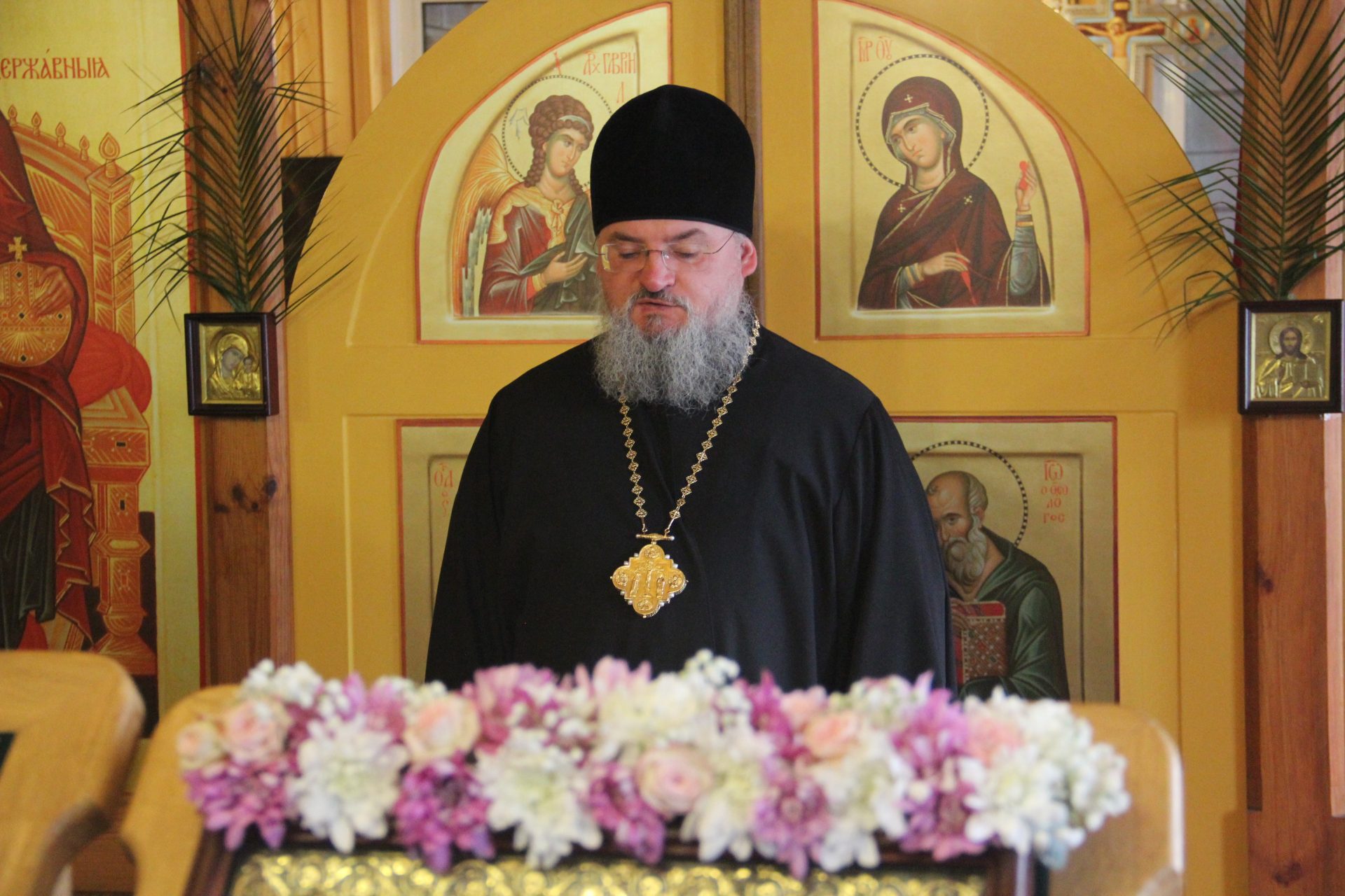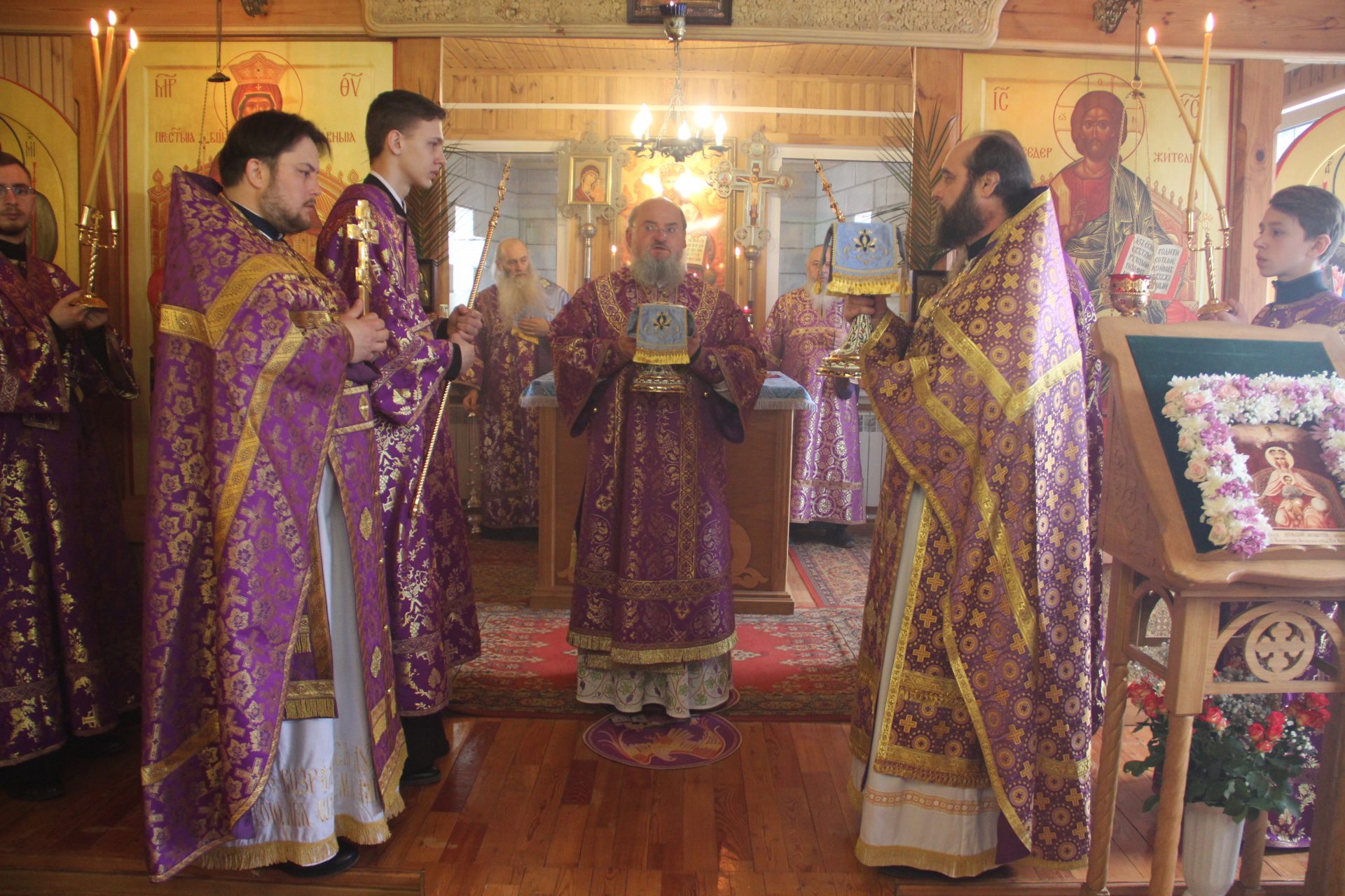 Преосвященному владыке сослужили: настоятель прихода протоиерей Дмитрий Сахаров, протоиерей Антоний Хатунцев, диакон Евгений Ковригин, диакон Вадим Ваньков и иеродиакон Виталий (Павленко).