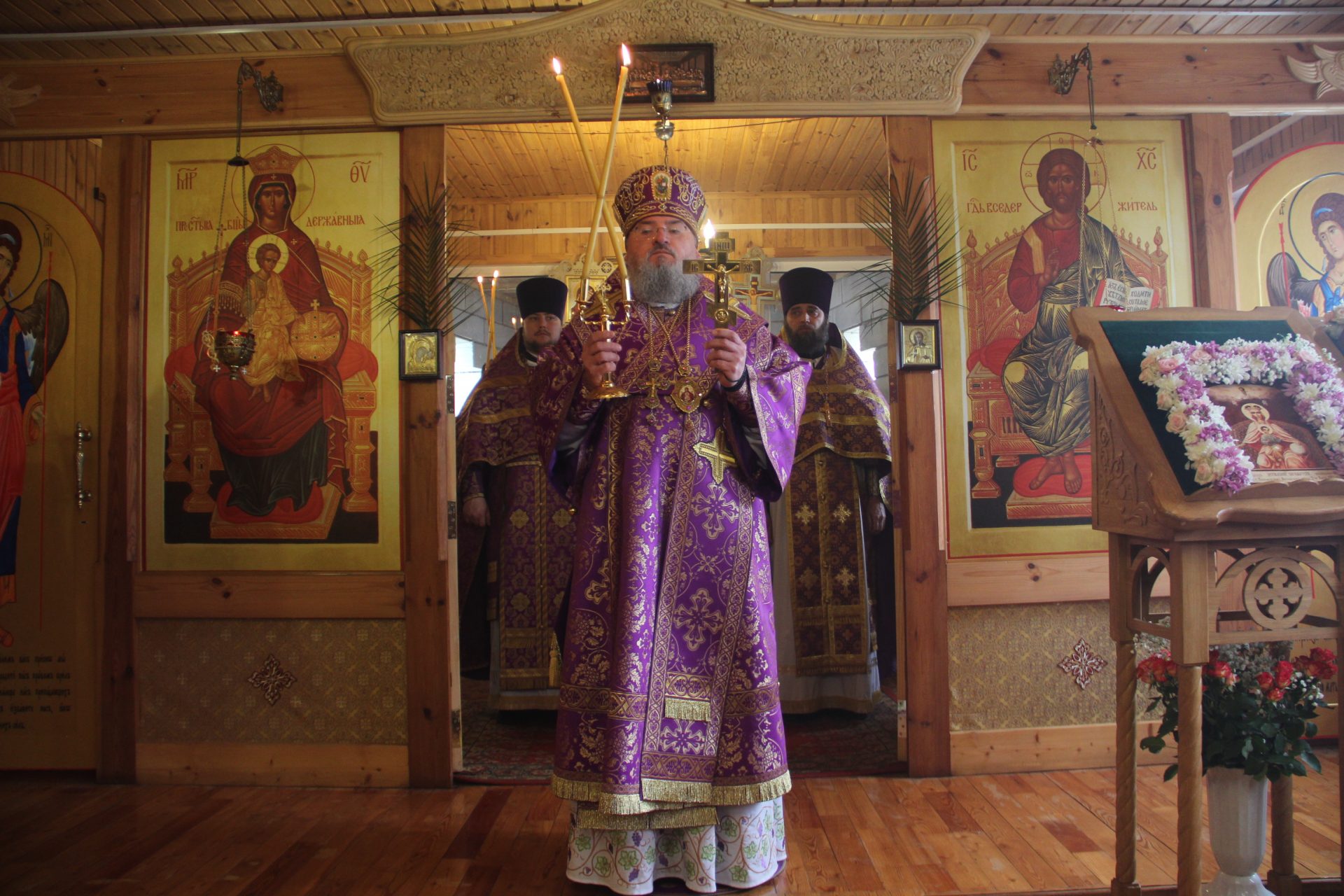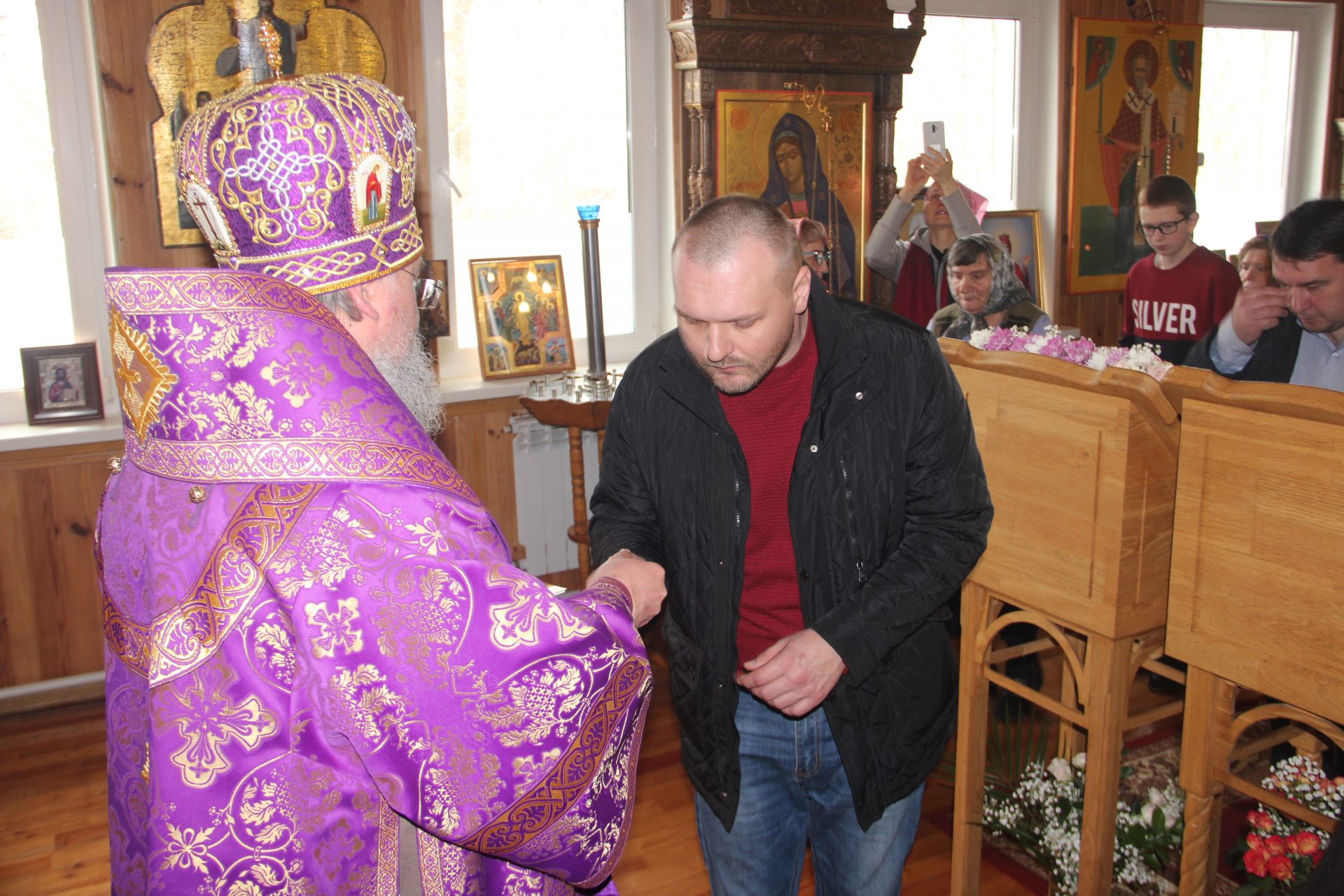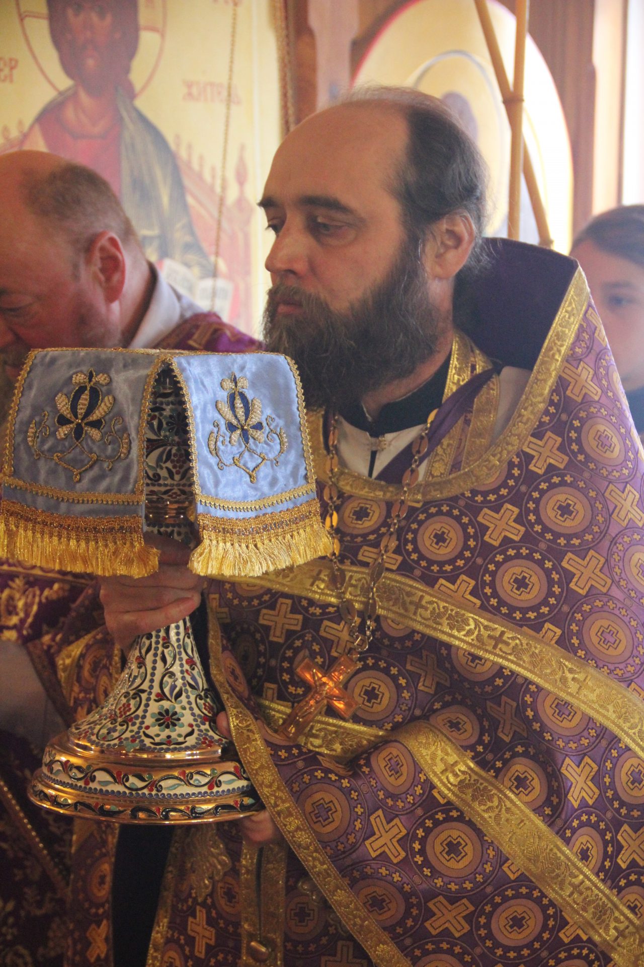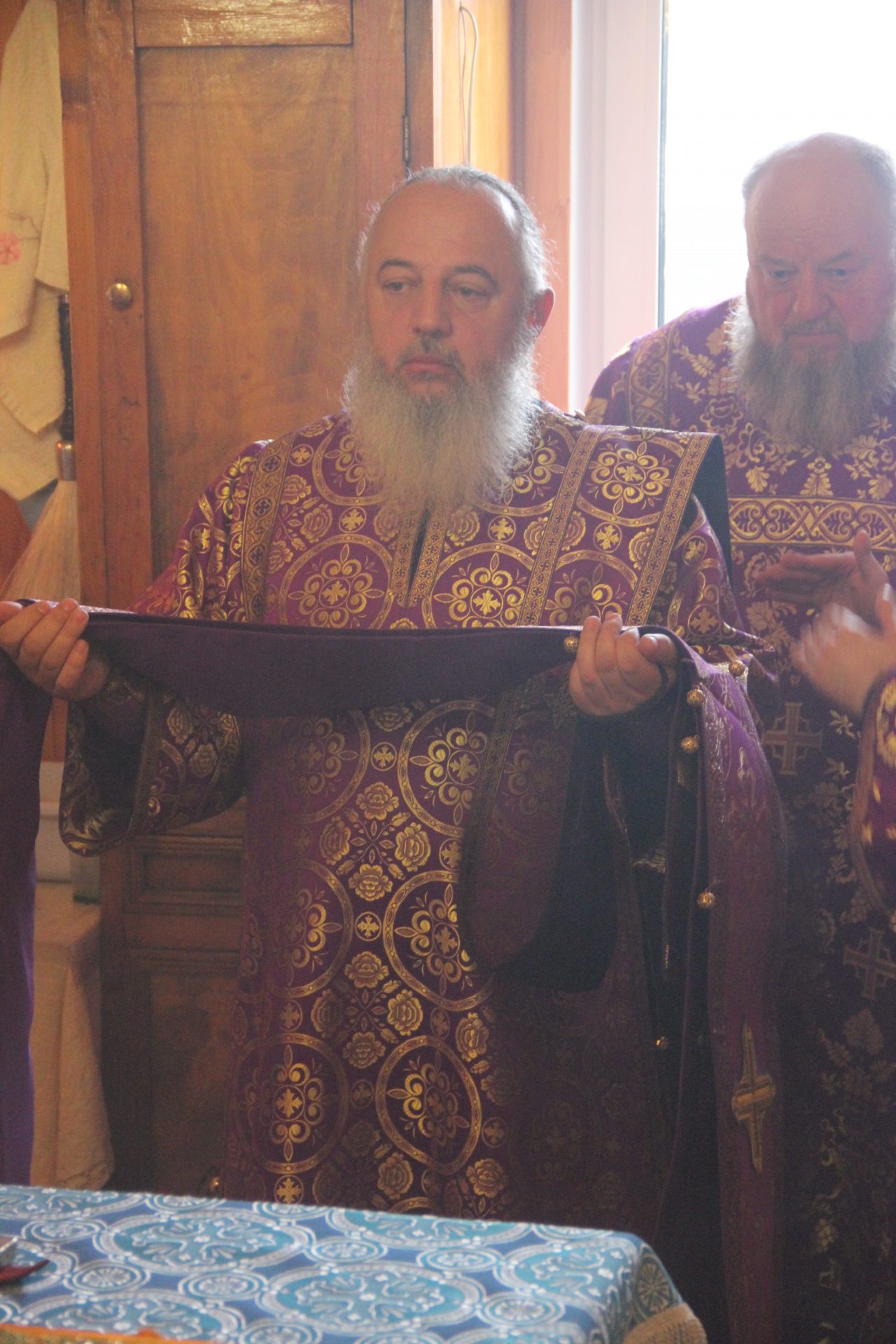 Преосвященному владыке сослужили: настоятель прихода протоиерей Дмитрий Сахаров, протоиерей Антоний Хатунцев, диакон Евгений Ковригин, диакон Вадим Ваньков и иеродиакон Виталий (Павленко).