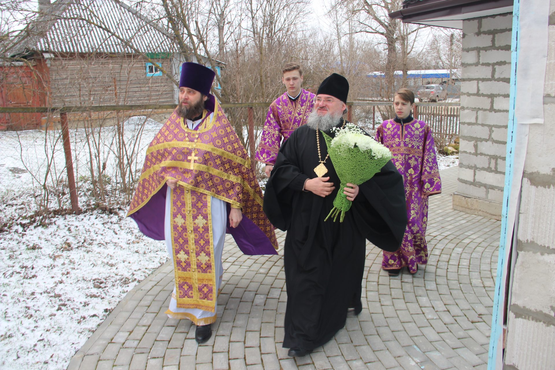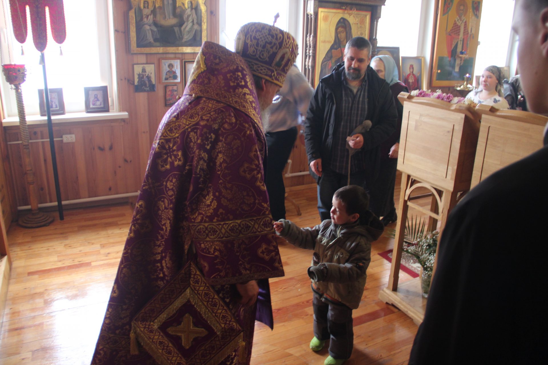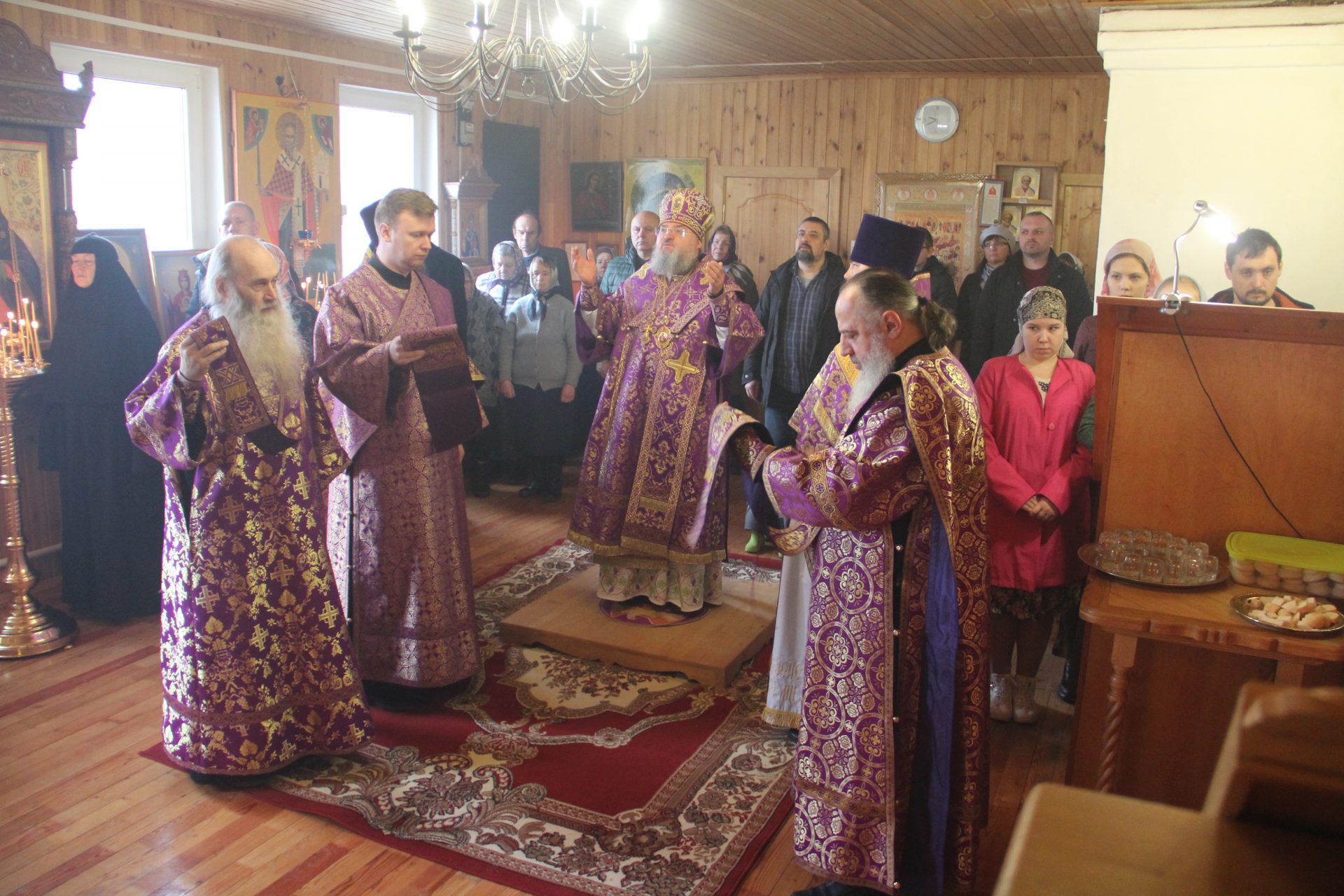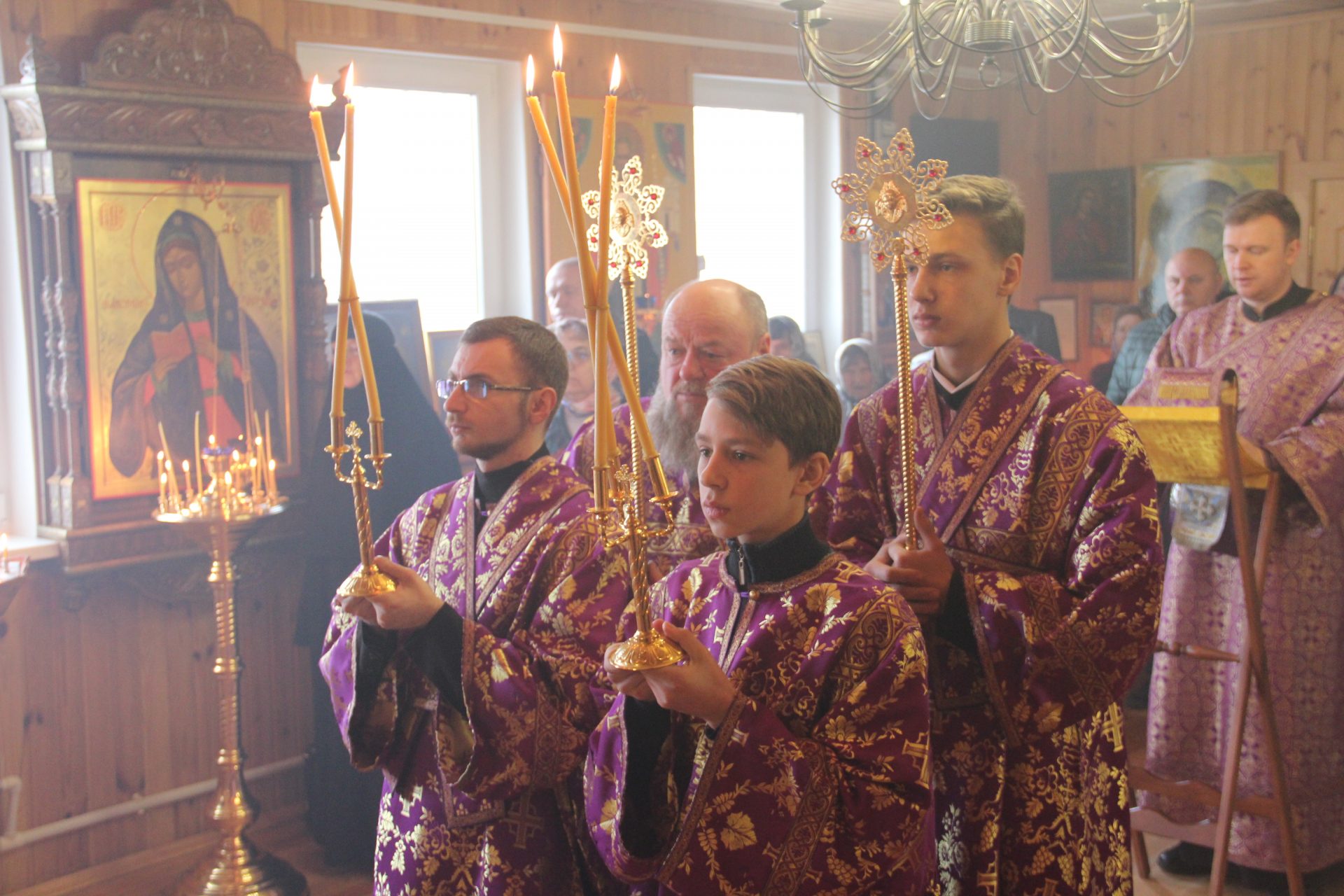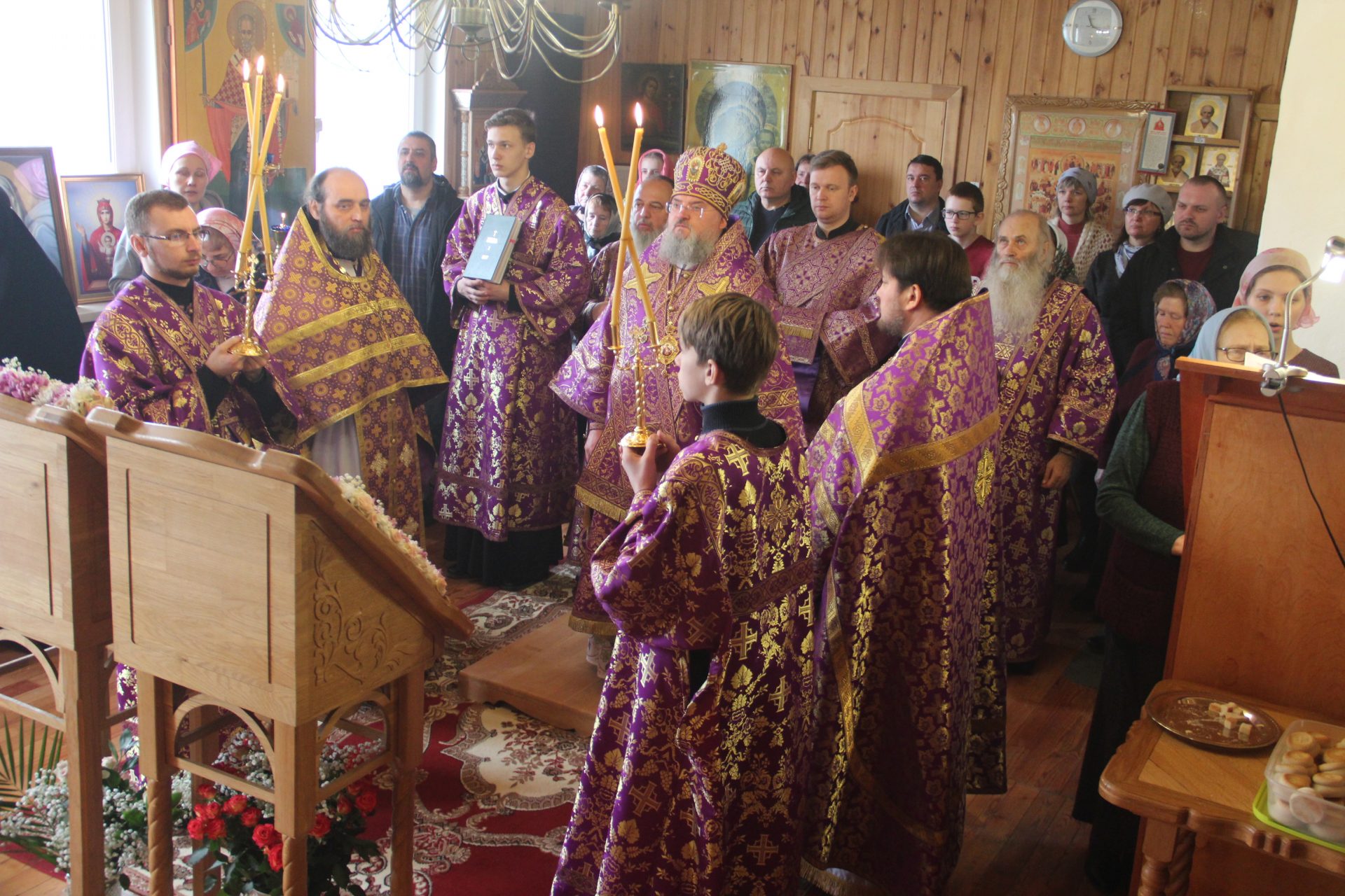 Преосвященному владыке сослужили: настоятель прихода протоиерей Дмитрий Сахаров, протоиерей Антоний Хатунцев, диакон Евгений Ковригин, диакон Вадим Ваньков и иеродиакон Виталий (Павленко).