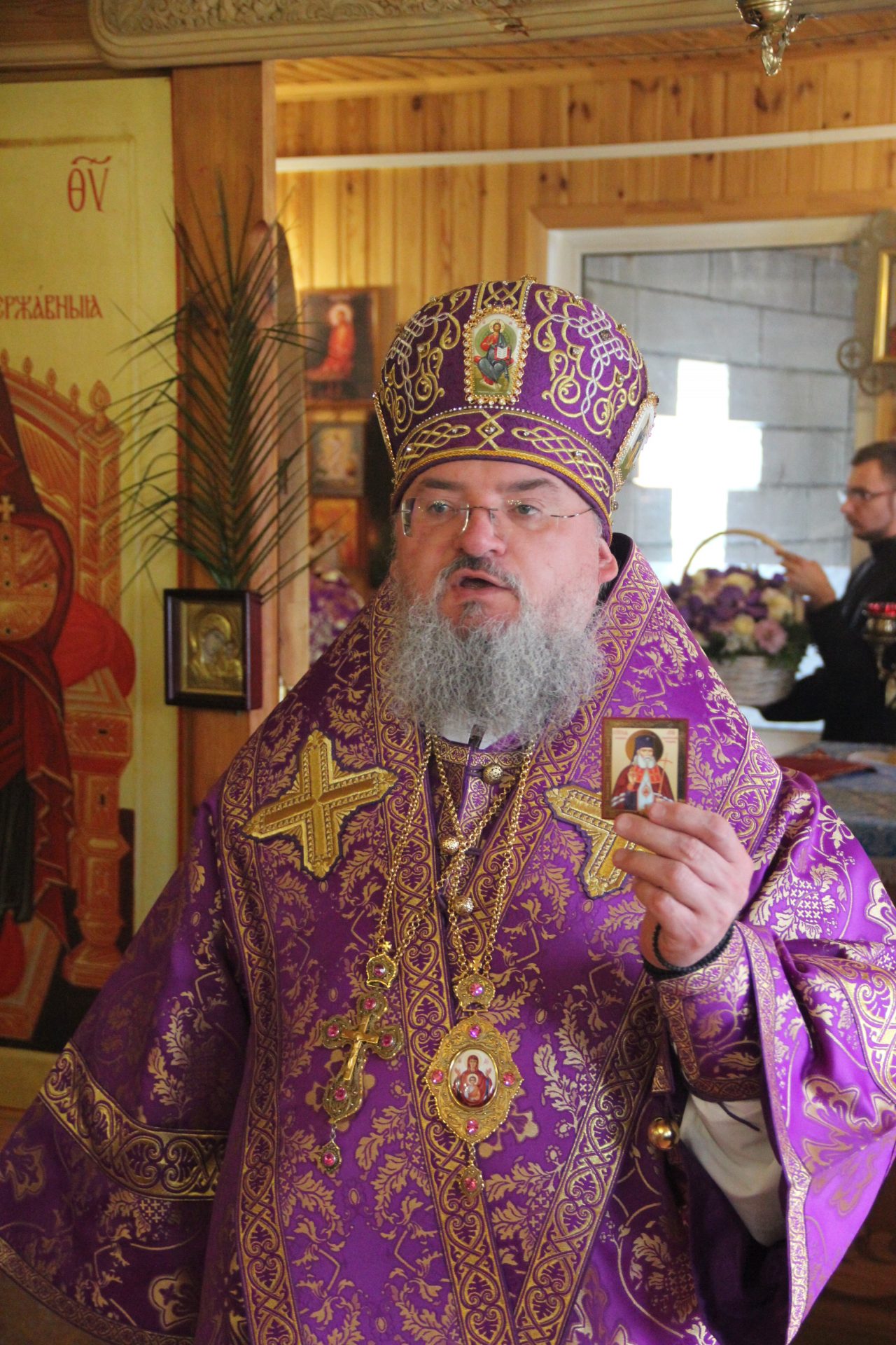 По отпусте литургии священнослужители совершили славление праздника, а затем владыка обратился к богомольцам с архипастырским словом.