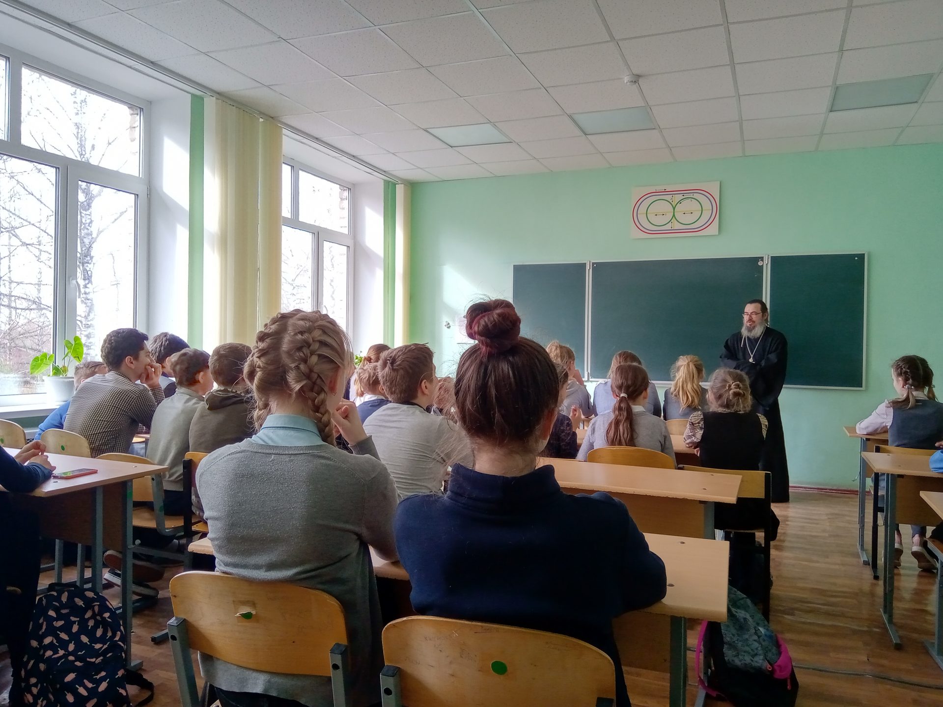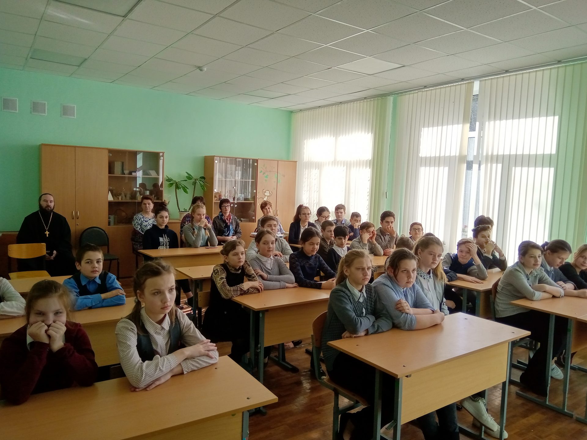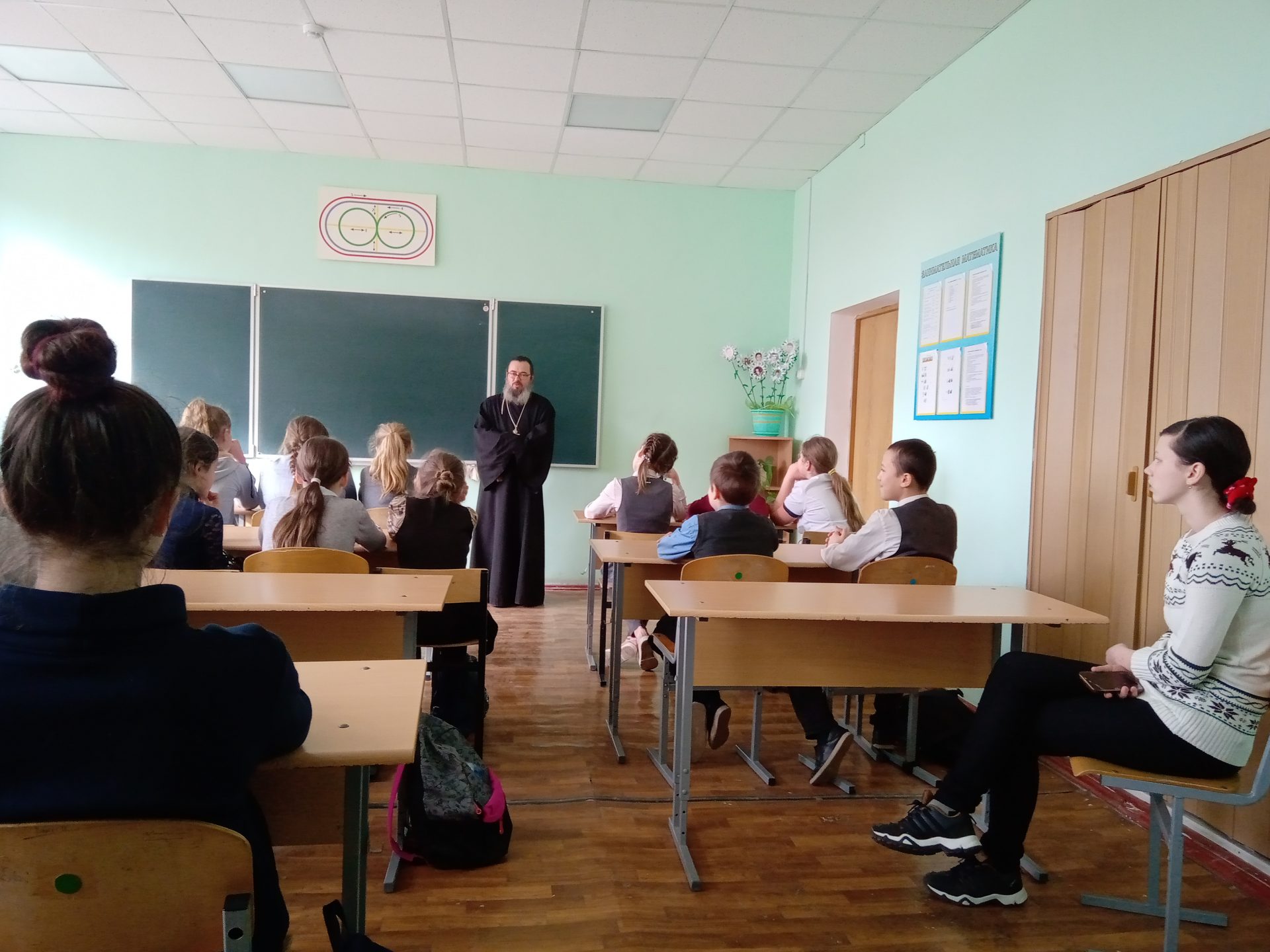 Перед учениками старших классов с докладом о житии Матроны Московской и о принципах канонизации святых в Православной Церкви выступил иерей Стахий Гайсин.