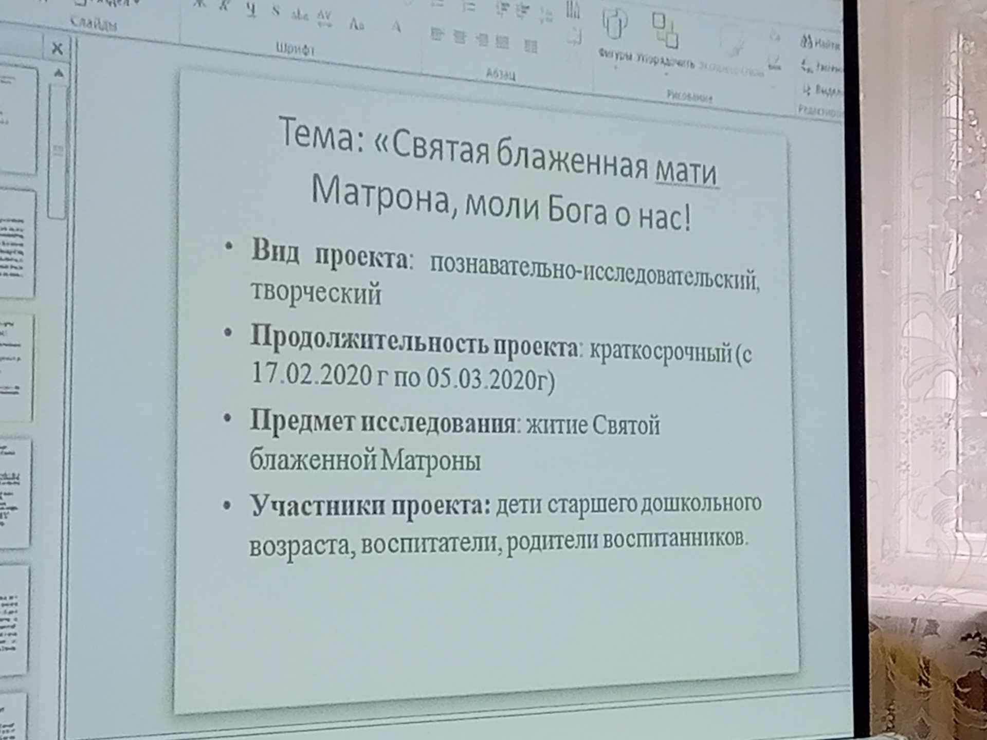 Первым был утренник в зареченском детском саду, где дети показали знание икон некоторых святых, услышали рассказ о блаженной Матроне Московской. Активное участие в утреннике приняли родители.