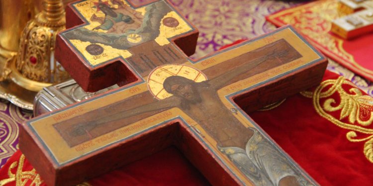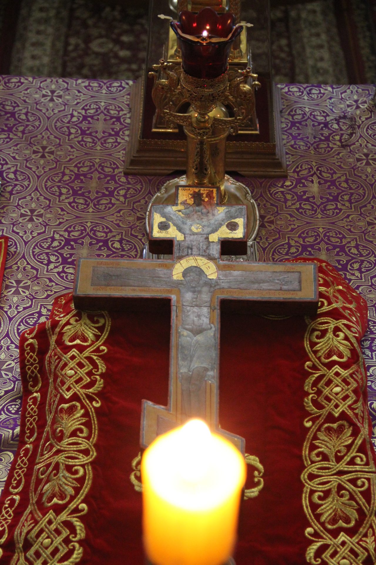 В воскресенье третьей недели Великого Поста на всенощном бдении в центр храма выносится Животворящий Крест, которому всю неделю поклоняются верующие.