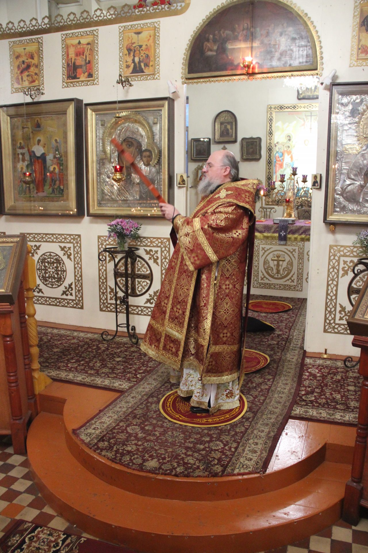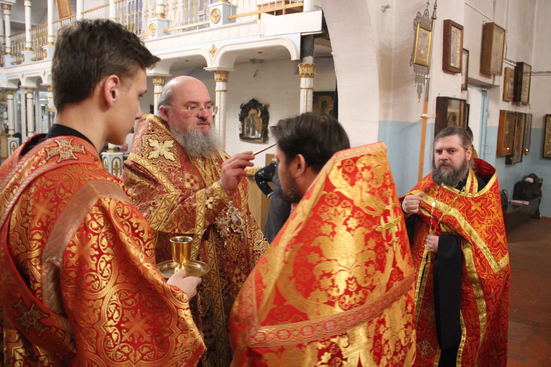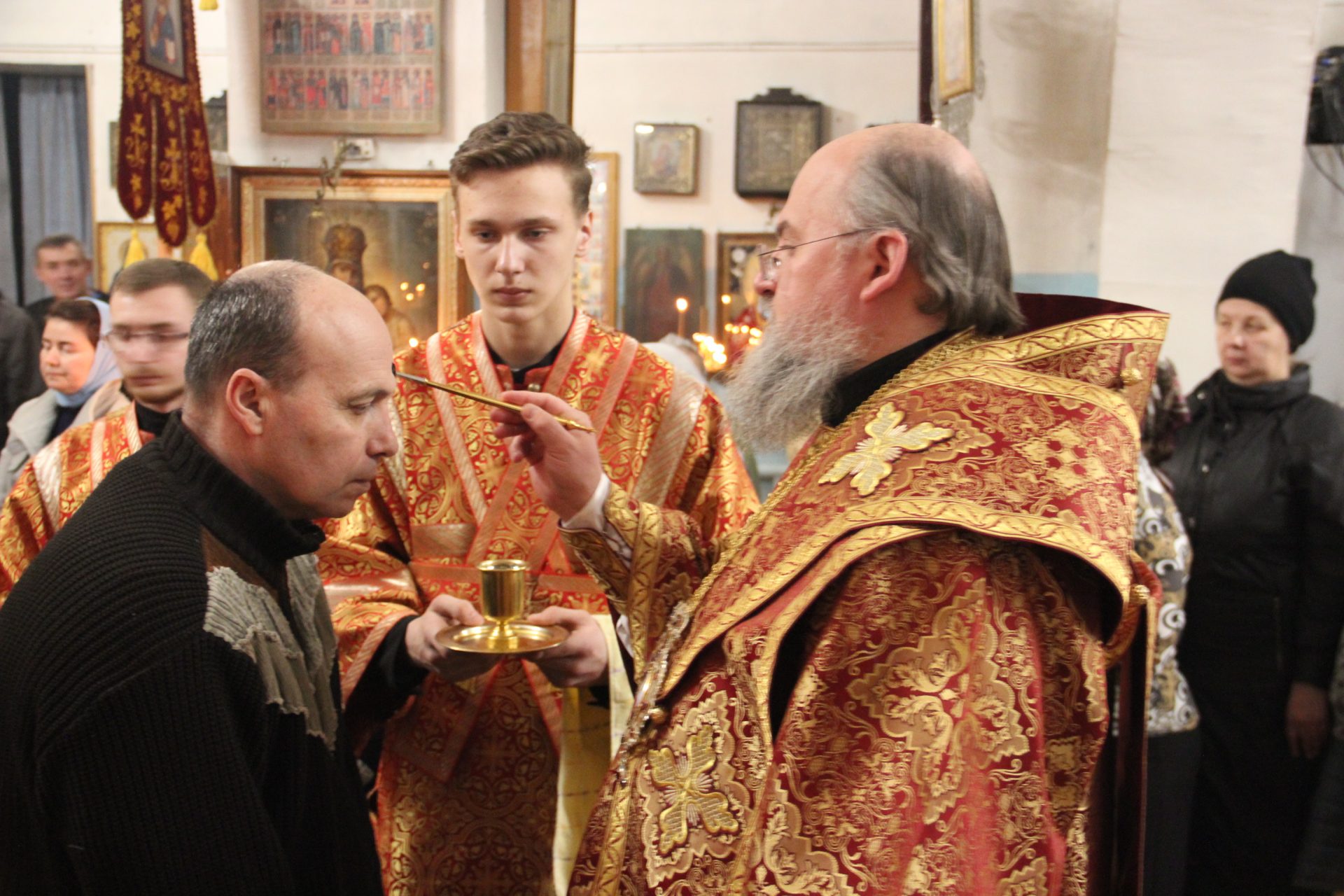После великого славословия епископ Никита совершил чин выноса Креста, после чего обратился к богомольцам с архипастырским словом, а потом состоялось помазание верующих освященным елеем.