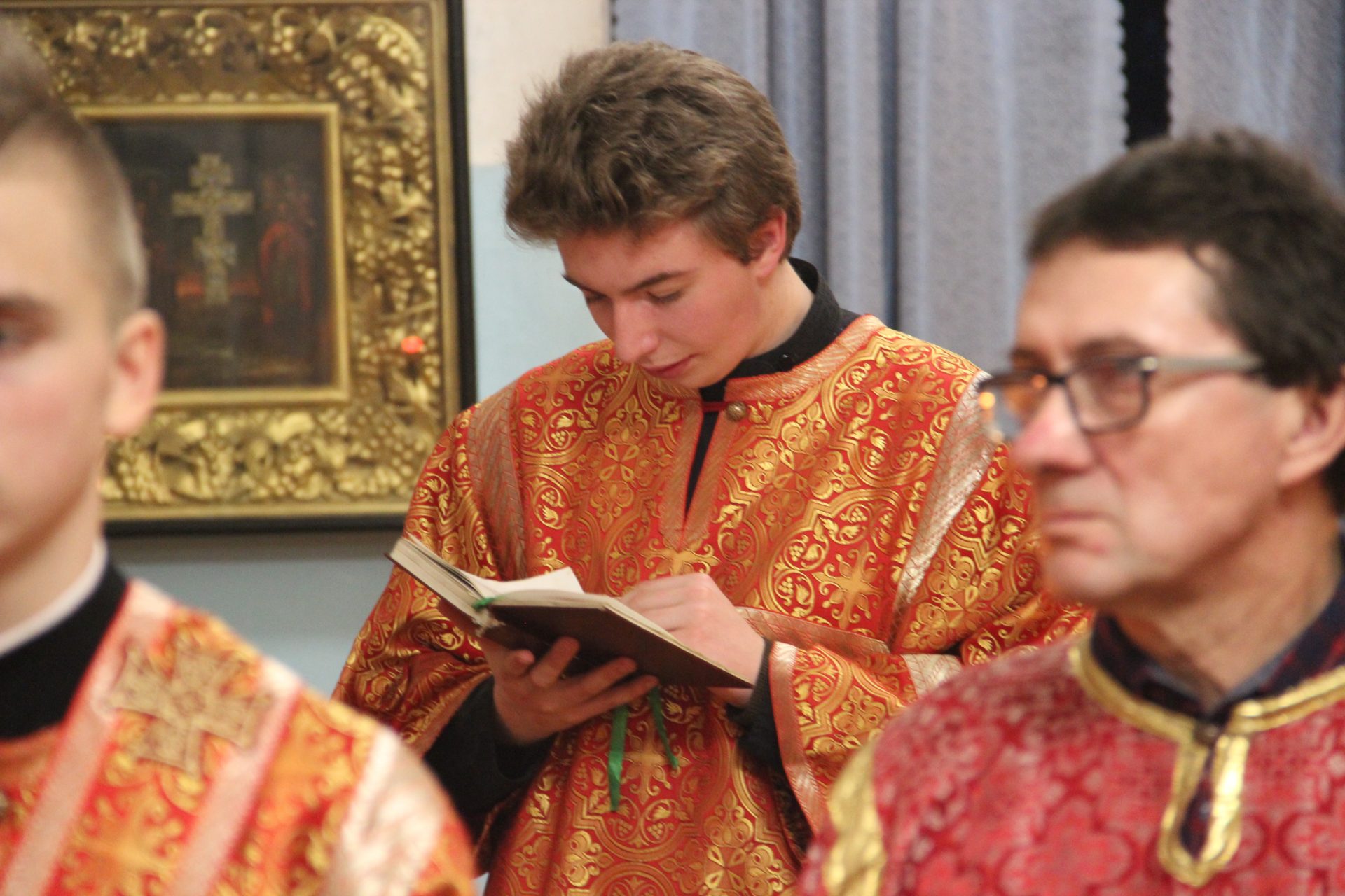 Преосвященному владыке сослужили: настоятель кафедрального собора митрофорный протоиерей Алексий Жиганов, протоиерей Михаил Карпенко, протоиерей Антоний Хатунцев, иерей Артемий Арутюнян, иерей Алексий Сначев, диакон Евгений Ковригин и диакон Андрей Соколов.