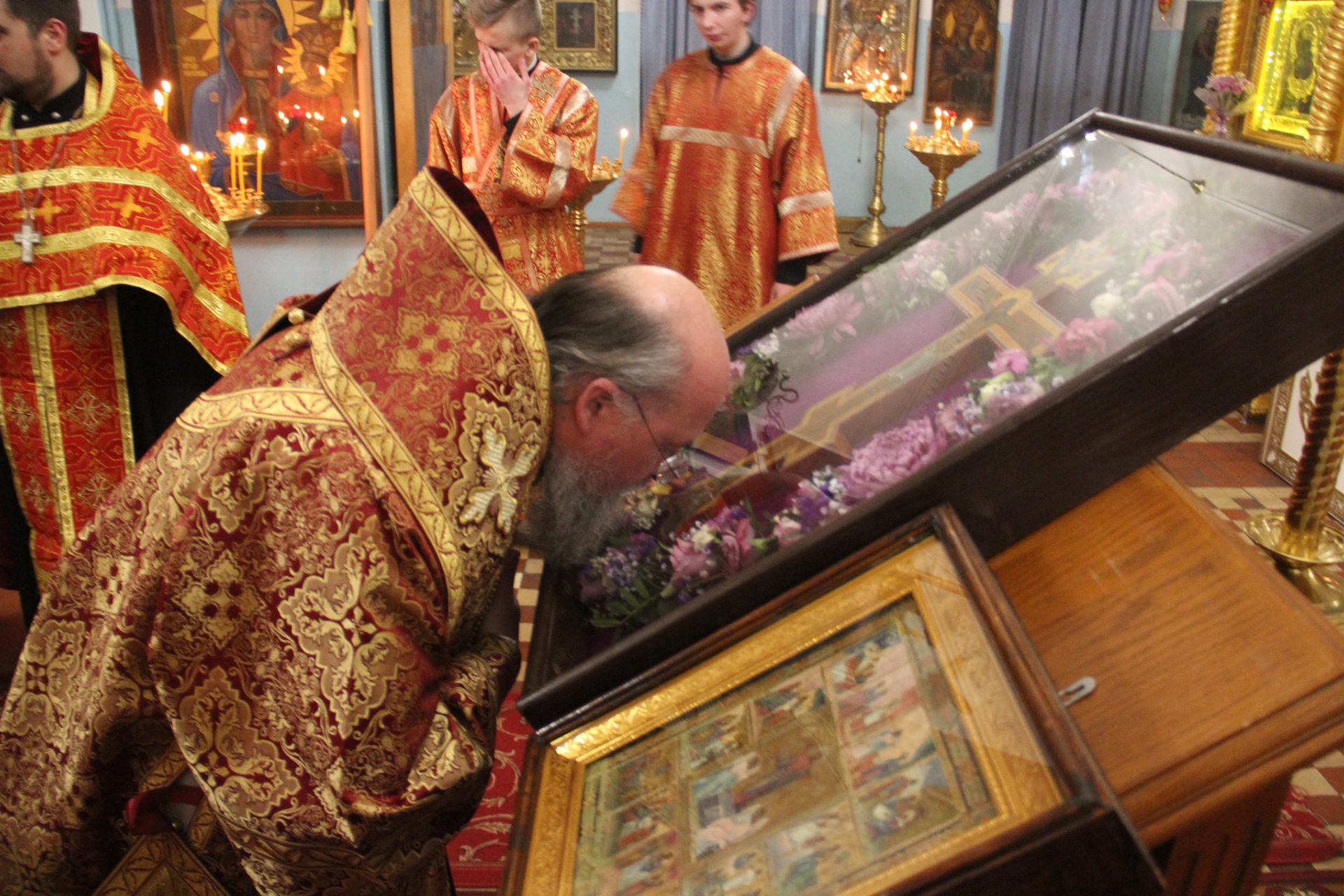 Епископ Никита совершил всенощное бдение с чином выноса Честного и Животворящего Креста Господня