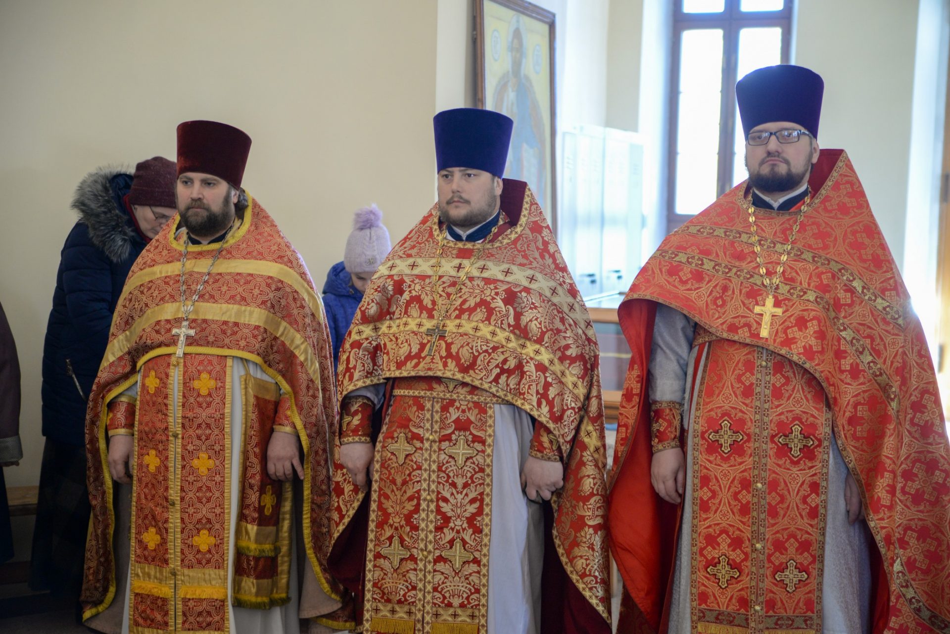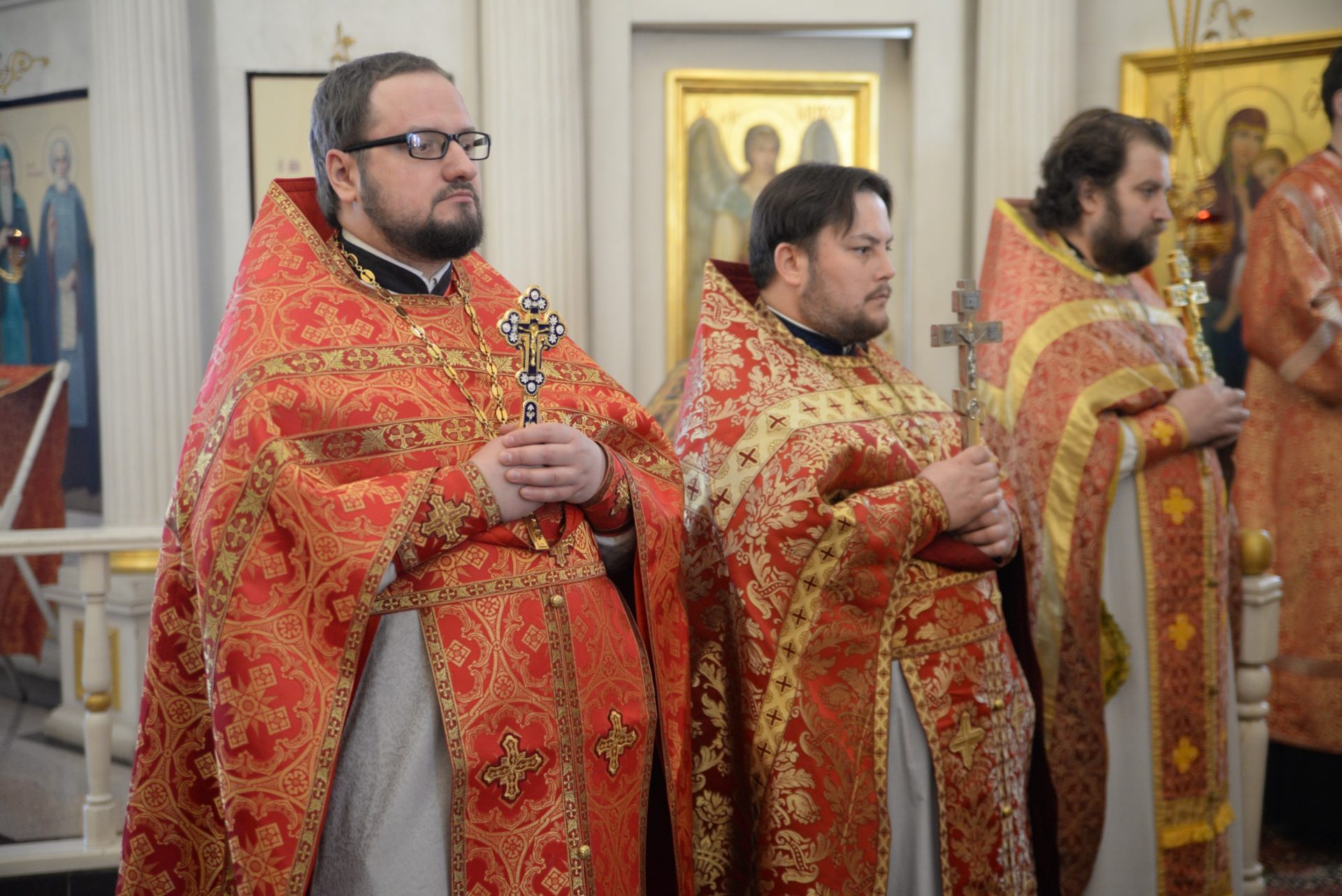 Архиереям Калужской митрополии сослужили архимандрит Иосиф (Королев), протоиерей Алексий Зиновьев – настоятель храма, протоиерей Александр Рябов, протоиерей Антоний Хатунцев, иеромонах Феофан (Сурин), иерей Николай Жерздев — руководитель Отдела по культуре Калужской епархии, представители духовенства Калужской, Козельской и Песоченской епархий. Протодиаконы Алексий Хамтеев и Сергий Комаров.