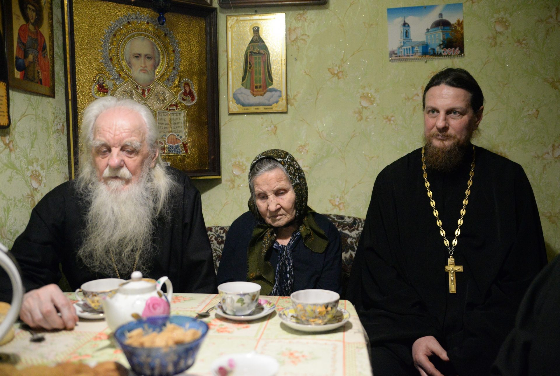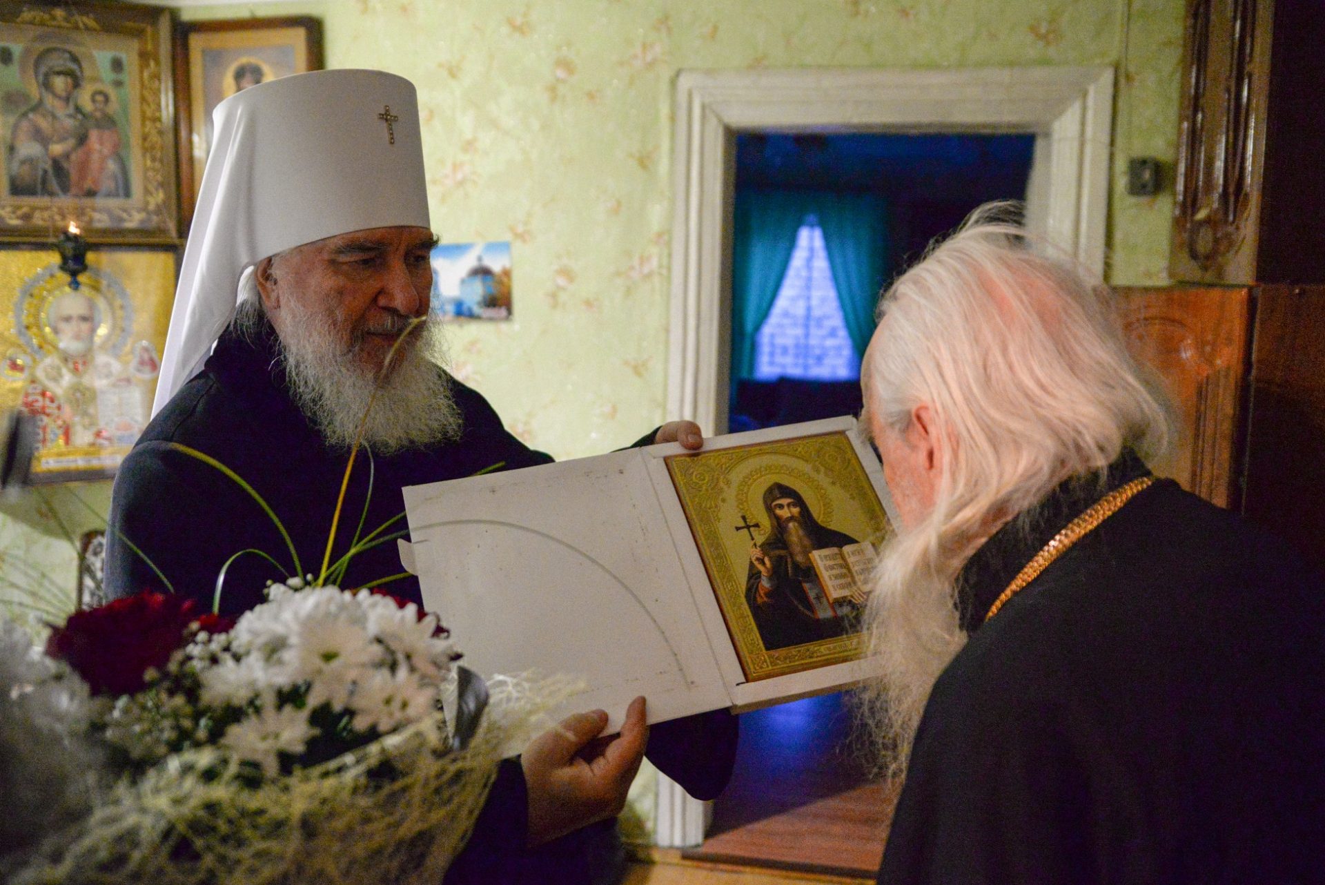 Владыка Климент пожелал протоиерею Николаю и его супруге матушке Тамаре здоровья и долгих лет жизни и преподнес им святую просфору и икону преподобного священномученика Кукши Киево-Печерского, просветителя вятичей. Владыка Никита вручил батюшке и матушке букет цветов. Также архипастыри пожелали отцу Николаю в добром здравии и хорошем расположении духа встретить предстоящий юбилей, 22 мая сего года ему исполняется 90 лет со дня рождения, и продолжать совершать свой священнический подвиг в молитве и наставлении приходской паствы мудрыми советами и опытом личной духовной жизни.