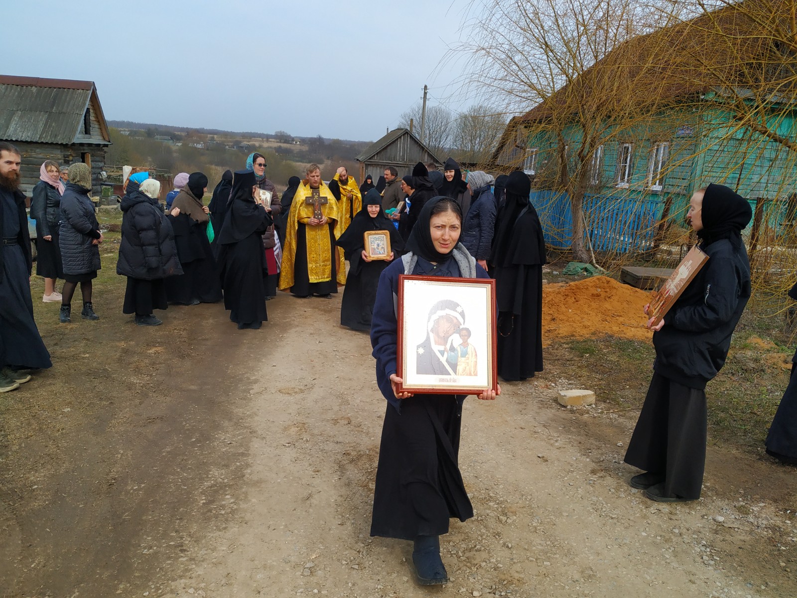 После молебна священнослужители с сестрами и богомольцами обошли крестным ходом деревни Сенино-Первое и Сенино-Второе, заходя в дома жителей и окропляя их и все вокруг святой водой.