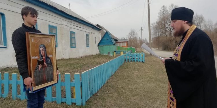 29 марта в неделю 4-ю Великого поста, по благословению епископа Козельского и Людиновского Никиты, духовенством Жиздринского благочиния было совершенно молебное пение «во время губительного поветрия и смертоносныя заразы» с акафистом Калужской иконе Пресвятой Богородицы. Молебен прошел в храме Покрова Пресвятой Богородицы города Жиздры. Параллельно соборного молебна многие прихожане храма, которым накануне за Божественной Литургией были розданы особые молитвословия, читаемые во время эпидемии, молились с духовенством по соглашению, так же читая акафист Калужской иконе.