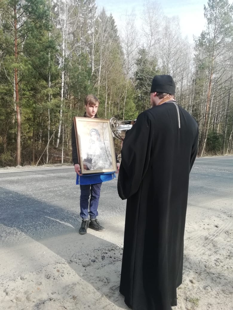 После общего молитвословия отцы благочиния разъехались «автомобильным крестным ходом» по основным направлениям Жиздринского района. Так благочинный 7-го округа Козельской епархии иерей Алексей Ефименков проехал вокруг города Жиздры и отправился до деревни Ослинка. Иеромонах Сергий (Тимофеев) доехал до деревни Полюдово. Иерей Николай Безручкин доехал до деревни Коренево. Иерей Иоанна Майоров доехал до деревни Огорь. По всем направлениям священнослужители останавливались во всех населенных пунктах, вознося молитву об избавления от губительного поветрия и смертоносной пагубы, а так же молитву Божией Матери пред Ее Калужской иконой.