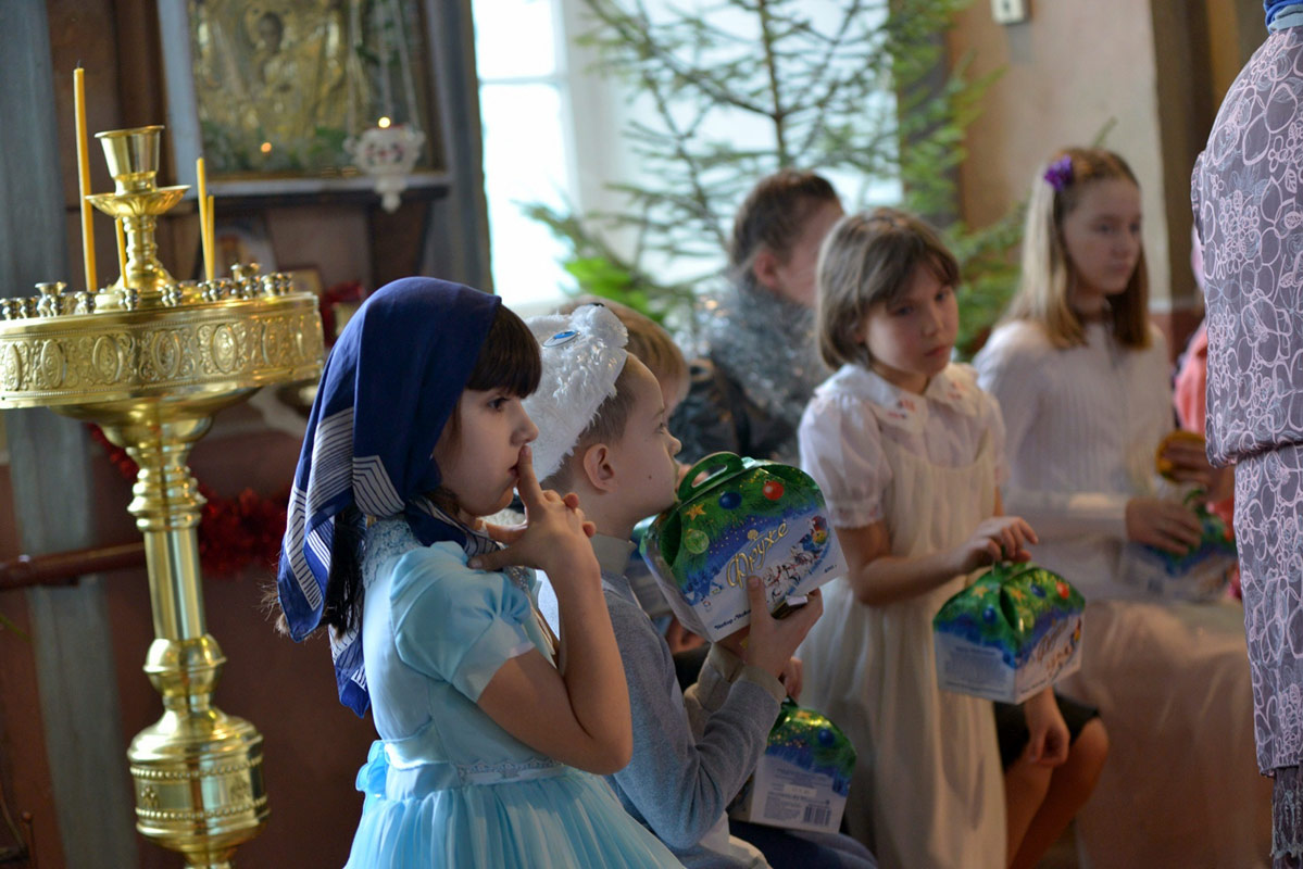 После Литургии для всех приглашенных детей, и их родителей, ученики воскресной школы утроили Рождественский утренник, на котором дети читали стихи, пели рождественские колядки, утраивали конкурсы, викторины.