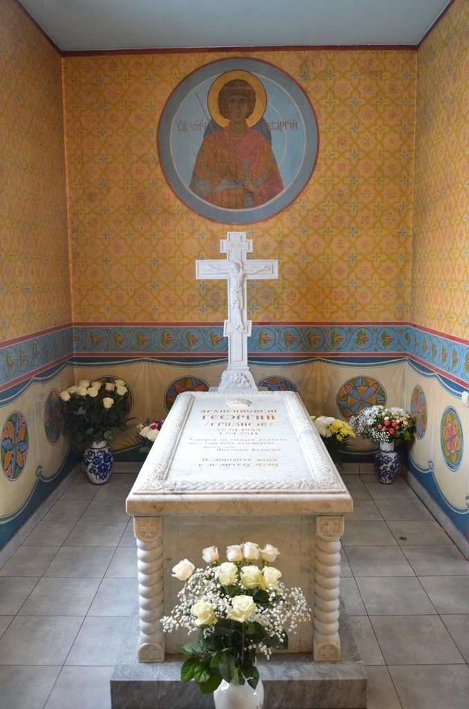 Заупокойное богослужение в крипте, где похоронен приснопоминаемый архипастырь, совершил протоиерей Иоанн Паюл — настоятеля храма в сослужении клириков храма.
