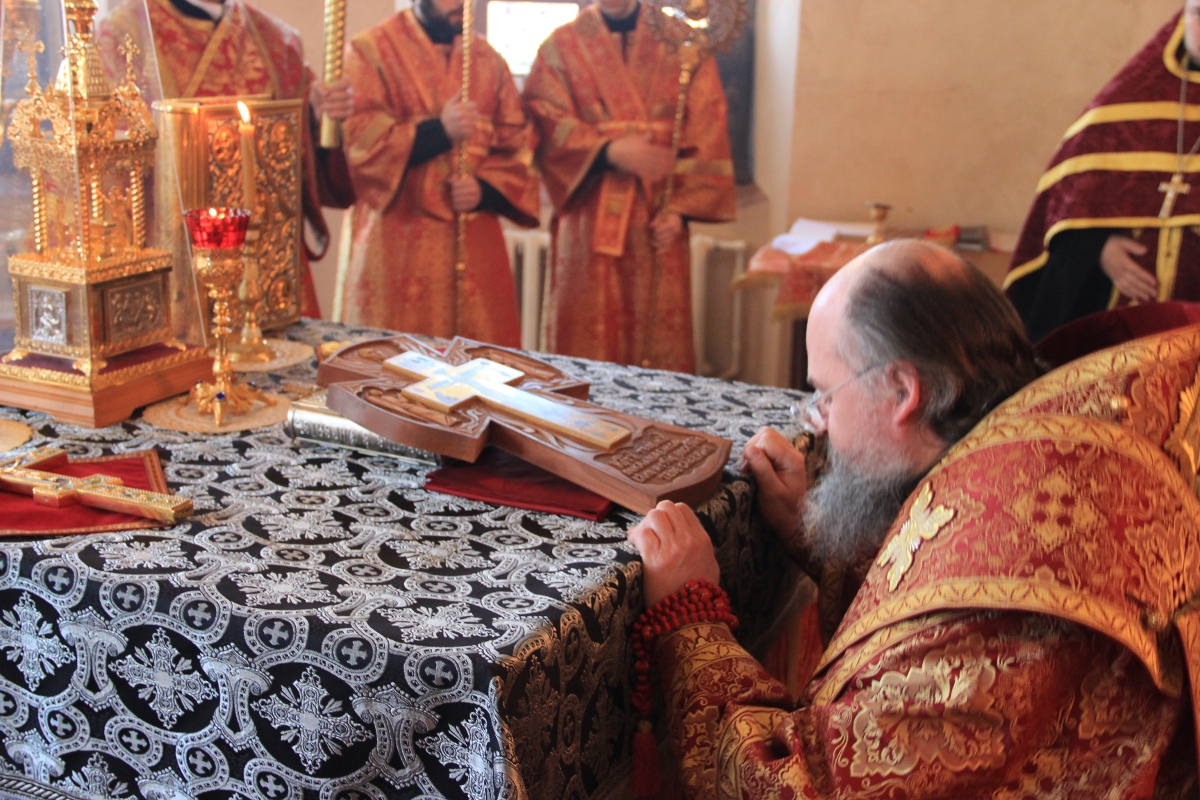 Епикоп Никита совершил всенощное бдение с выносом Честнаго и Животворящего Креста