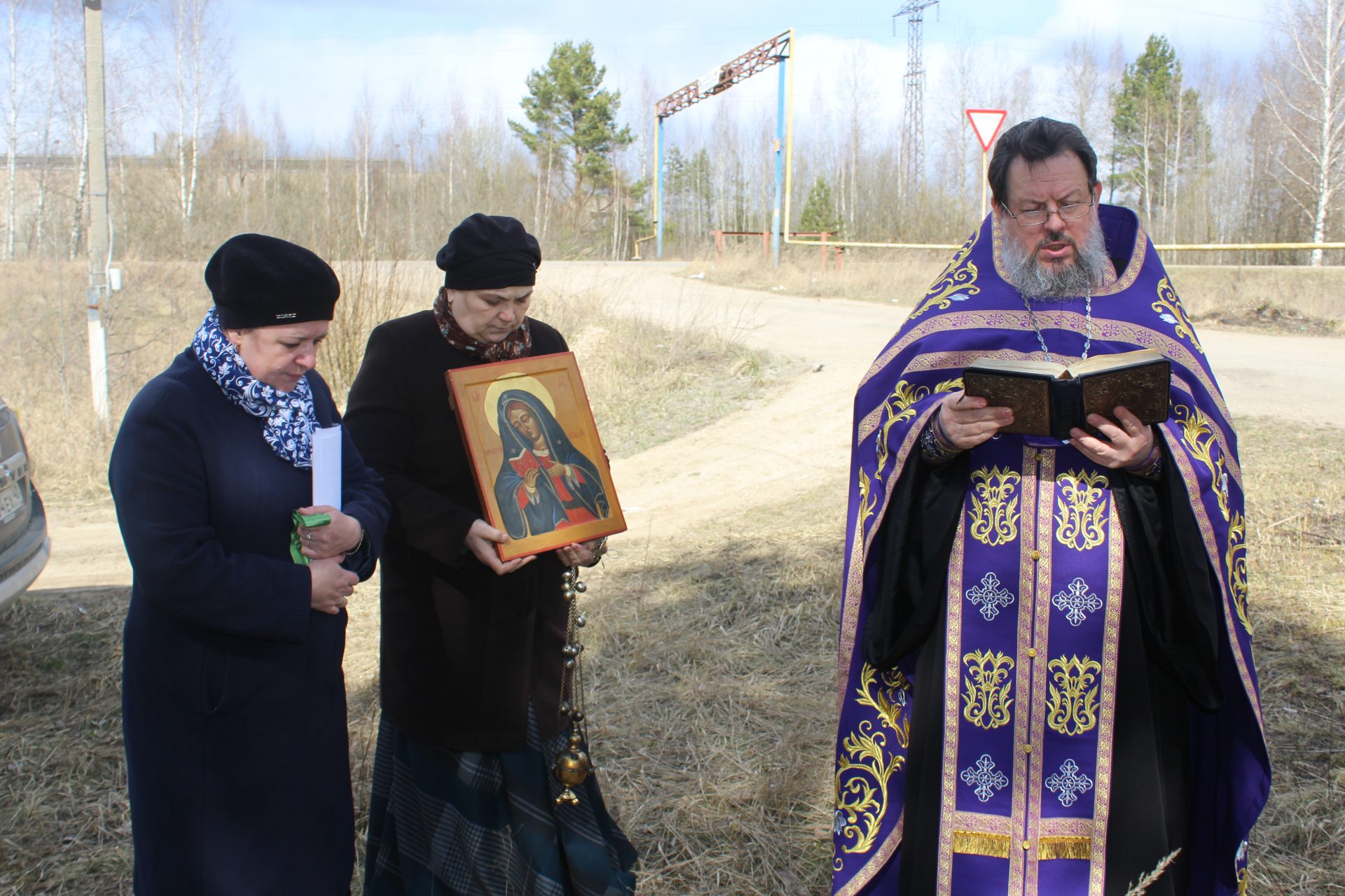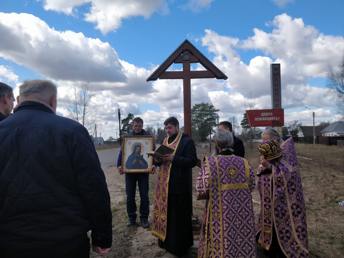 После соборного молитвословия, которое возглавил благочинный 6 округа протоиерей Василий Биляк, духовенство благочиния протоиерей Алексий Жиганов, протоиерей Михаил Карпенко, протоиерей Димитрий Губаль, иерей Алексий Сначев, иерей Артемий Арутюнян, иерей Георгий Краснов, диакон Андрей Соколов разъехались «автомобильным крестным ходом» по основным направлениям Людиновского района. С чтением акафиста Калужской иконы Божией Матери священники и прихожане, объезжая город молились у Поклонных Крестов о защите города «от губительного поветрия и смертоносной заразы». По всем направлениям священнослужители останавливались во всех населенных пунктах, вознося молитву об избавления от губительного поветрия и смертоносной пагубы, а так же молитву Божией Матери пред Ее Калужской иконой.
