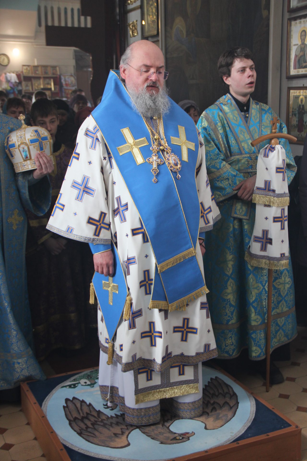 Архипастырю сослужили: протоиерей Павел Морозов, протоиерей Антоний Хатунцев, иерей Сергий Барыкин – настоятель прихода, диакон Евгений Ковригин и диакон Евгений Васильев.