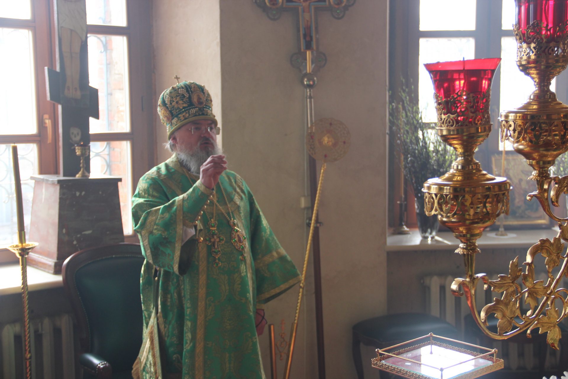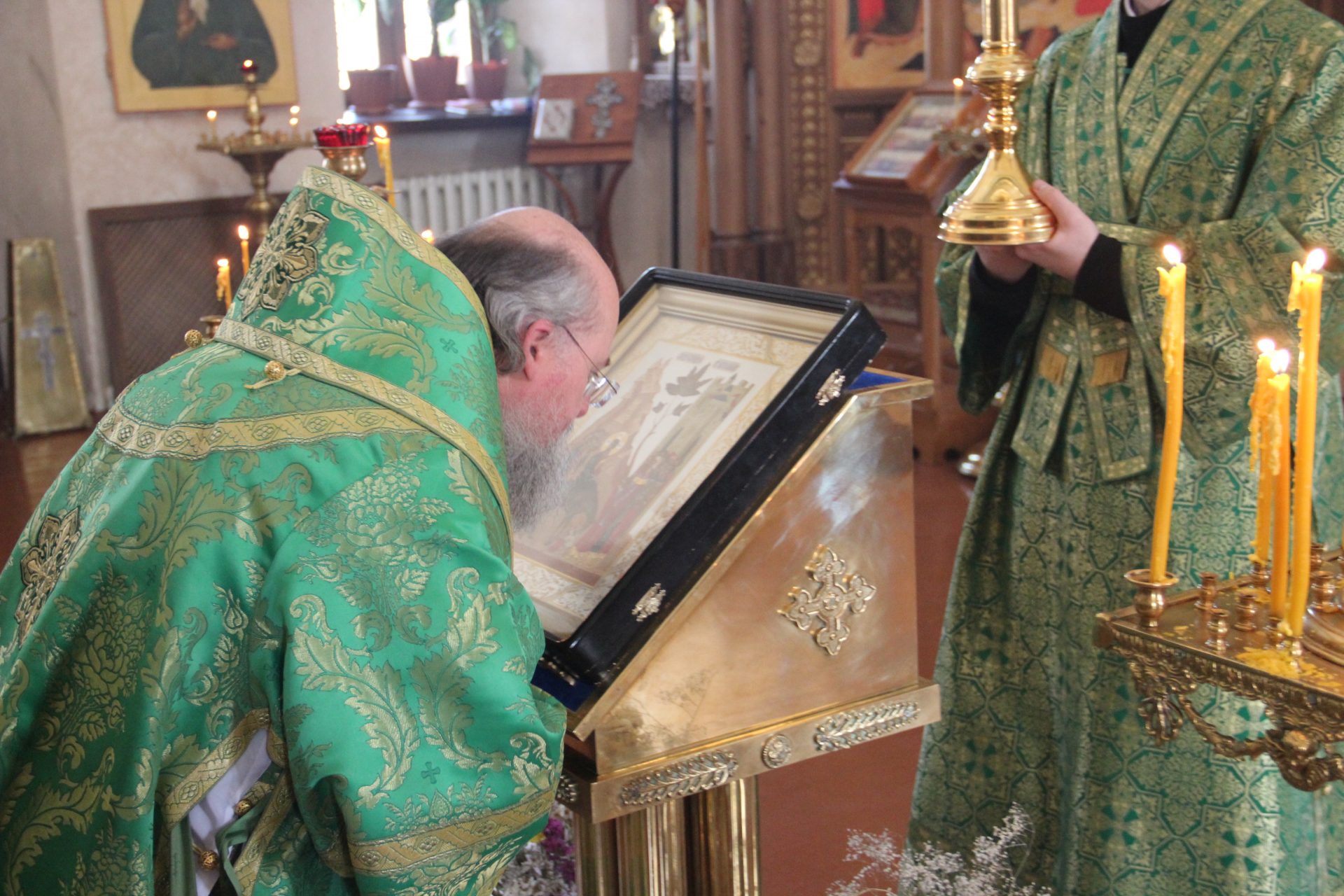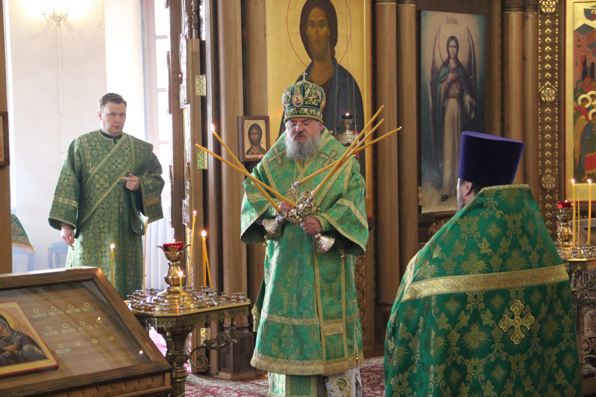 Его Преосвященству сослужили: иеромонах Паисий (Курмаз) – настоятель собора, протоиерей  Антоний Хатунцев, иерей Елисей Тимофеев, лексий Хамтеев, диакон Евгений Ковригин и диакон Дмитрий Лутков.