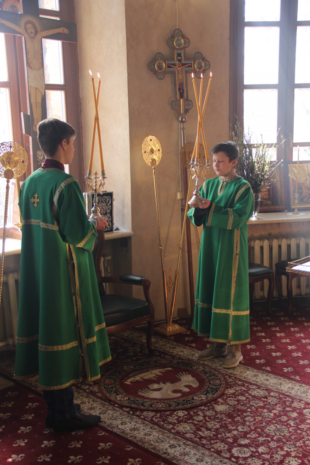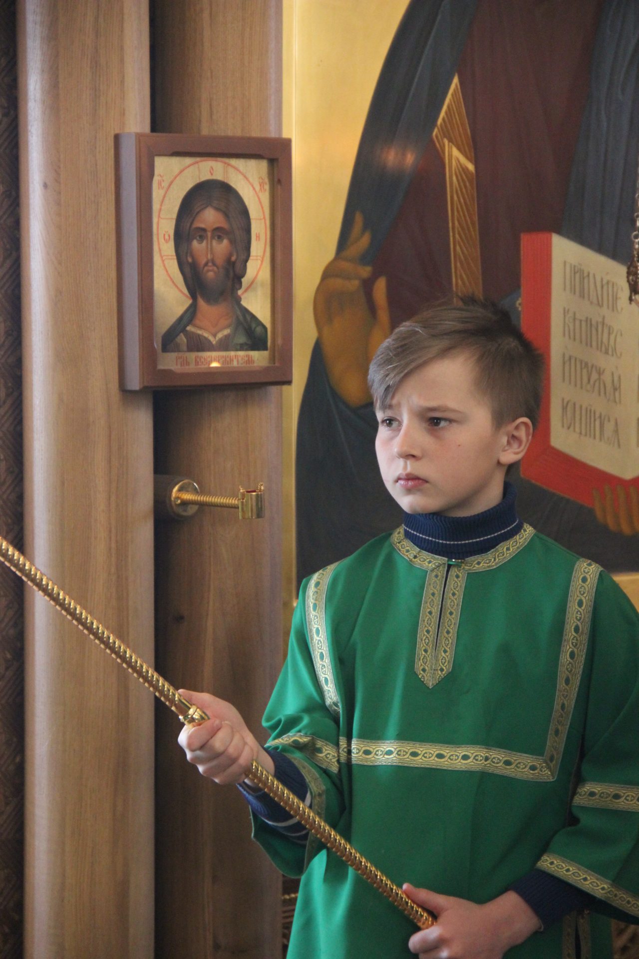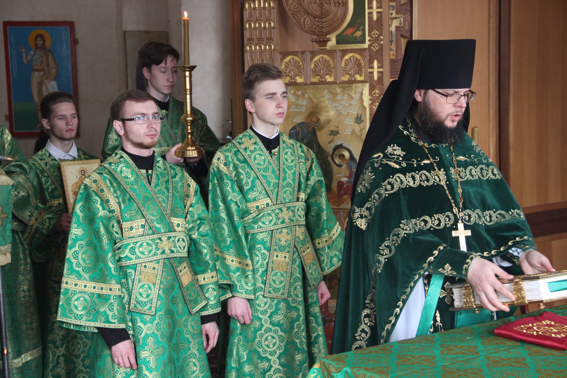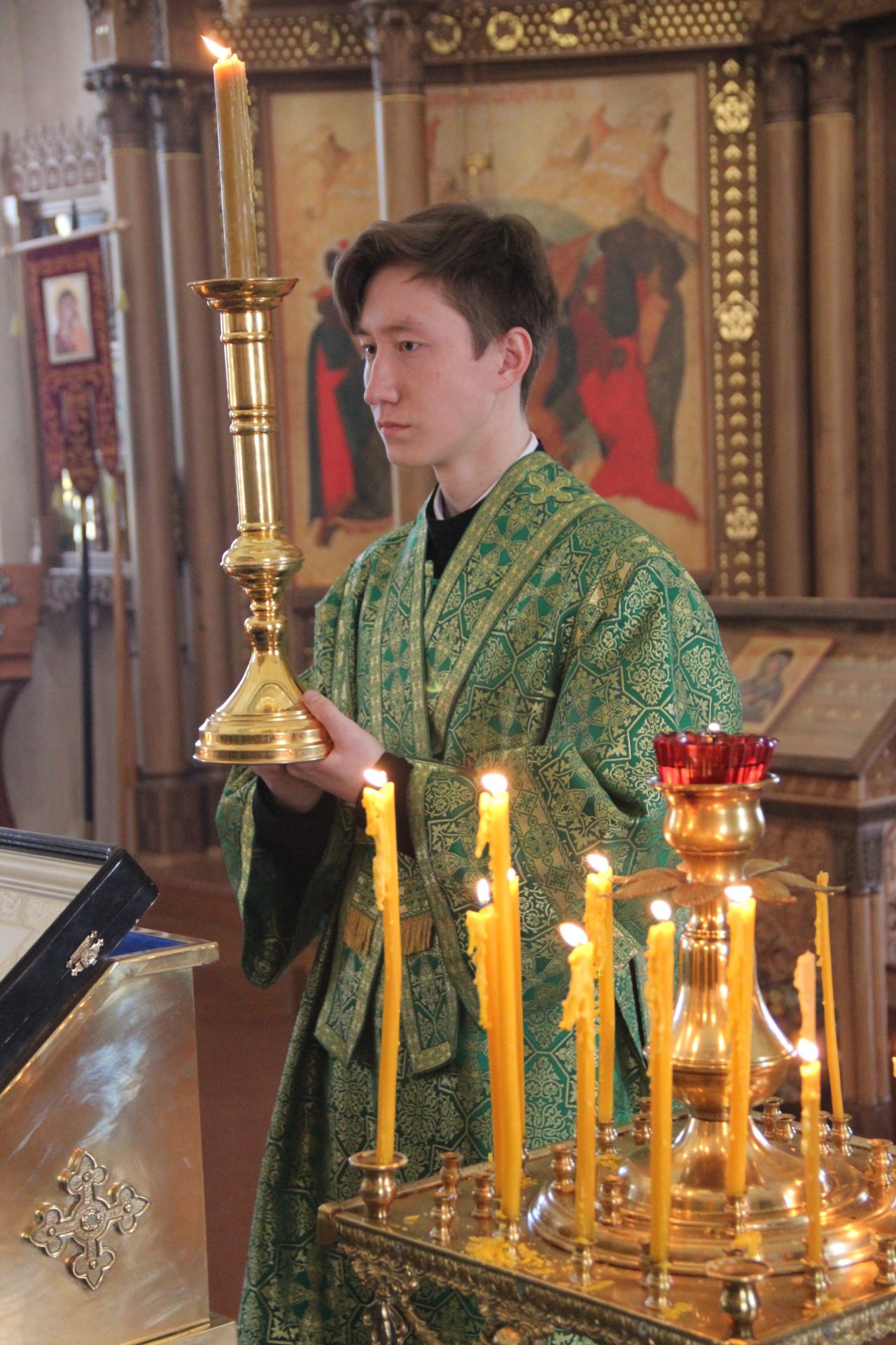 Его Преосвященству сослужили: иеромонах Паисий (Курмаз) – настоятель собора, протоиерей  Антоний Хатунцев, иерей Елисей Тимофеев, лексий Хамтеев, диакон Евгений Ковригин и диакон Дмитрий Лутков.