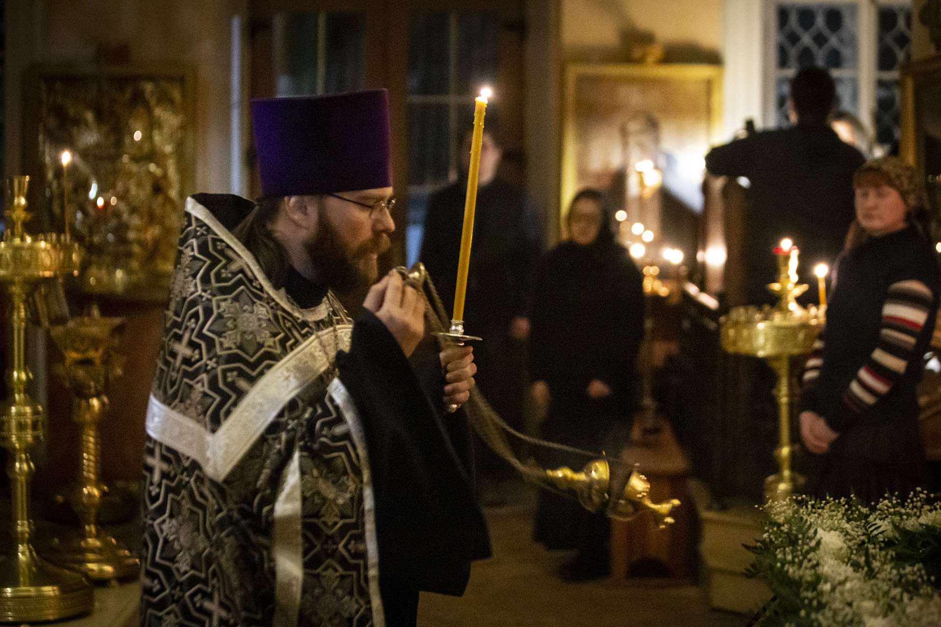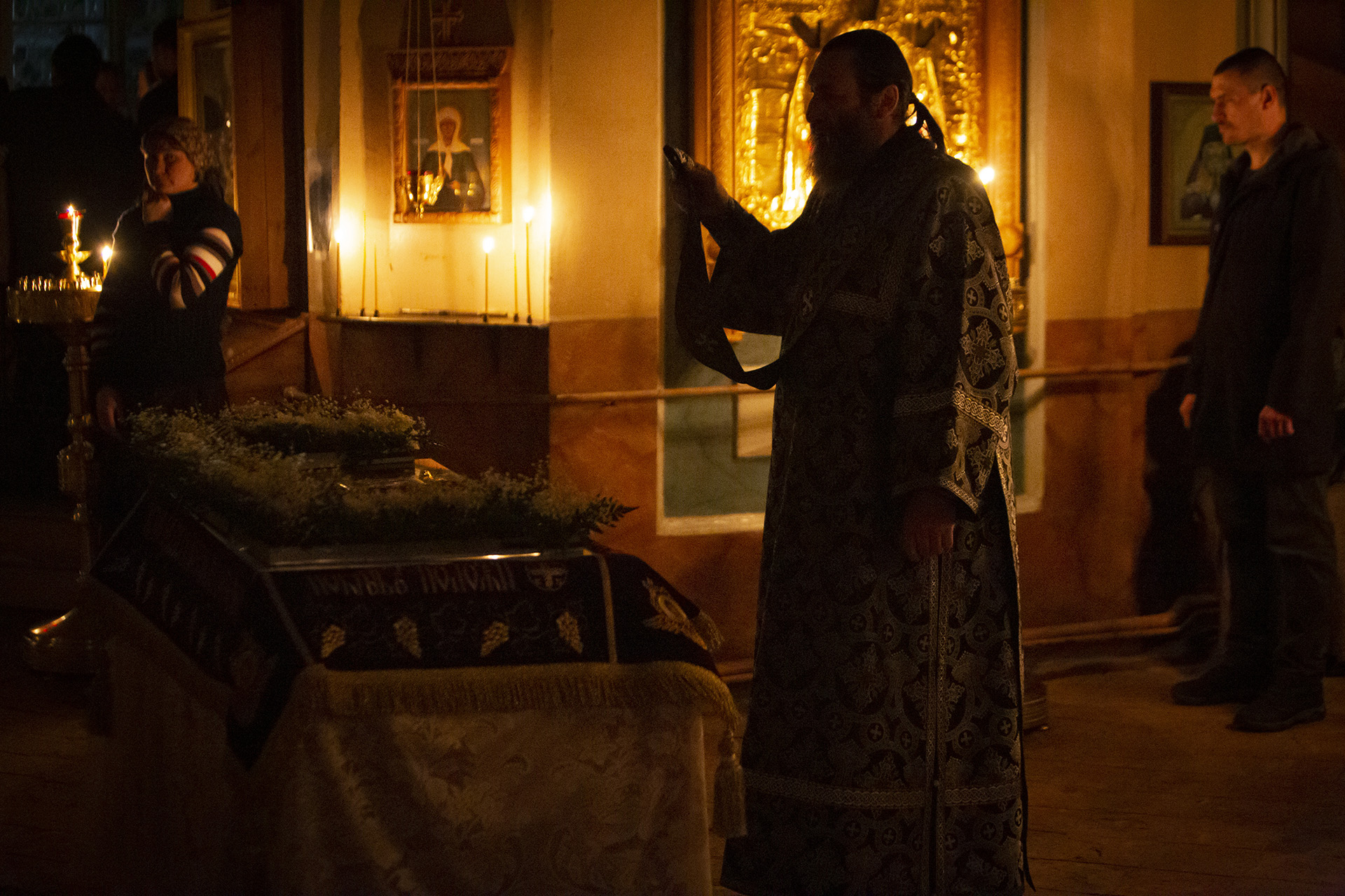 В нашем храме вот уже более 70-ти лет есть традиция служить утреню с чином Погребения и часы с литургией, не разделяя их на вечер пятницы и утро субботы, а всё вместе ночью. Эту традицию принесли к нам в храм служившие в советское время в нем новомученники Оптинские: преподобномученик Гурий Самойлов и иеромонах Арсений Мельников, бывший насельником скита.