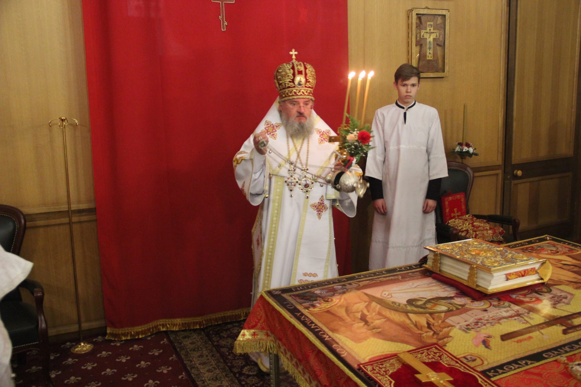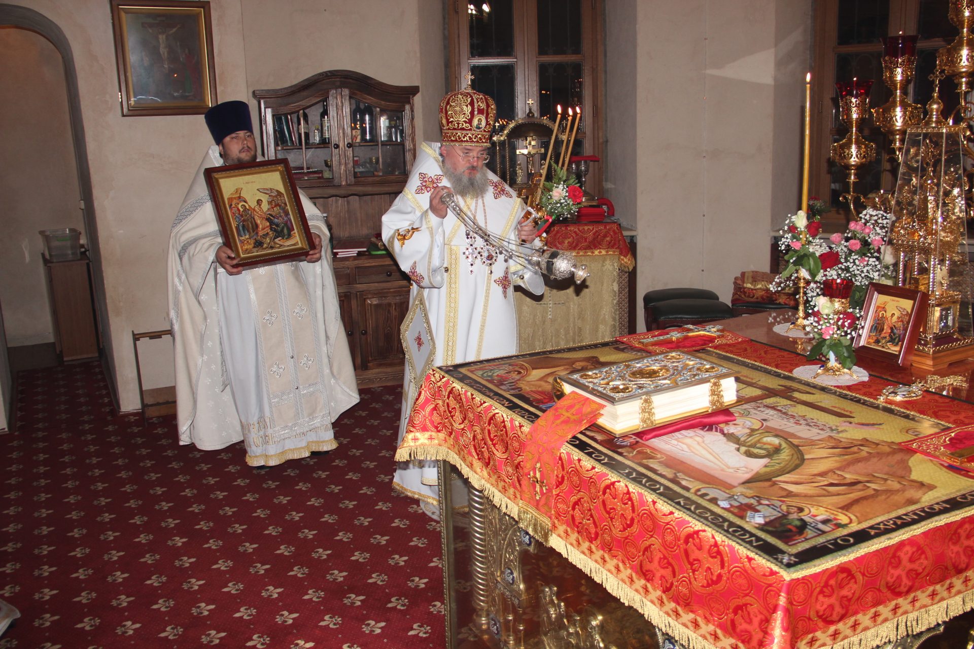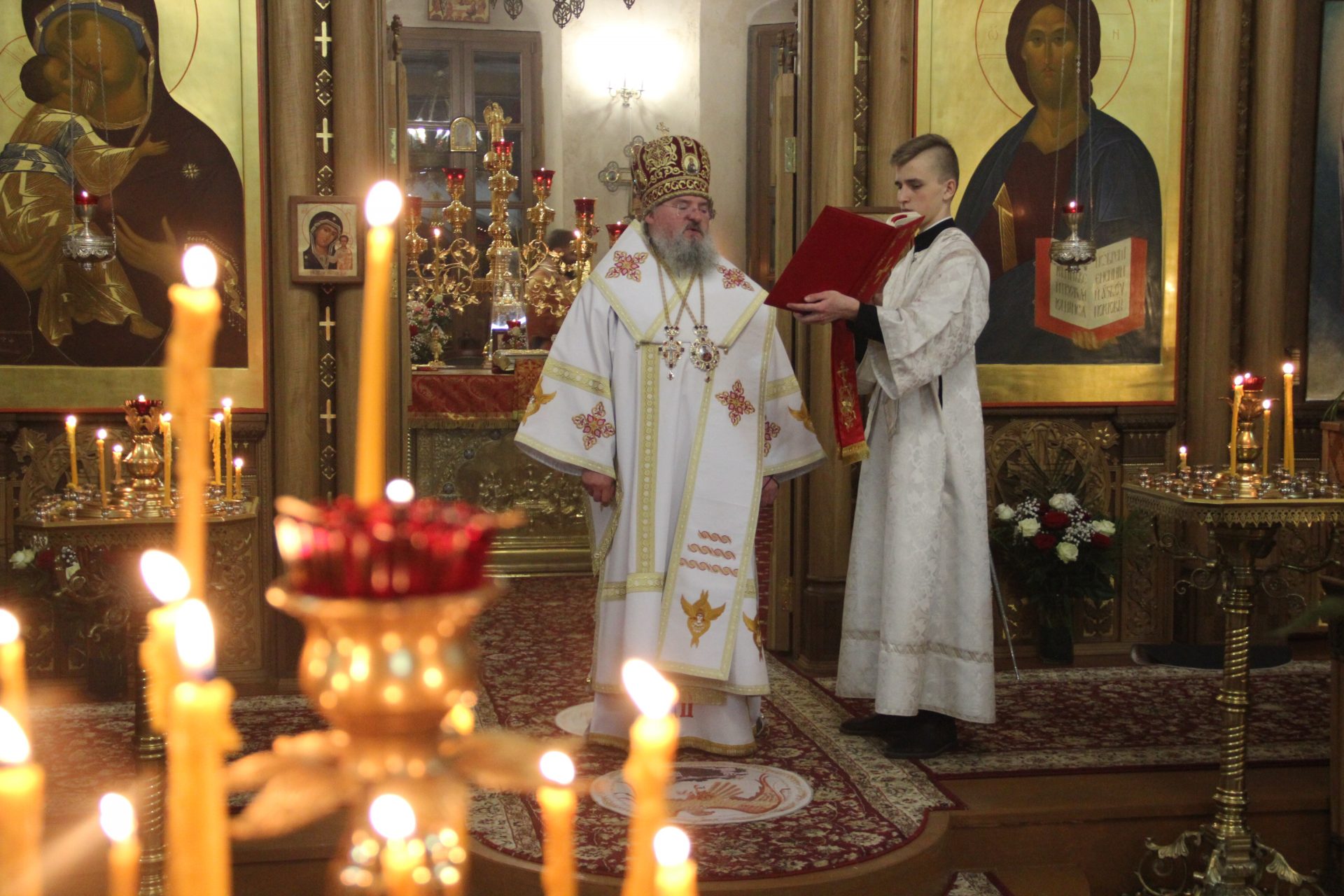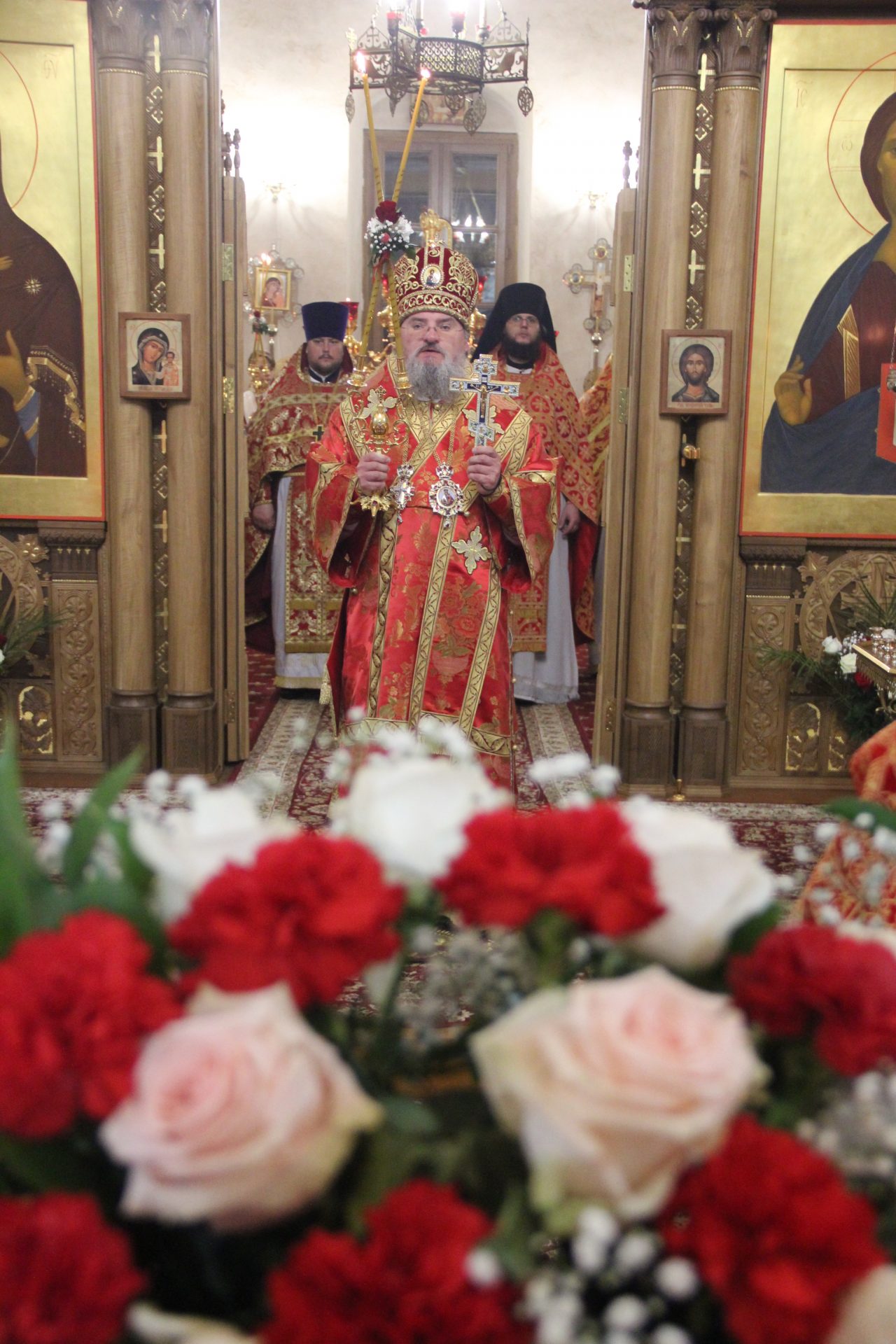 Архипастырю сослужили: протоиерей Антоний Хатунцев, иеромонах Паисий (Курмаз) – настоятель храма, иерей Елисей Тимофеев, диакон Евгений Ковригин и диакон Дмитрий Лутков.