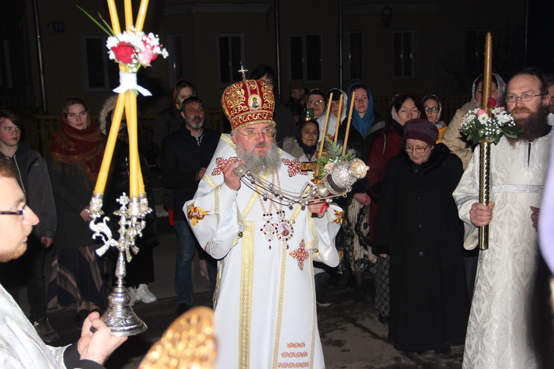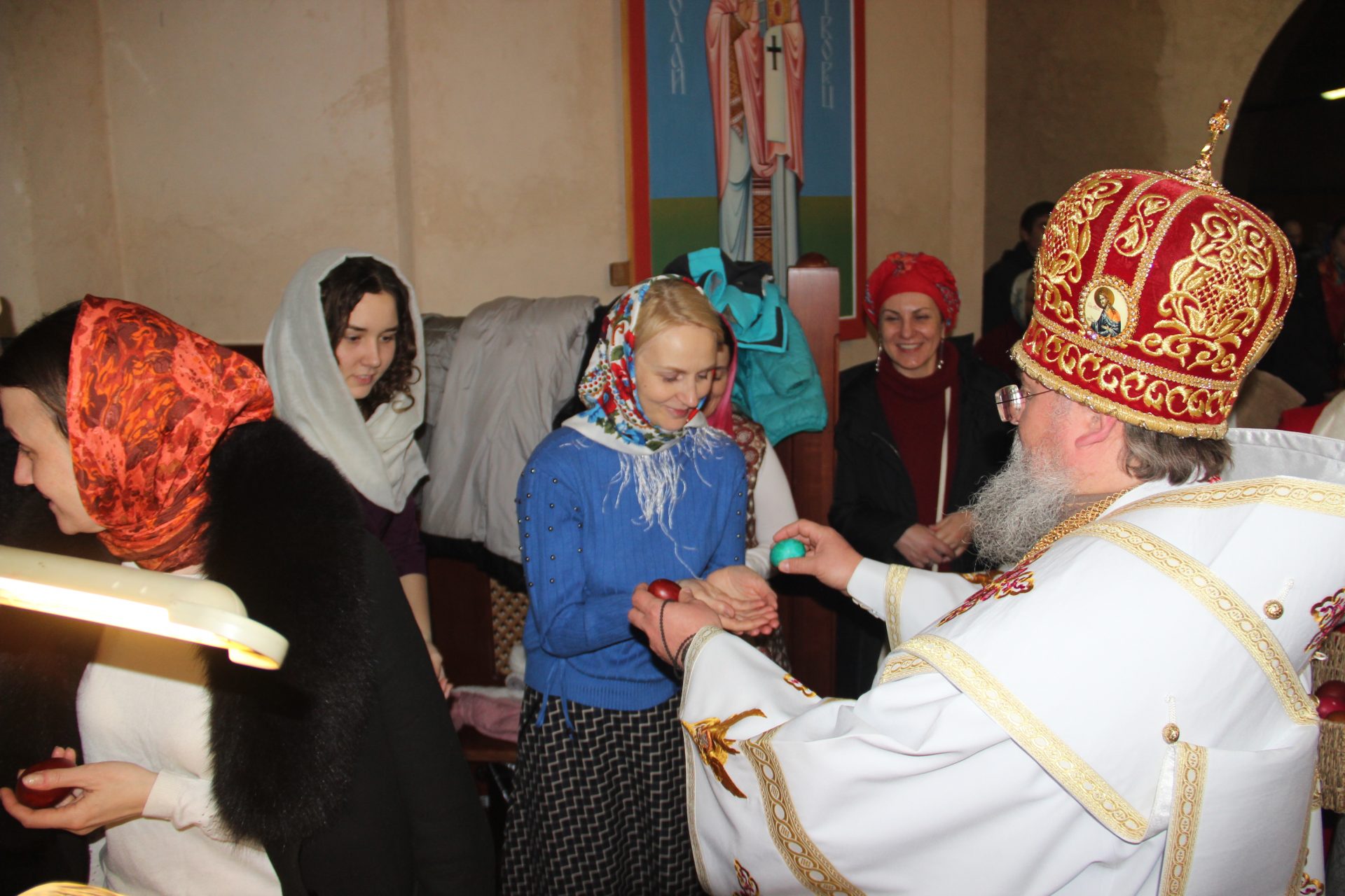 По окончании богослужения владыка поздравил молящихся с великим, мироспасительным и радостным праздником Пасхи Христовой.