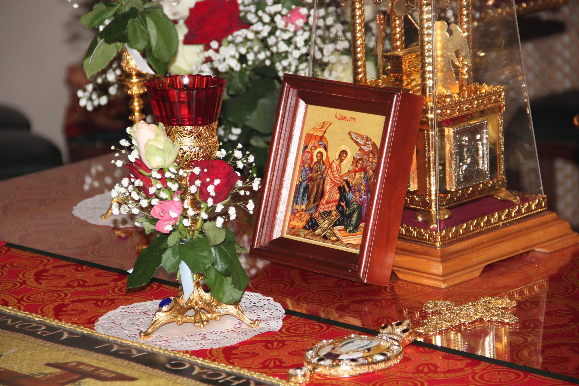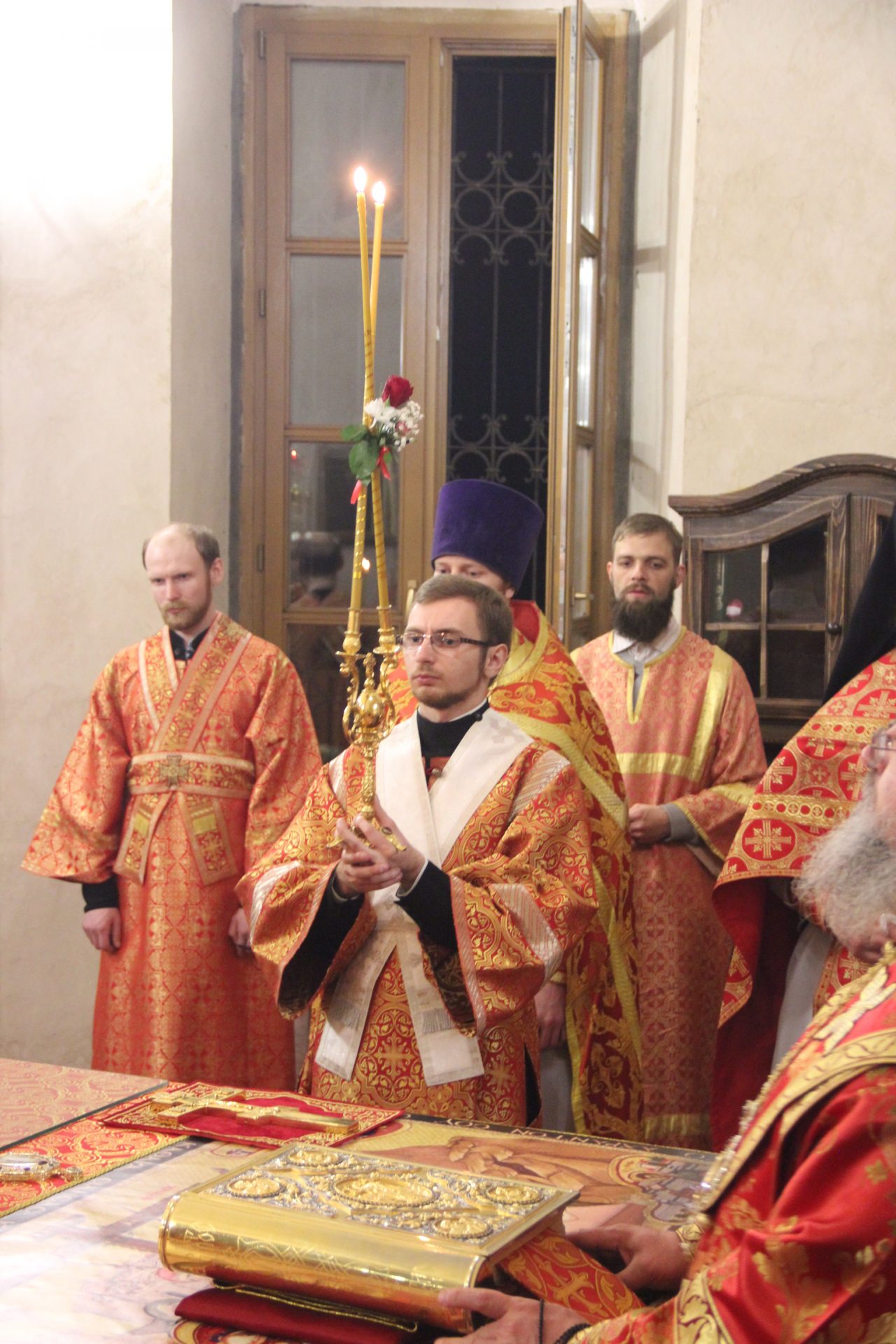 В начале богослужения, под пение стихиры «Воскресение Твое, Христе Спасе…» был совершен крестный ход вокруг собора.