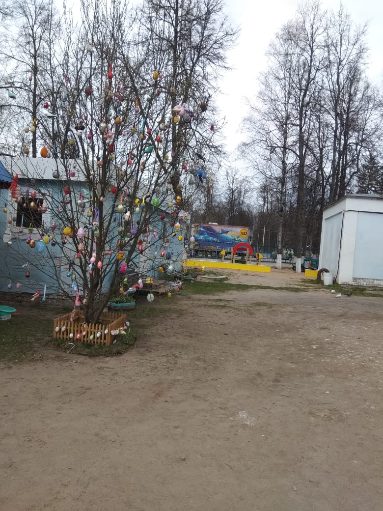 Отрадно, что и в этом году, традиционно, в ограде Казанского собора красуется Пасхальное дерево, украшенное работами прошлых лет.