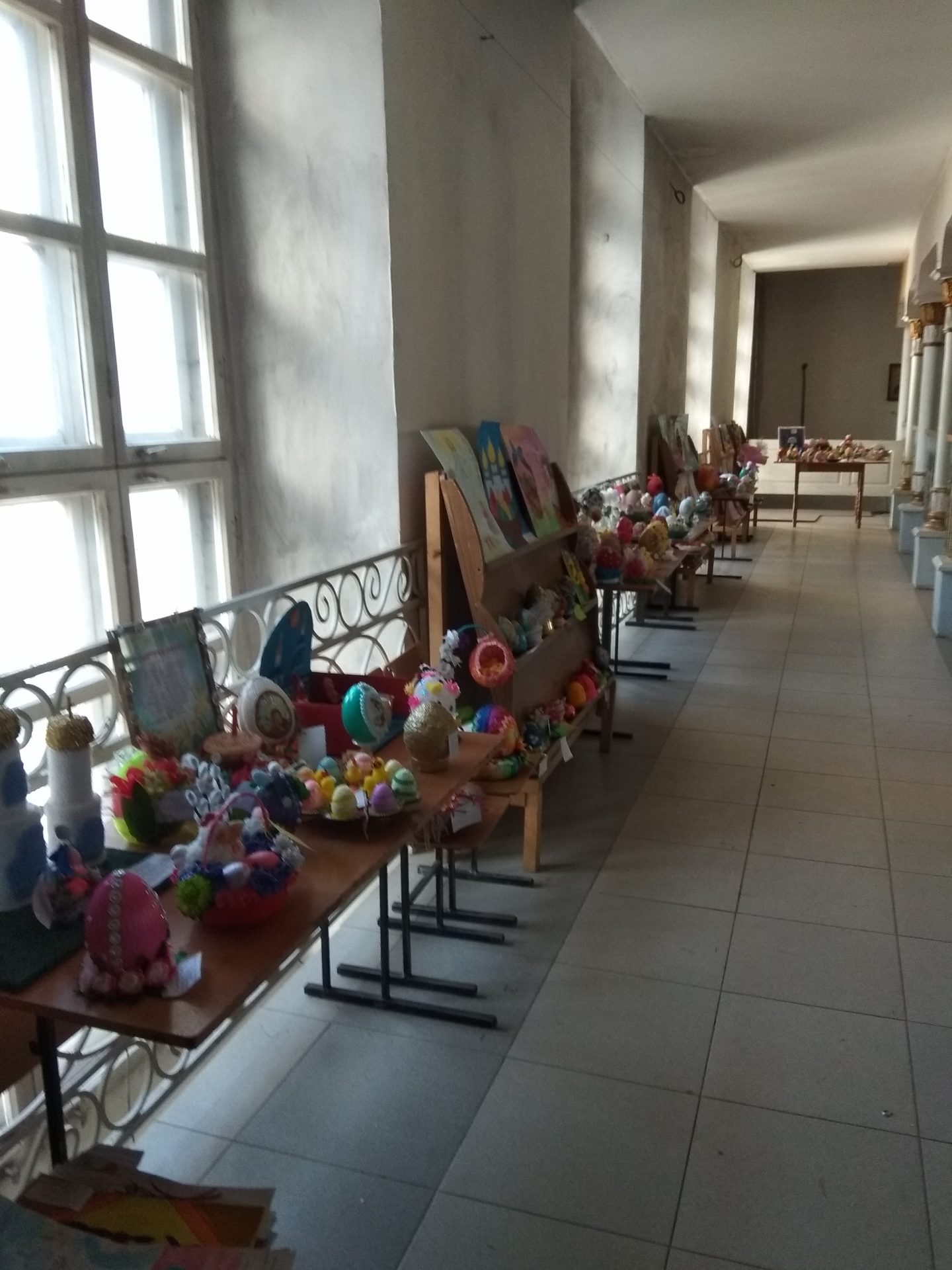 К празднику Светлой Христовой Пасхи на балконе в Казанском соборе города Людиново была оформлена выставка декоративного творчества в рамках епархиального фестиваля «Звенит пасхальная радость».
