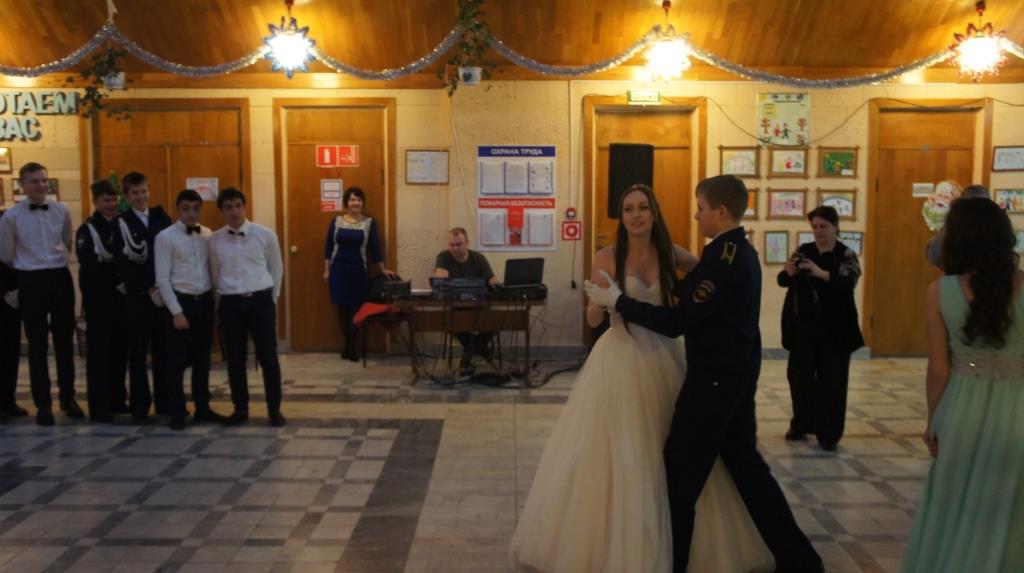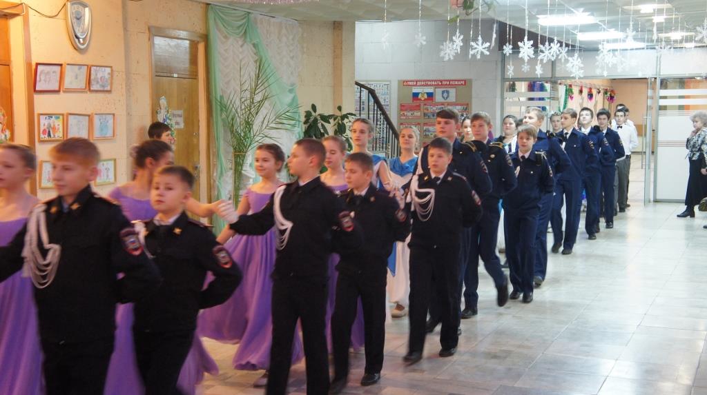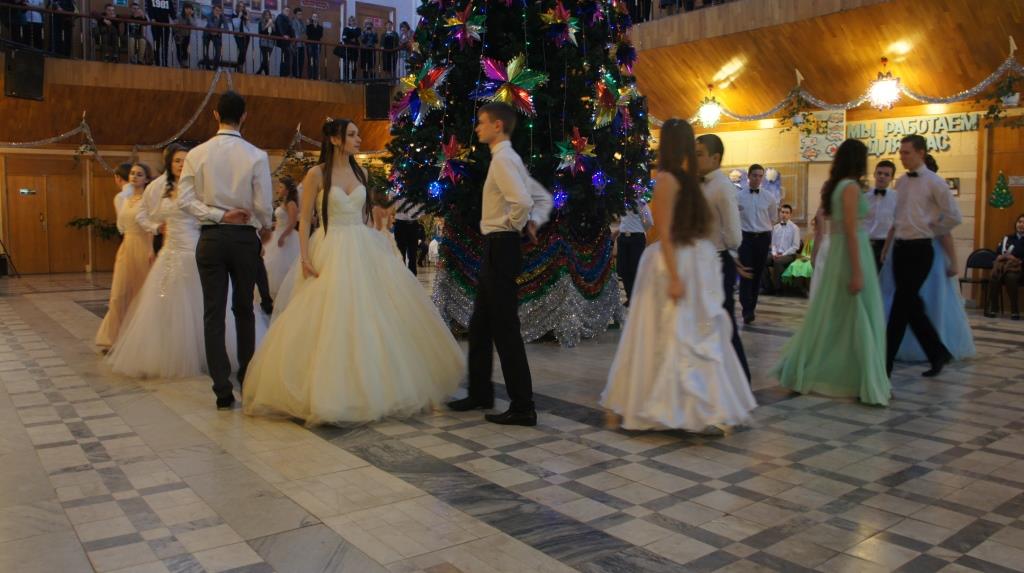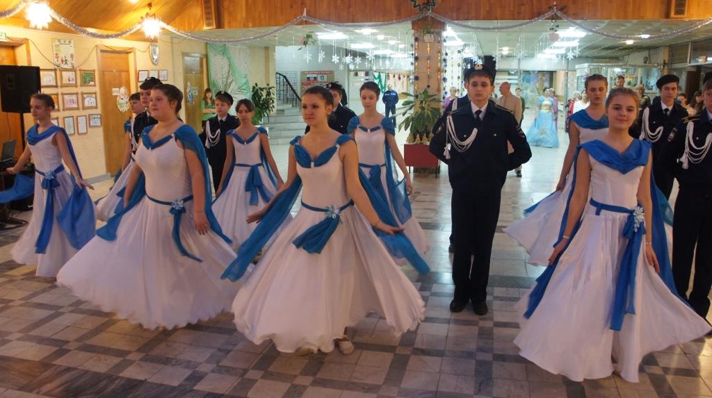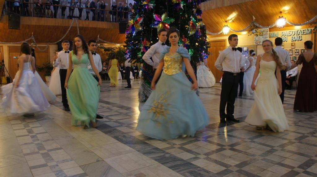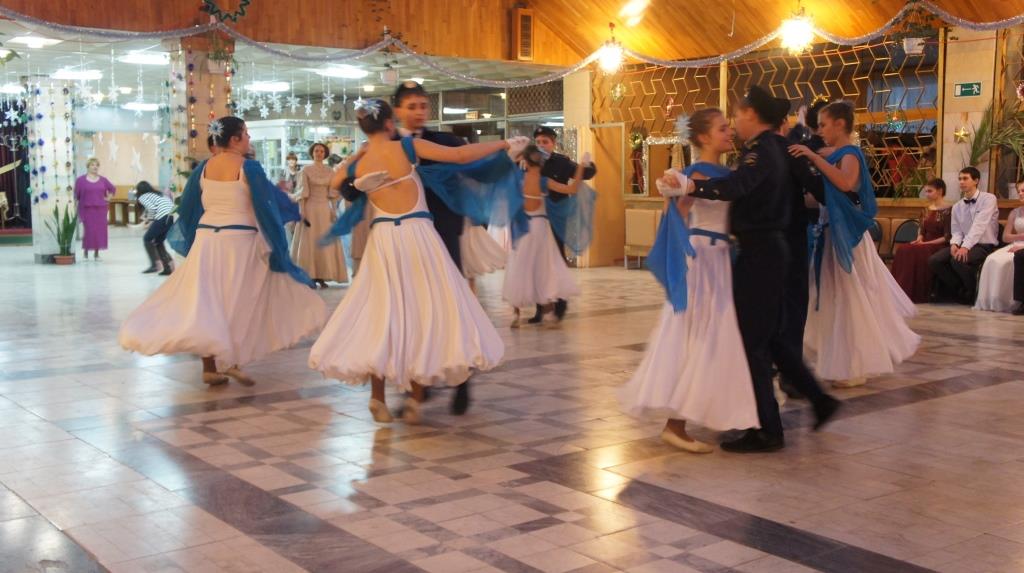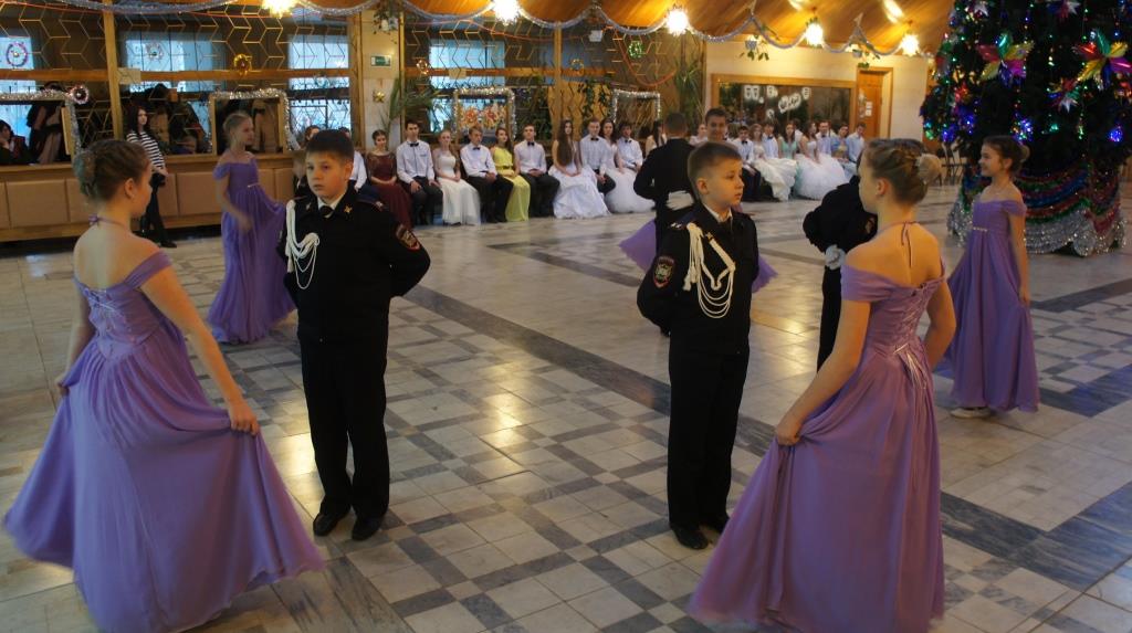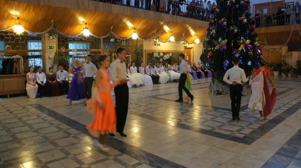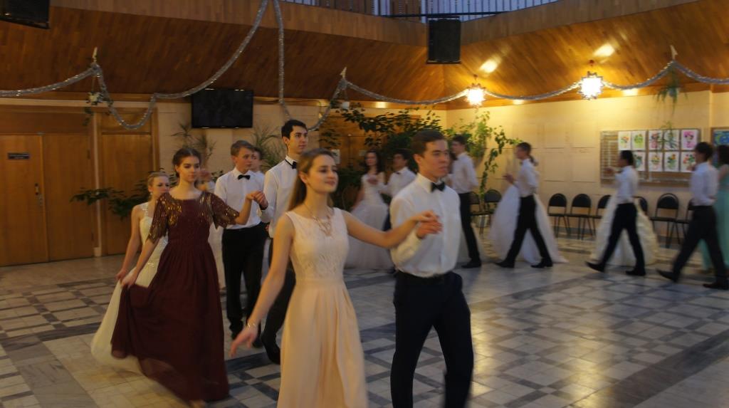 Падеграс и фигурный вальс исполнили дебютанты бала старшеклассники г. Сосенский.