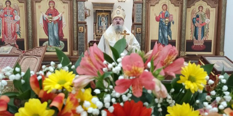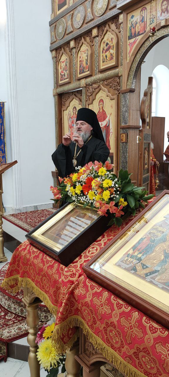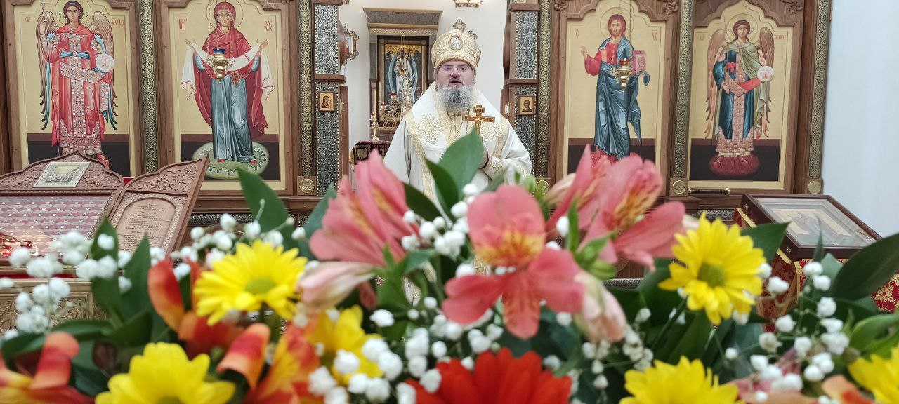 Архипастырю сослужили: протоиерей Антоний Хатунцев, иерей Андрей Товмасян, диакон Евгений Ковригин и иеродиакон Алексий (Гудименко).