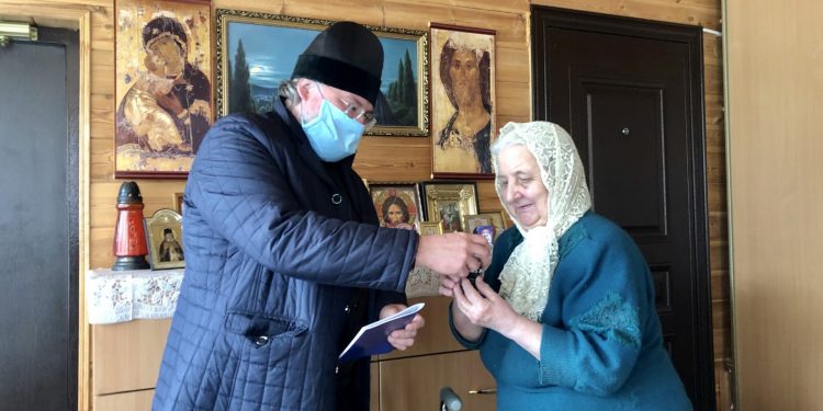 Владыка вручил виновнице торжества небольшие памятные подарки и пожелал ей крепкого здоровья, благополучия и долгих лет жизни.