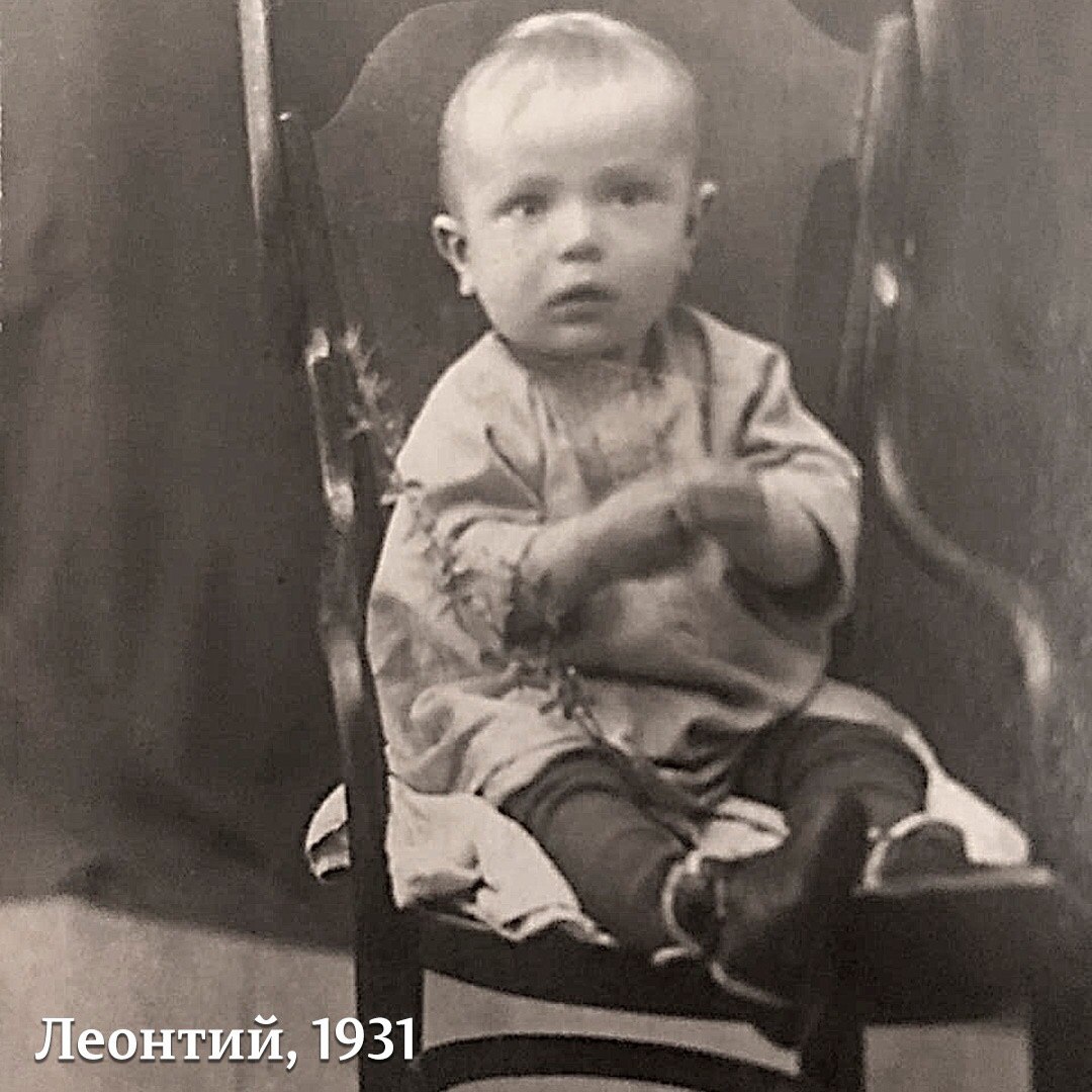 Родился батюшка в Узбекистане, в семье русских крестьян, переселившихся туда с Урала во времена голода 1905 года. В три года маленького Леонтия посетила тяжелая болезнь, нередко встречающаяся в жарком климате Азии. Положение с каждым днем ухудшалось, и его мама Анна стала понимать, что Господь может призвать ее единственное и любимое дитя. Со слезами на глазах молилась она перед образом святителя Николая, прося угодника Божия умолить Бога и оставить мальчика пожить еще на земле. В молитве она обещала отвести его в единственный доступный в местности храм, что бы там он смог послужить Богу. Господь услышал её молитвы и послал старого доктора, который с помощью доступных средств стал лечить младенца. Маленький Леонтий вскоре пошел на поправку. Благодарная мама отвела сына в храм, как и обещала, а там в то время служил архимандрит Борис Холчев, сосланный в Узбекистан из Москвы и при жизни еще общавшийся с последним Оптинским старцем Нектарием. Спустя некоторое время юный Леонтий стал пономарем в его храме. Рано потеряв отца, он находился на попечении родного дяди, который категорически не разделял взглядов верующего ребенка и его матери. Дошло до прямой угрозы: «Если будешь ходить в храм – перестану помогать тебе и твоей матери!» В ответ маленький человек схватил тот самый образ святителя Николая и убежал в поля, думая, что раз дома ему молиться не разрешают, то надо уподобится пустынникам, ведущим жизнь в подвижничестве. Через некоторое время Леонтия нашли и впредь попрекать вопросами веры уже не стали. Впоследствии, Господь определил отцу Леонтию, ставшему к тому времени священником, служить 55 лет в храме, где придел посвящен святителю Николаю. Примечательно, что с 12 по 18 век на месте современного каменного стоял деревянный храм святителя Николая. В храме сохранился образ из того самого деревянного храма! Матушки из Шамординской обители, ухаживавшие за храмом в советский период, сумели спасти образ Святителя Николая из соседнего взорванного храма, посвященного святому. Ныне у могилки старца находится образ Угодника Божьего с частицей мощей святого, подаренный отцу Леонтию схиархимандритом Илием (Ноздриным) на его 75-летие.