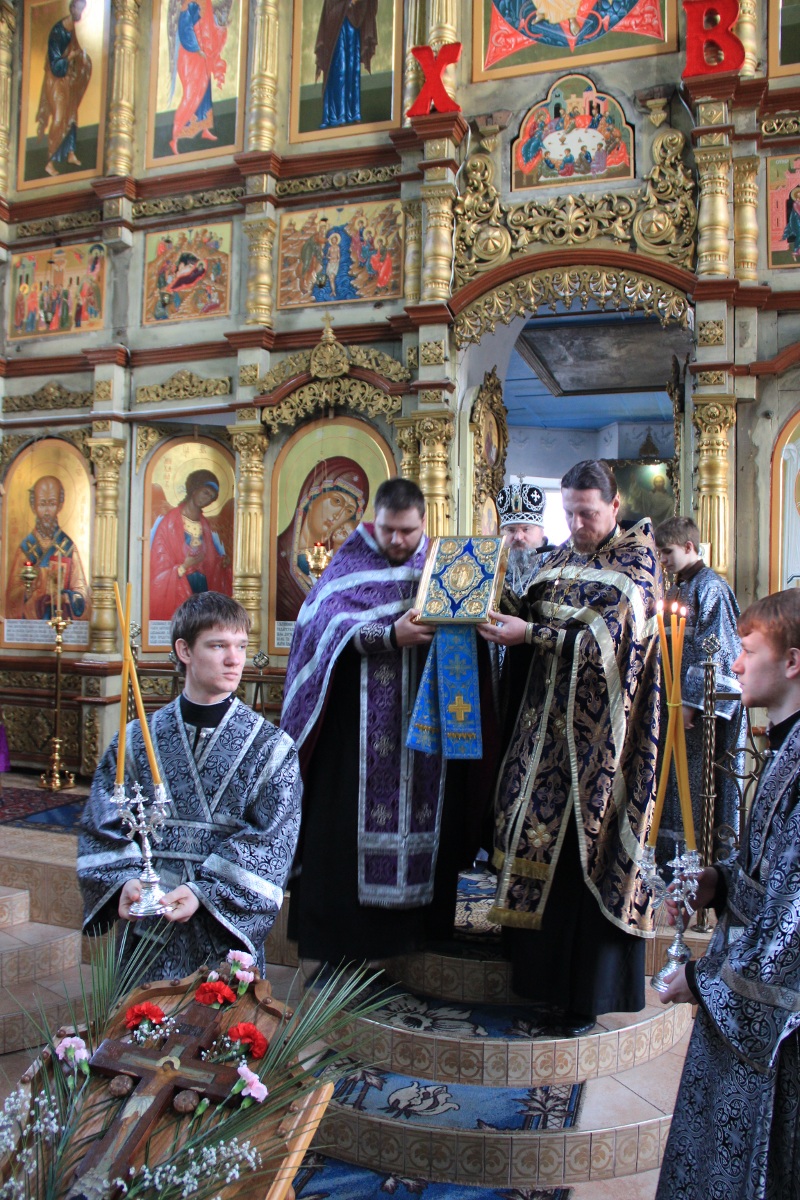 В завершении богослужения было совершено поклонение Животворящему Кресту Господню, а затем владыка обратился к молящимся с архипастырским словом.