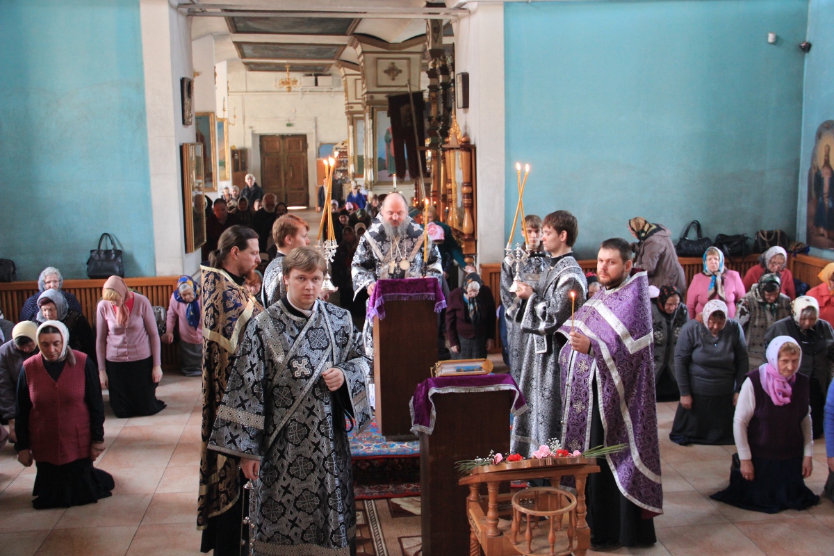 23 марта. Управляющий Козельской епархией епископ Козельский и Людиновский Никита совершил вечерню с чтением акафиста Страстям Христовым в храме Смоленской иконы Божией Матери города Сухиничи. Его Преосвященству сослужили: настоятель храма – протоиерей Алексий Казаков, иерей Антоний Демин и диакон Евгений Ковригин.