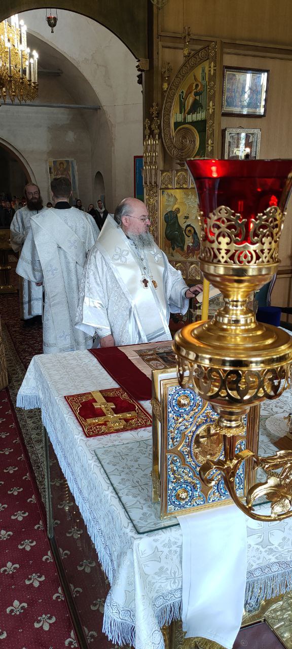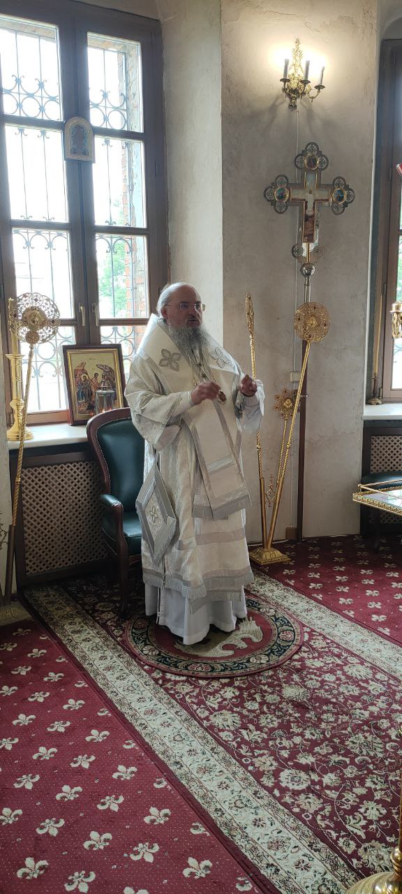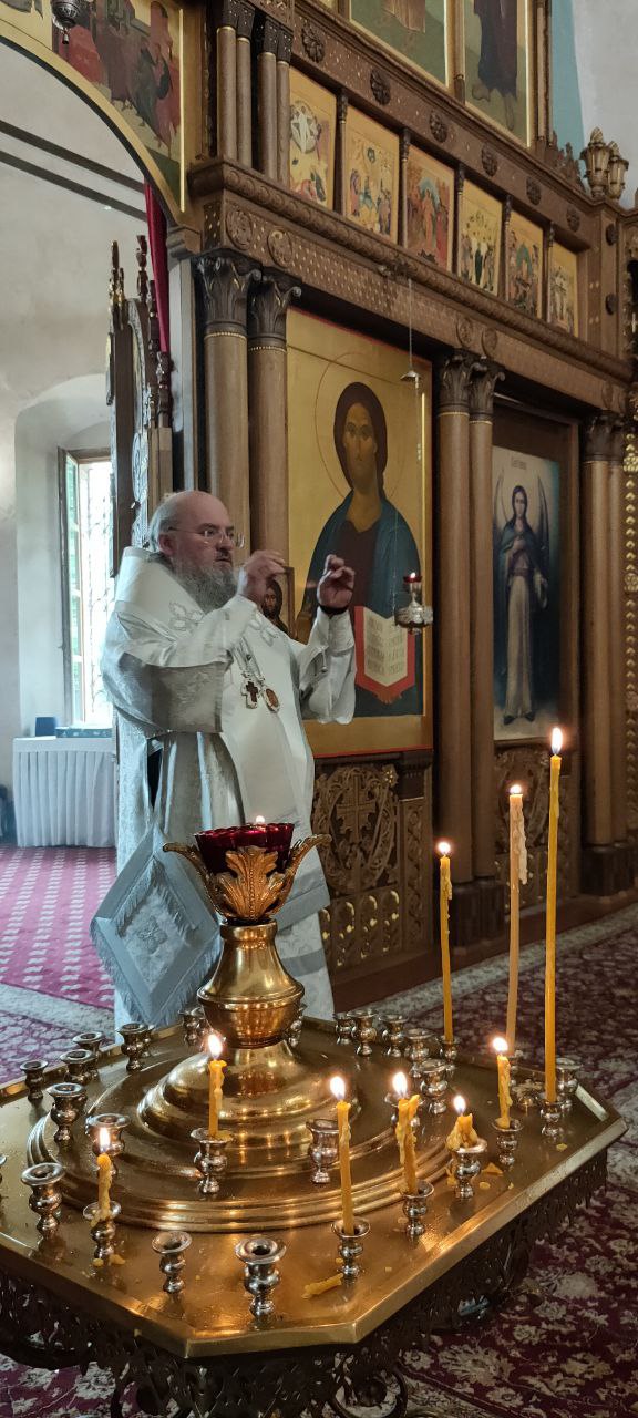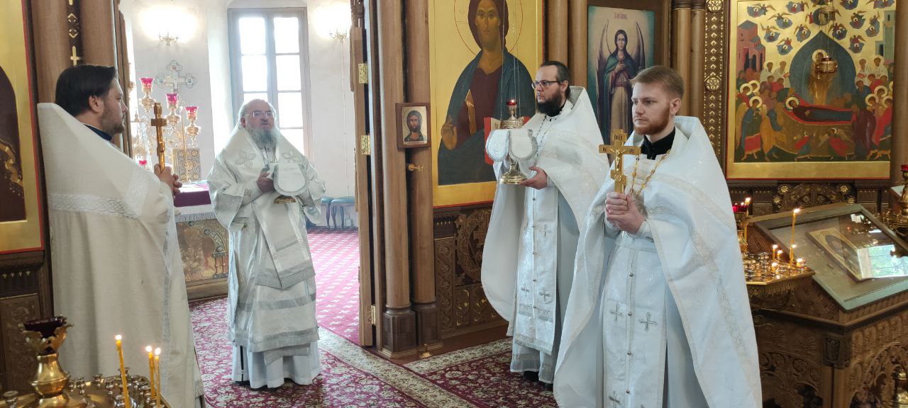 Преосвященному владыке сослужили: протоиерей Антоний Хатунцев, иеромонах Паисий (Курмаз) – настоятель храма, иерей Елисей Тимофеев, диакон Евгений Ковригин и диакон Дмитрий Лутков.
