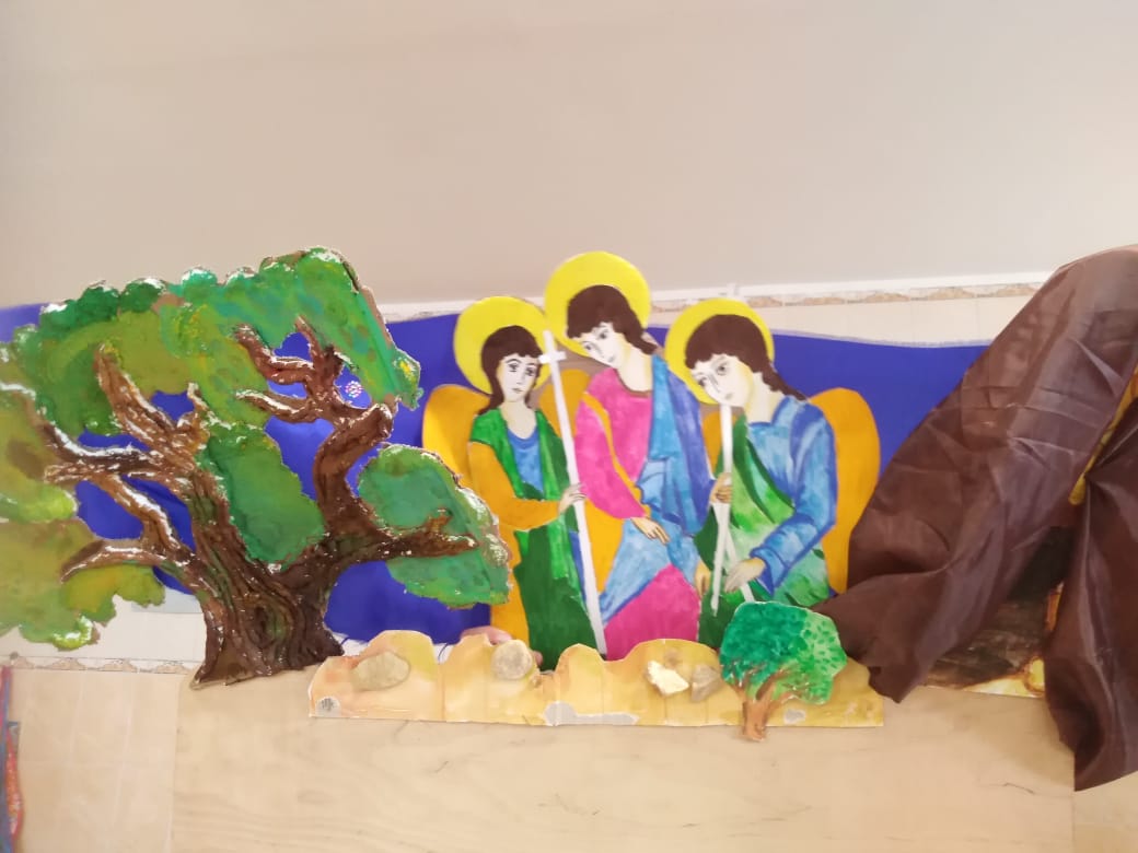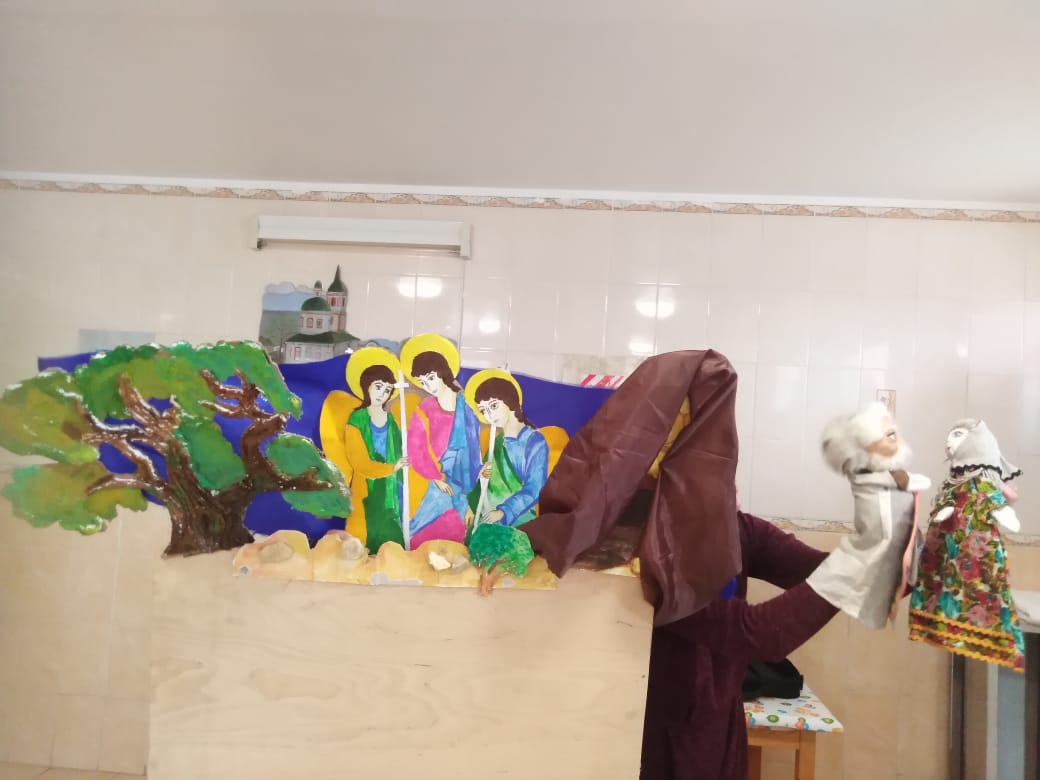 Перед праздником Святой Троицы воспитанники епархиального Социального центра «Рождественский» посмотрели спектакль «Явление Святой Троицы Аврааму». Показала спектакль Светлана Олейник, работающая с детьми центра каждую субботу. После спектакля дети с большим старанием украшали праздничный торт, который с большим удовольствием скушали в праздничный день.