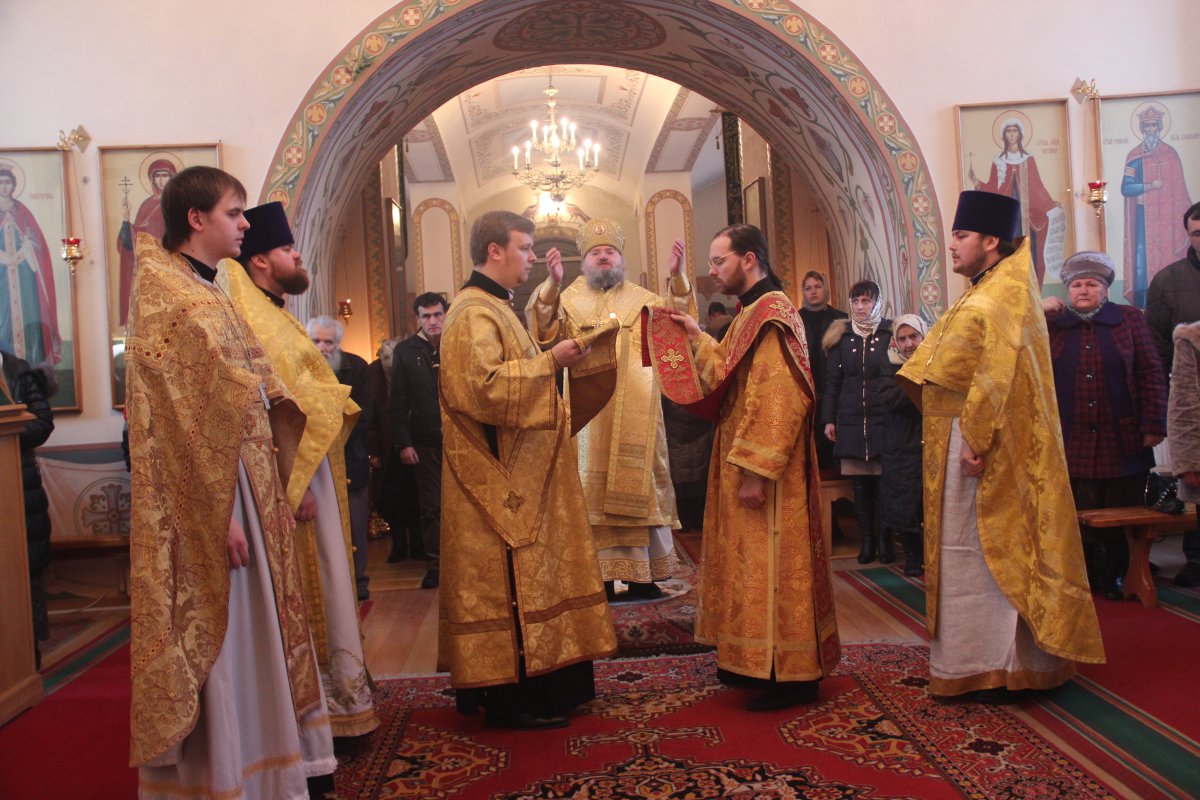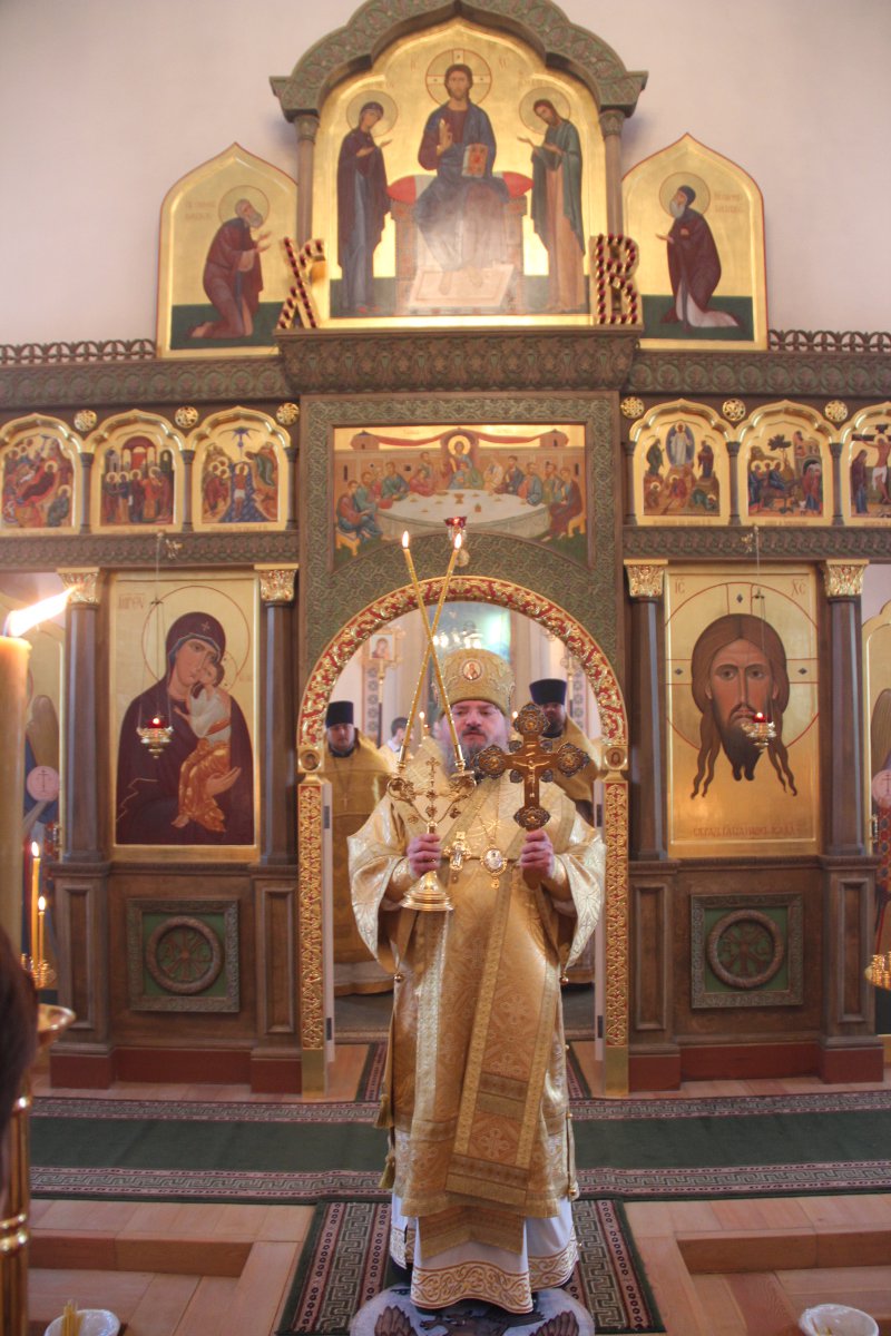 Архипастырю сослужили: настоятель храма протоиерей Сергий Сычев, иерей Антоний Хатунцев, иерей Виктор Носов, диакон Евгений Ковригин и диакон Тихон Худяков.
