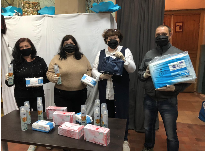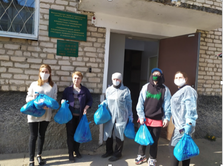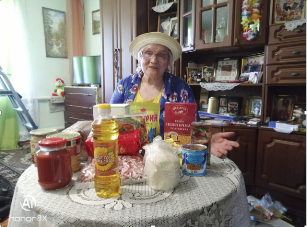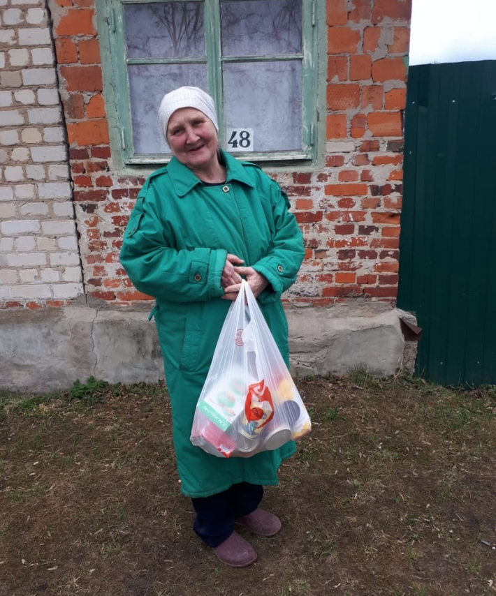В рамках реализации благотворительного проекта «ПРИНЕСЕМ ПРОДУКТЫ ПОЖИЛЫМ ЛЮДЯМ», при поддержке Благотворительного фонда «София» и благодаря пожертвованиям подписчиков Добро Mail.ru, во время пандемии  были проведены  четыре благотворительные акции для одиноких пожилых людей и инвалидов. Продовольственные пакеты формировались с учетом возрастной категории подопечных. При проведении последней акции в продуктовый набор вошли: мясо цыпленка, мясной паштет, 3 рыбных консервы, паста томатная, масло растительное, сгущеное молоко, чай, цикорий, каши- 3 вида, макароны, рис, гречка, 7 пакетов супов, целый килограмм леденцов — ведь их так любят бабули. Дружной командой волонтеров продукты были развезены  по домам пожилым людям Людиновского района Калужской области, которые оказались в зоне риска и в изоляции. Поделились  продуктовыми наборами и с жителями Жиздринского района, часть пакетов дважды передавалась подопечным Комплексного Центра социального обслуживания пожилых людей и инвалидов г. Людиново.